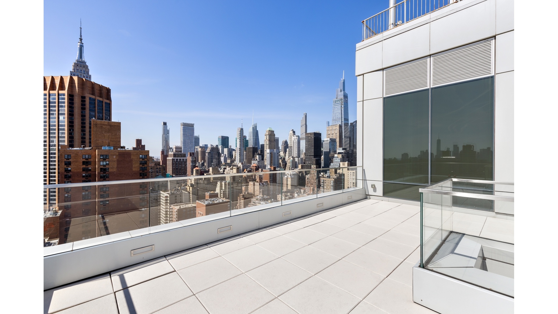 An Expansive Corner 2-Bedroom with a Sprawling Wrap-Around Terrace, 14-Foot Ceilings & Iconic City Views