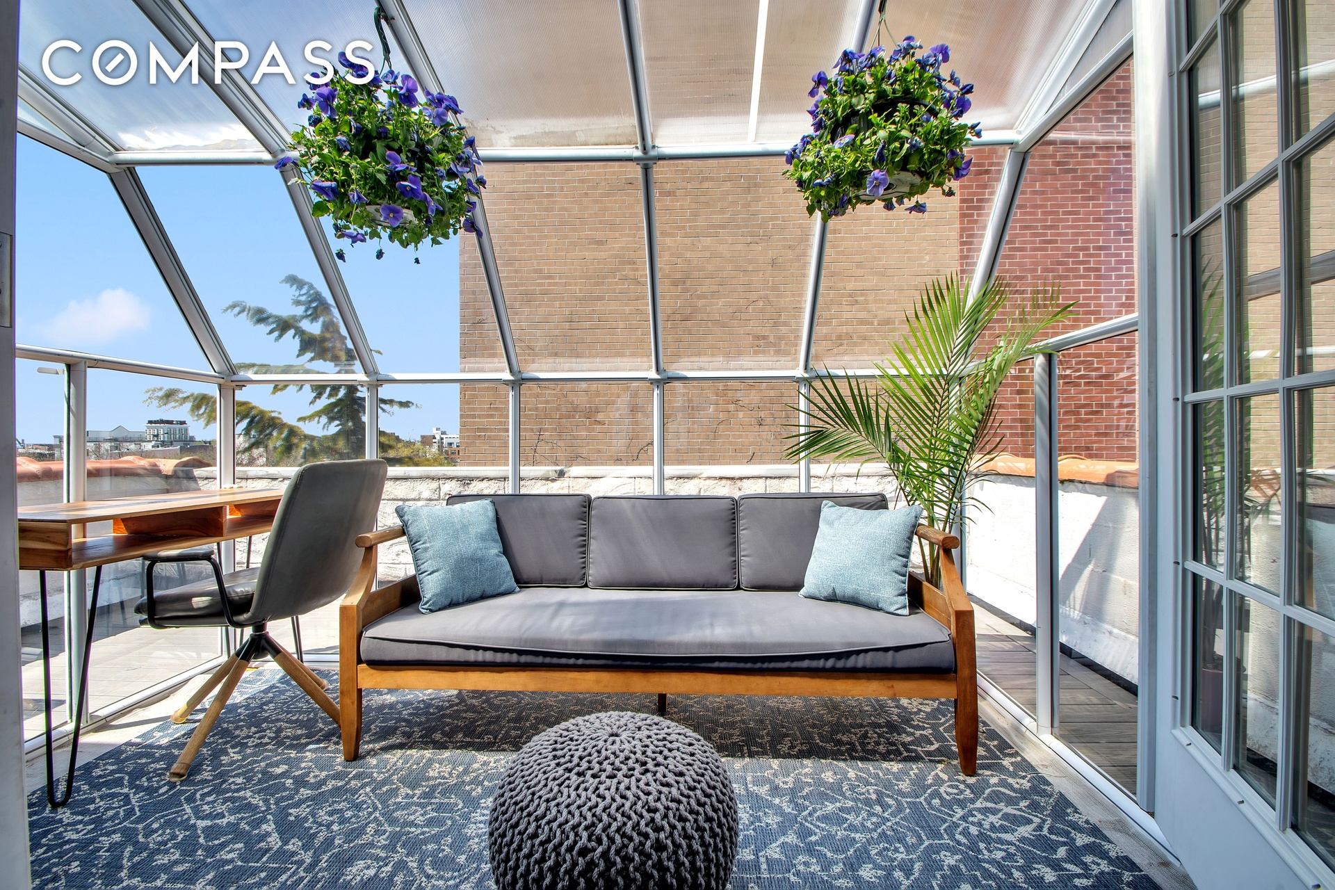 The sun shines into this stunning 2-bedroom, 2-bath duplex condo (that easily converts to 3 bedrooms). Spanning two floors of thoughtfully designed living space, this home offers an unparalleled urban retreat with three private outdoor areas. Enjoy morning coffee on the east-facing balcony; work or workout in the bright sunroom; and entertain on the 450sf primary roof deck. All together, that’s 680sf of private outdoor space!