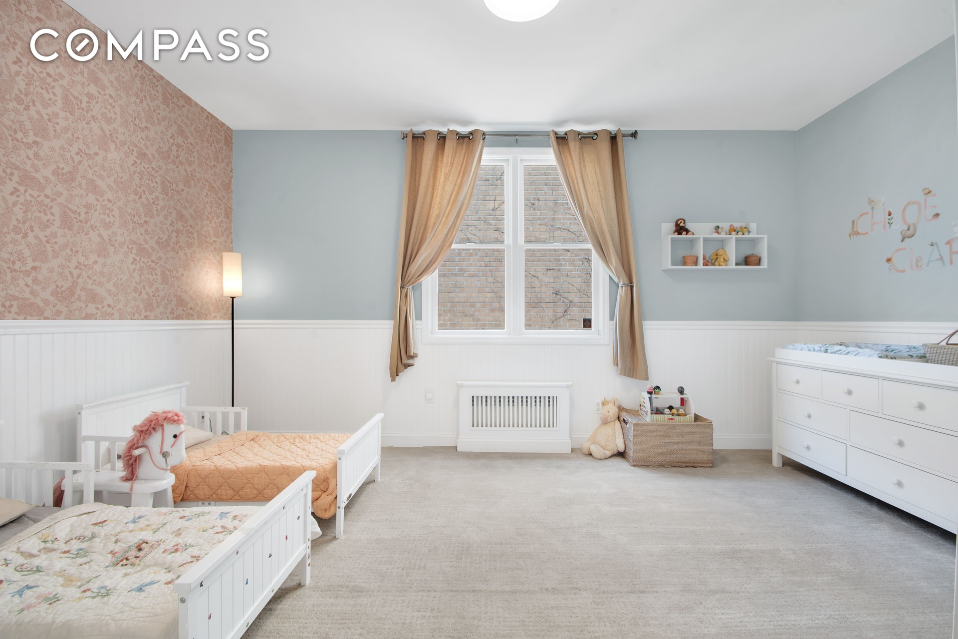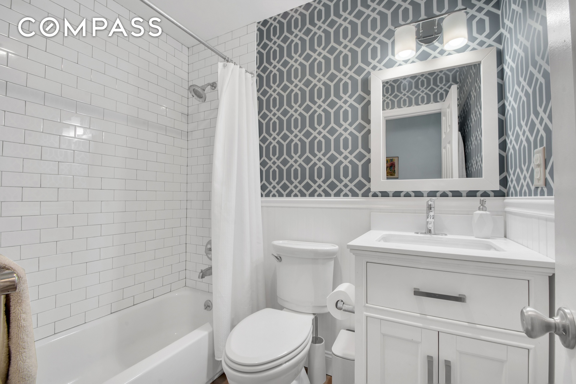 Laundry day’s a breeze with a full-sized washer & dryer tucked into a hall closet. The renovated full bathroom on this level includes a tub. In the back of the apartment is the large second bedroom, which can accommodate a king-size bed, or be split into two rooms.