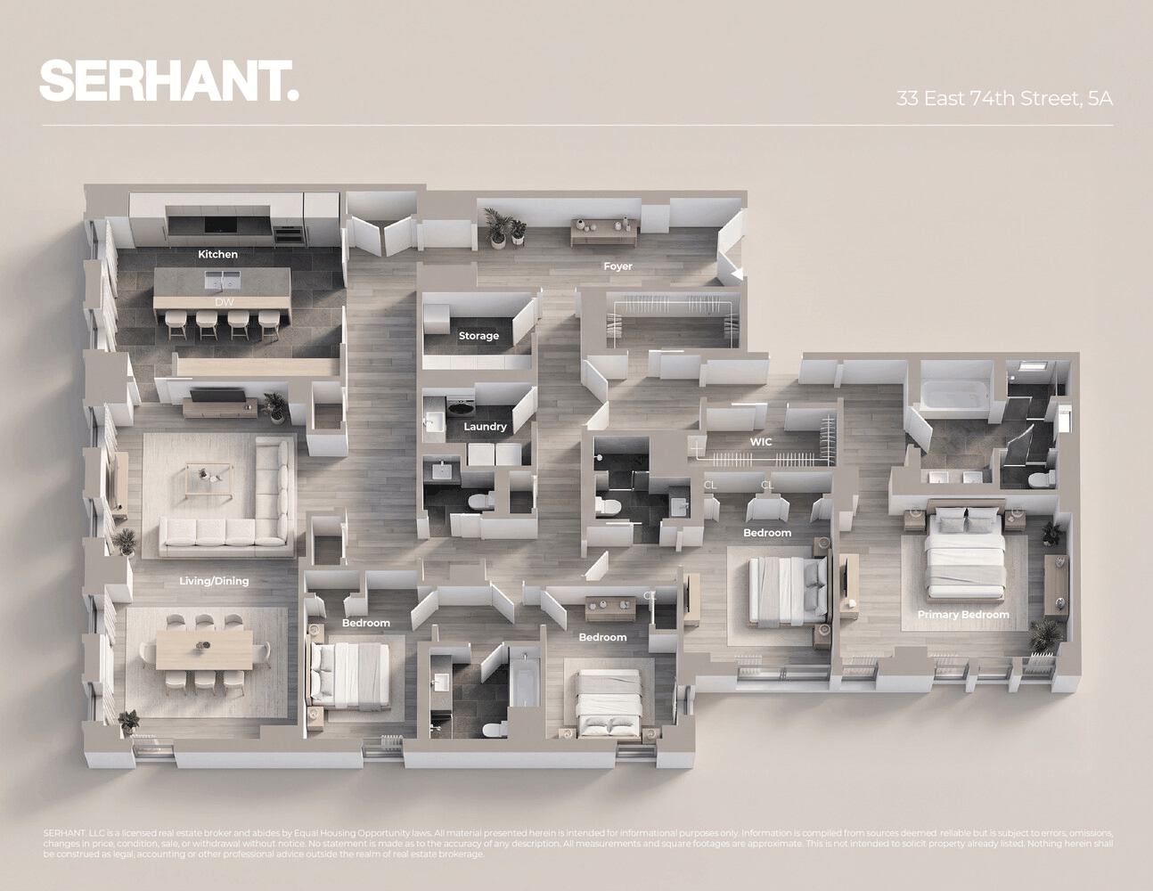 Perfectly positioned just moments from Central Park, Residence 5A at 33 East 74th Street is a pristine, turnkey 4-bedroom, 3.5-bathroom home that feels virtually brand new. Spanning approximately 3,851 square feet, this exceptional residence offers refined design, generous proportions, and an abundance of natural light through coveted south and west exposures.