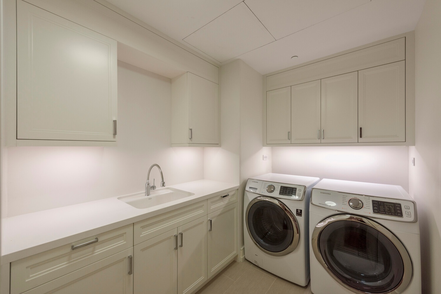 Additional highlights include a full laundry room with side-by-side washer and dryer, extensive custom storage throughout, and a layout that balances privacy with seamless flow.