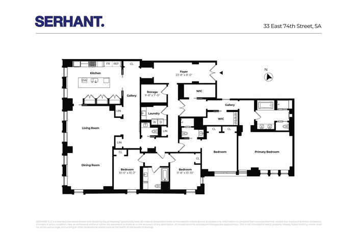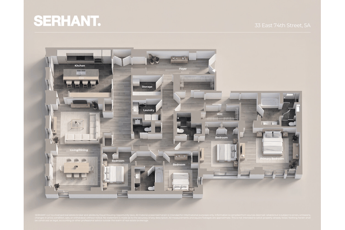 Perfectly positioned just moments from Central Park, Residence 5A at 33 East 74th Street is a pristine, turnkey 4-bedroom, 3.5-bathroom home that feels virtually brand new. Spanning approximately 3,851 square feet, this exceptional residence offers refined design, generous proportions, and an abundance of natural light through coveted south and west exposures.