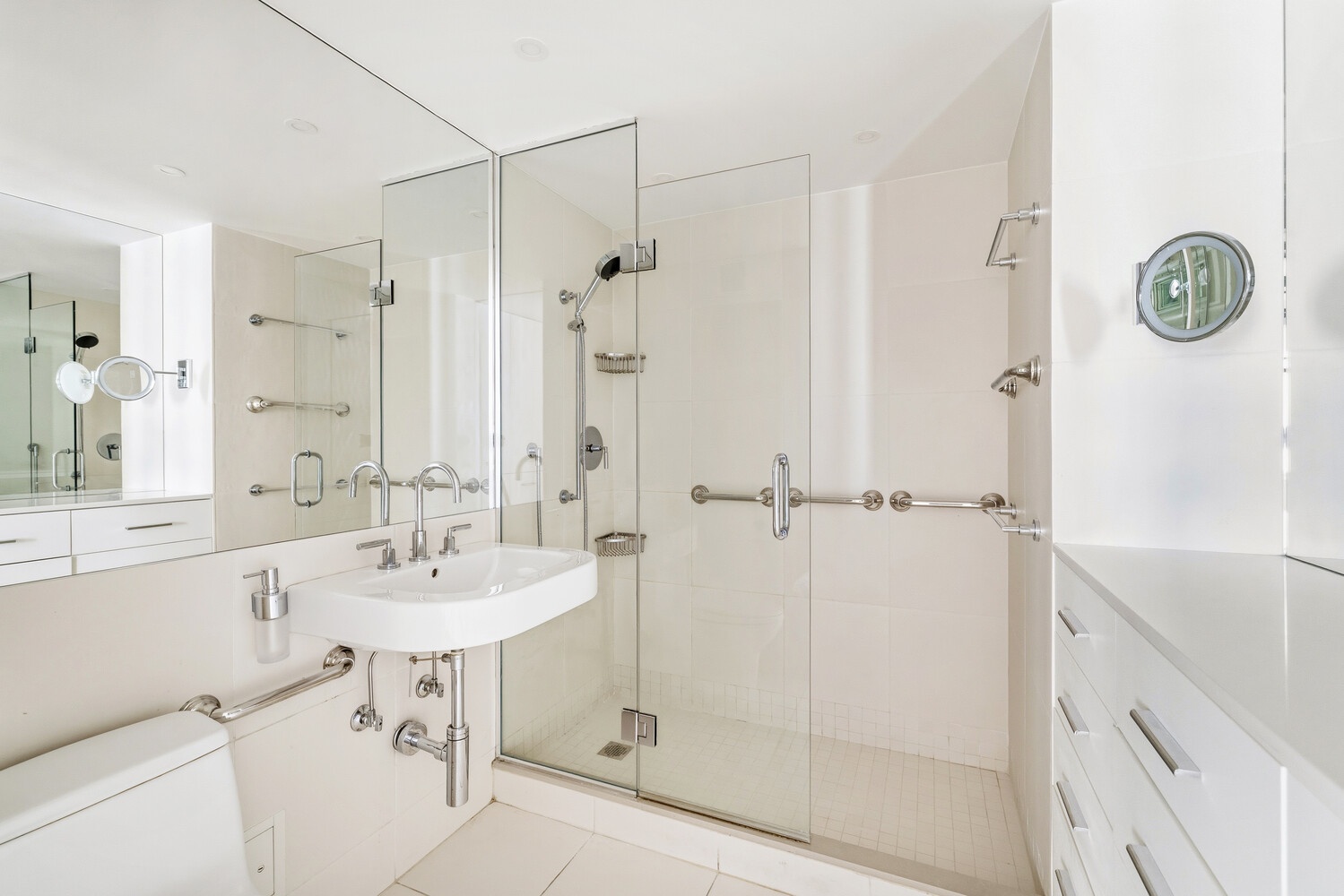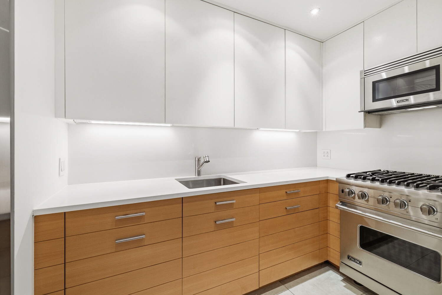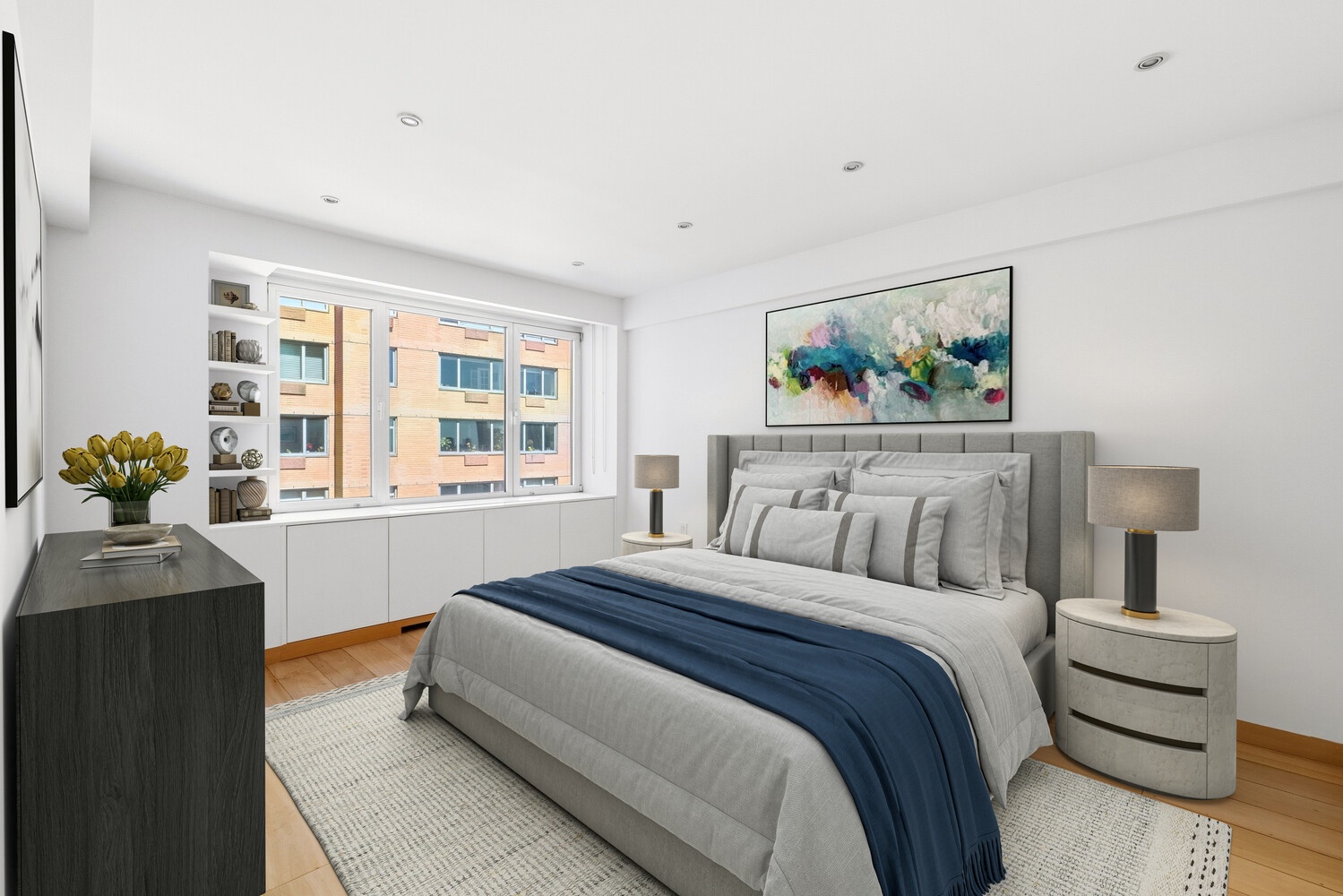 The newly renovated kitchen is a chef's dream, featuring sleek cabinetry, a premium Wolf range, and a Sub-Zero refrigerator. The king-sized bedroom easily accommodates additional furnishings and boasts generous closet space. Smart design elements-including built-ins for air conditioning, pocket doors, custom shades, tilt-and-turn windows, and new through-the-wall A/C units-enhance both functionality and style. Both bathrooms have been tastefully renovated with high-end finishes, including a spacious stall shower in the primary bath.