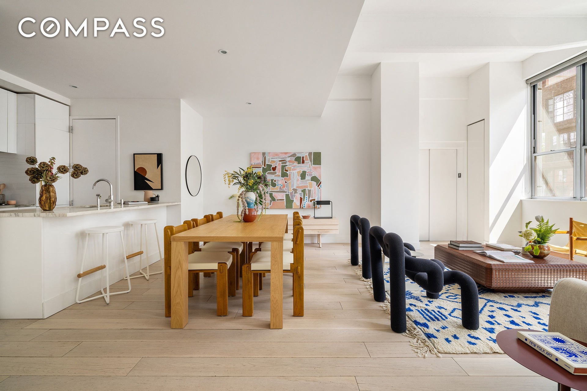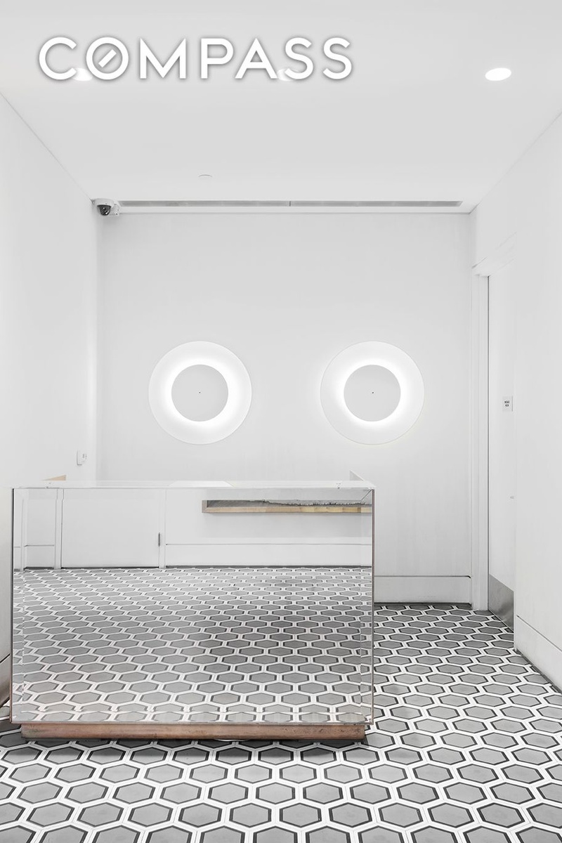 The E line is the only floor plan in the building with direct elevator access into the home, making this apartment truly unique. Enter into the space and immediately one experiences the dramatic 12-foot ceilings and exposed concrete beams. The sun-blasted great room is perfect for entertaining with separate living and dining, a beautifully designed open island kitchen with a breakfast bar, Danby marble countertops and backsplash, white lacquer custom cabinetry with bronze pulls, tons of storage and a fully integrated, state-of-the-art appliance package. The 11’9’’ x 10’ bedroom can accommodate a king size bed, has two closets and is adjacent to the luxurious bathroom featuring hexagon tiles, a custom corian vanity, a stainless steel mirrored medicine cabinet, a soaking tub with a built-in niche and additional wall mounted storage. Additional features of 2E include wide plank oak floors, in-unit washer/dryer, central air conditioning, solid core doors, custom window treatments and beautifully fabricated Italian closets throughout.