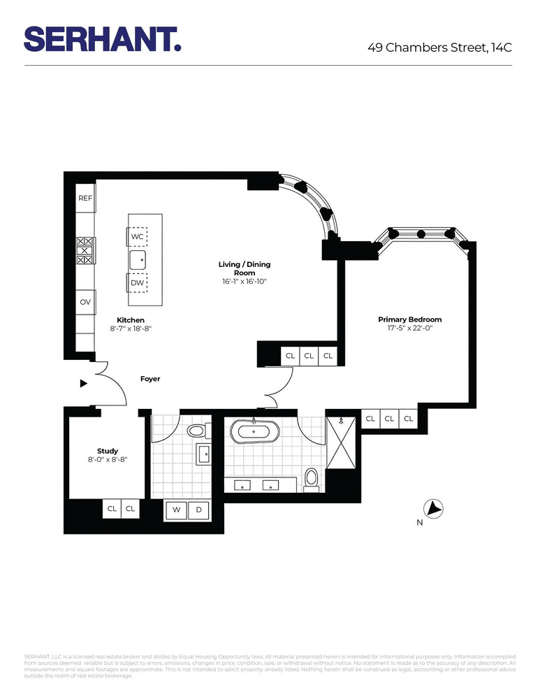 Step into the art of elevated living with this exceptional one-bedroom, one-and-a-half-bathroom residence spanning 1,290 square feet. Set within the iconic Gabellini Sheppard-designed 49 Chambers Street, this home is a rare example of thoughtful design and presence.