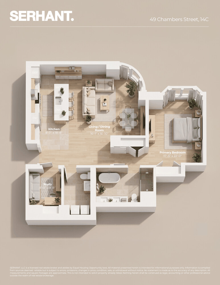 One Bedroom Study 49 Chambers Park Views Step into the art of elevated living with this exceptional one bedroom, one and a half bathroom residence spanning 1, 290 square feet.