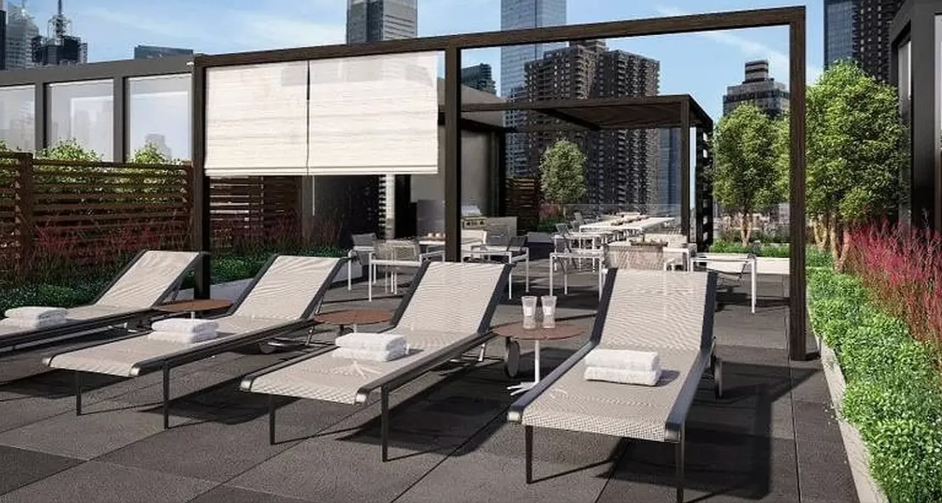 -Two beautifully landscaped and furnished roof decks with BBQ grills, dining areas, and sweeping open views
