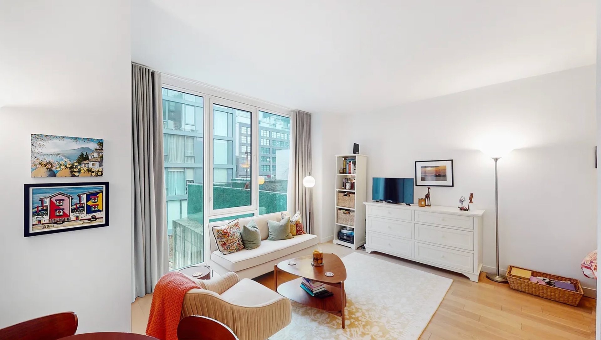 Flooded with natural southern light, this thoughtfully designed studio offers the space and flexibility to easily function as a one-bedroom home. The oversized sleeping alcove comfortably accommodates a larger bed and can be seamlessly enclosed with a shelving system or partition to create a private retreat without sacrificing openness.