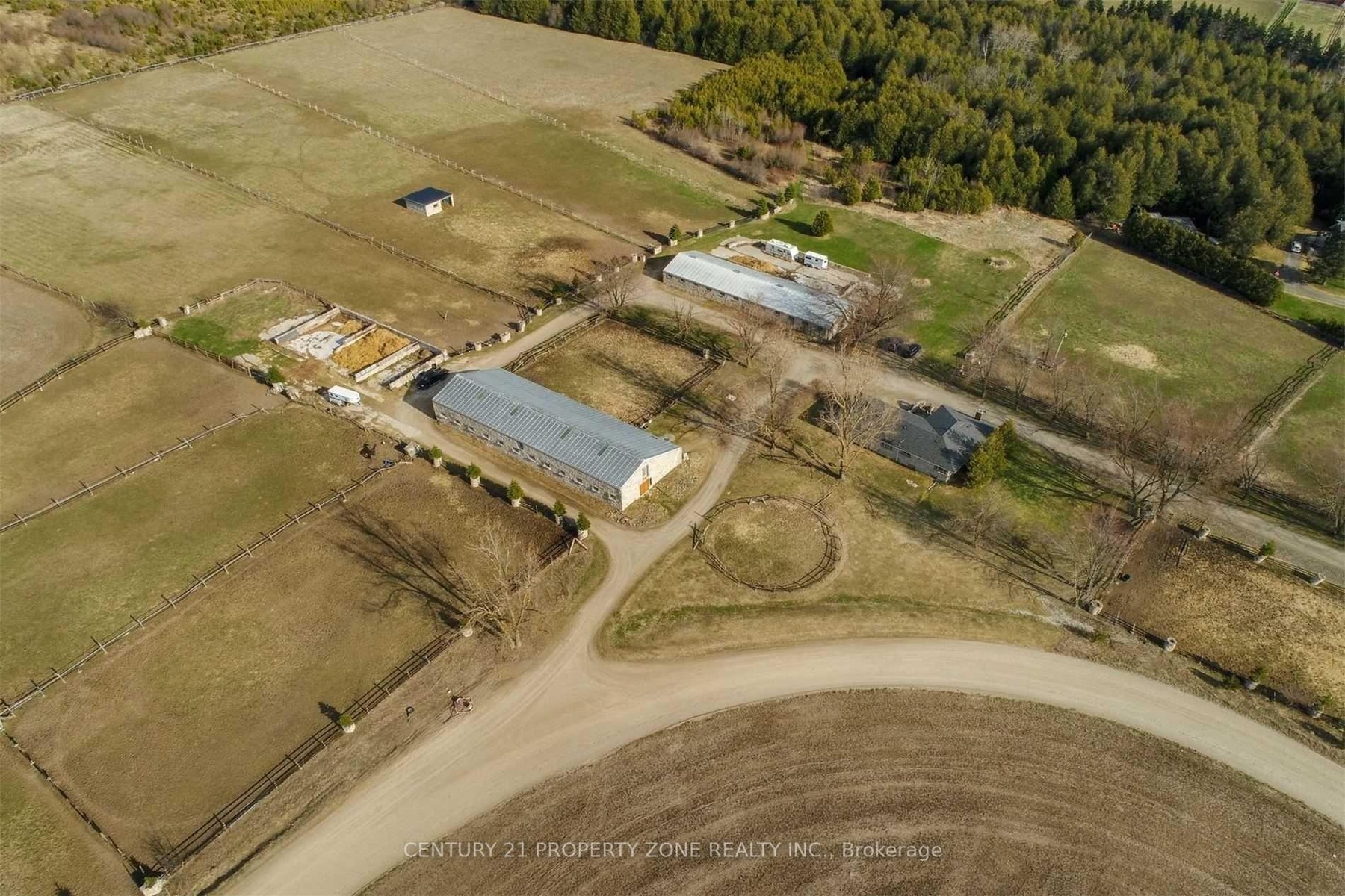 Exciting Investment Opportunity! Rare chance to own approximately 107 acres of versatile land featuring a farm with residence and an established commercial/industrial operation, offeringexcellent live-work and income potential. The property includes a large main residence configured as two separate units (4-bedroom home), a multi-office unit with boardroom and kitchen, plus 3 additional houses-ideal for extended family, staff housing, or rental income. Equestrian and agricultural features include a mile Standardbred training track, 2 barnswith 44 stalls, multiple paddocks, and approx. 80 acres of workable farmland. Additional improvements include a 30' x 80' coverall building with concrete floor, heated workshop withloft storage, and a spring-fed pond. All structures are finished with natural stone, adding character and durability. Conveniently located just 10 minutes to Orangeville and 45 minutes to Brampton. A truly unique property perfect for investors, equestrian use, or multi-family living with multiple income streams.