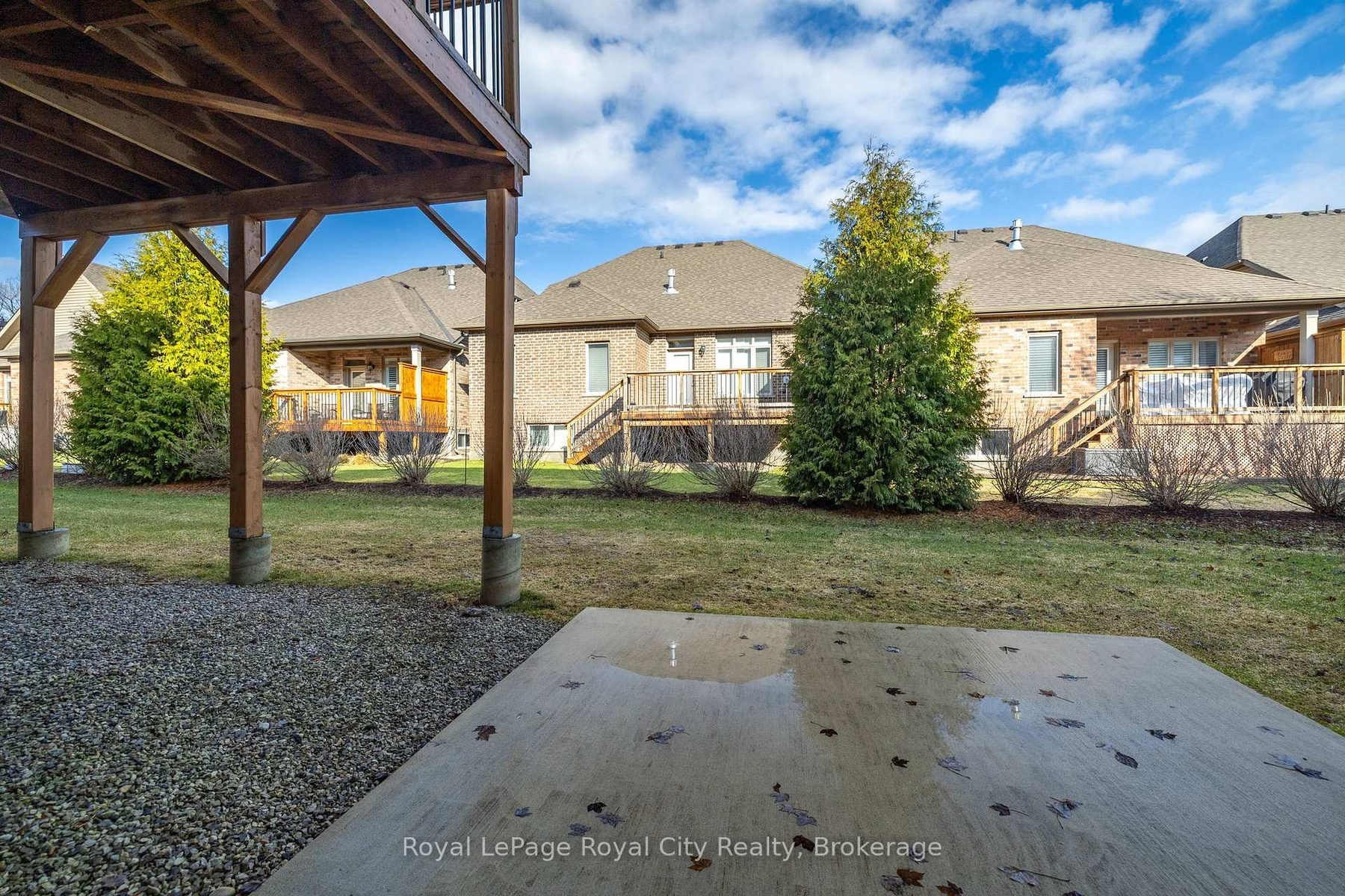 Welcome to this exceptional bungaloft in Charleston Homes' prestigious Noble Ridge community-where refined living meets a peaceful, nature-rich setting in the heart of Rockwood. Offering nearly 3,000 square feet of beautifully finished living space, this home is thoughtfully designed to accommodate multi-generational living without compromise. The main level showcases a stunning primary suite, complemented by soaring vaulted ceilings, a second bedroom, (or a versatile office or den), and an open-concept gourmet kitchen filled with natural light. Upstairs, a spacious loft retreat features a private bedroom, full ensuite bath, and a family room overlooking the main living area below-ideal for extended family or in-laws. The fully finished walkout basement with 9-foot ceilings expands the living space even further, complete with an additional bedroom, full bath, and seamless access to the outdoors. A large elevated deck, lower patio, and carefully curated finishes throughout enhance both function and style. Surrounded by scenic walking trails, a neighbourhood pond, and the charm of Rockwood's local amenities, this home offers a rare blend of luxury, flexibility, and lifestyle. Recent upgrades include quartz countertops in the kitchen and main floor baths, backsplash, new flooring in the loft, carpet on stairs, vinyl flooring in the basement, fresh paint throughout, and stainless steel fridge and stove.