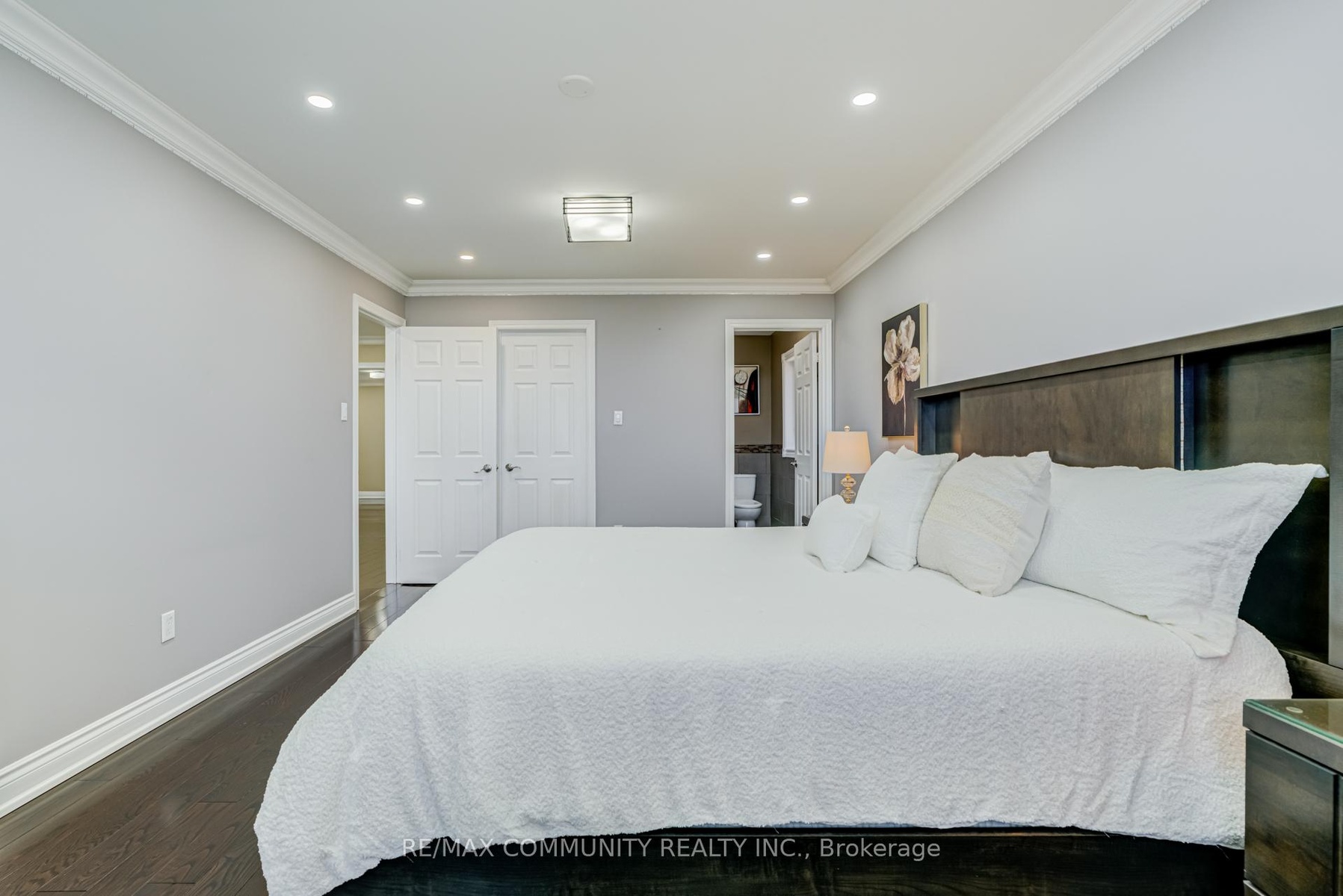 Impeccably Maintained Executive 2-Storey Detached Home in One of Markham's Most Sought-After Communities. Situated on an impressive 55 ft wide lot, this rare offering is one of the largest executive models in the area, featuring approximately 3,469 sq ft above grade plus a fully finished basement - offering over 5,100 sq ft of total living space. Step into a grand double-door entry that opens to a stunning interior highlighted by a dramatic spiral staircase, pot lights, crown moulding, and smooth ceilings throughout the main and second levels. The expansive open-concept living and dining areas create the perfect setting for entertaining and family gatherings. The gourmet kitchen showcases upgraded cabinetry, granite countertops, and a walk-out to a beautifully interlocked backyard - ideal for seamless indoor-outdoor living. Retreat to the spacious primary bedroom featuring an oversized walk-in closet and a fully renovated 5-piece ensuite, complete with a premium full stone shower panel for a spa-like experience. The basement offers a separate entrance and includes 1 bedroom, a 4-piece bathroom, and a rough-in for a kitchen. Equipped with a video doorbell system and approved for business use by the City of Markham, it presents excellent potential for a home-based business or additional living space. Unbeatable location - just a short walk to major shopping including Walmart, RONA, and a wide variety of restaurants, offering ultimate everyday convenience. Ideally located close to top-rated schools, parks, and public transit.