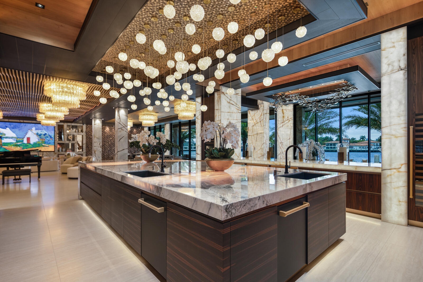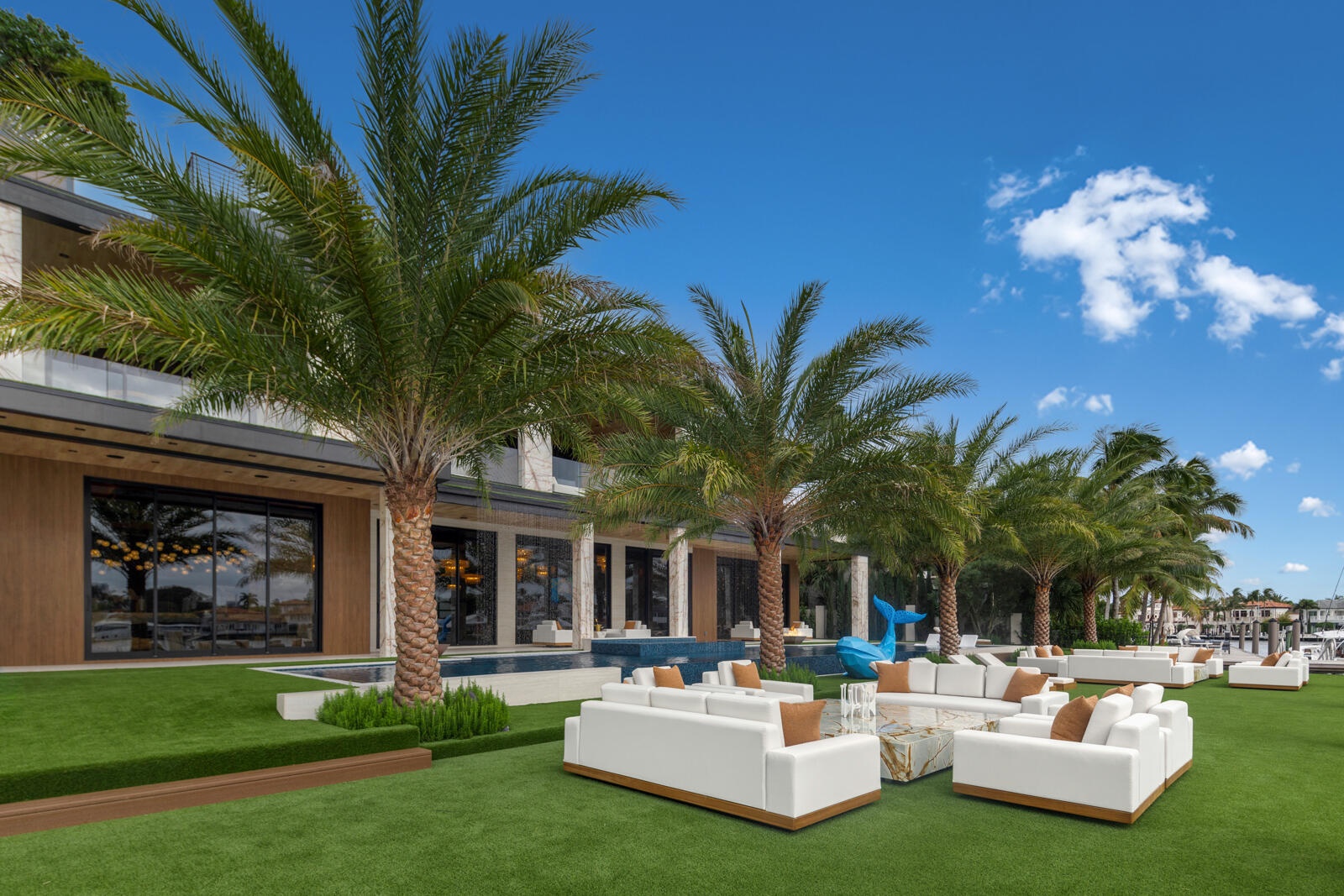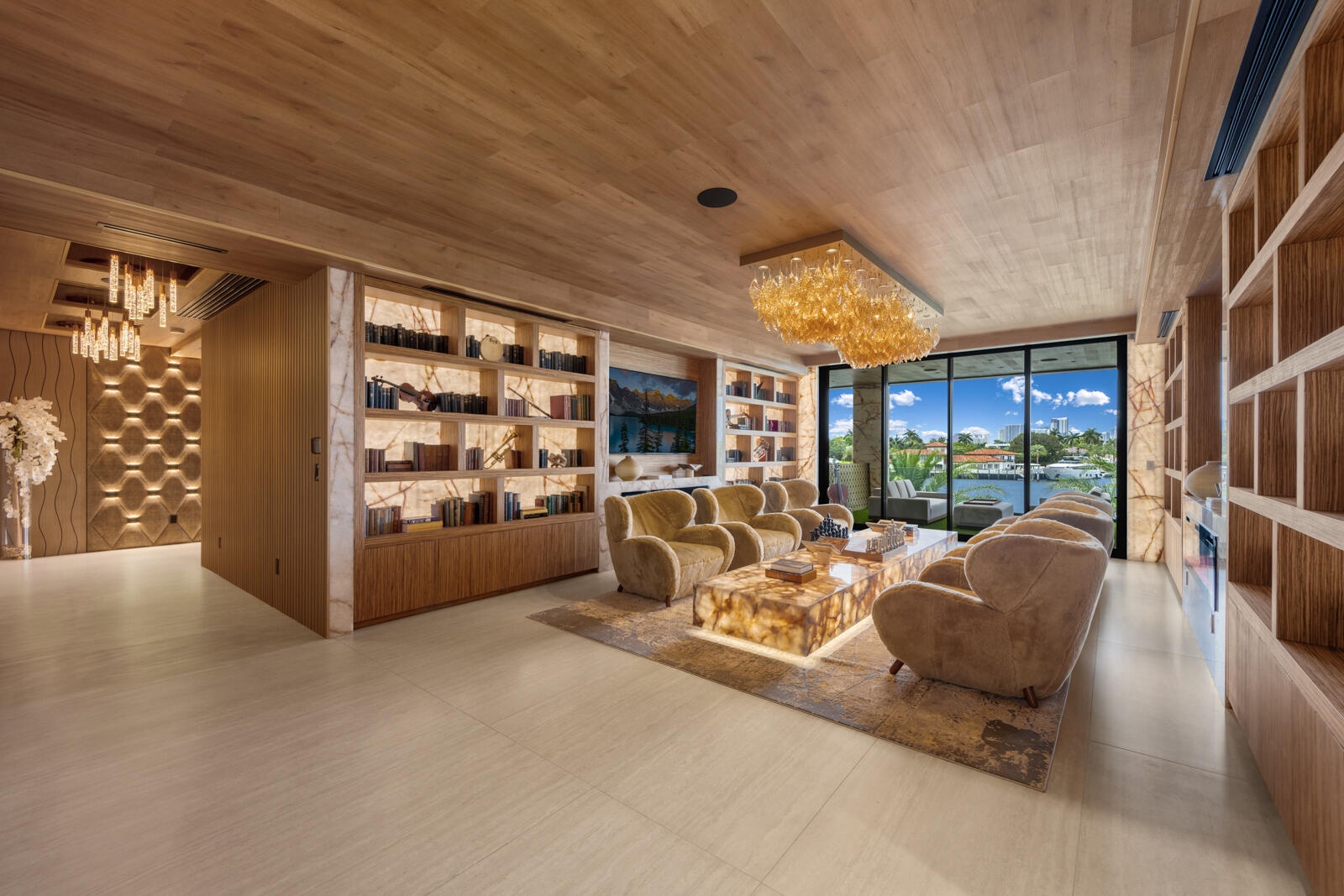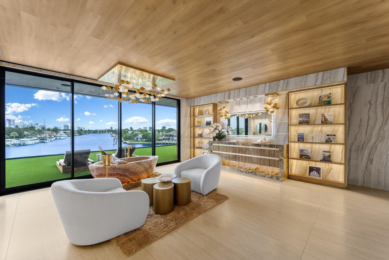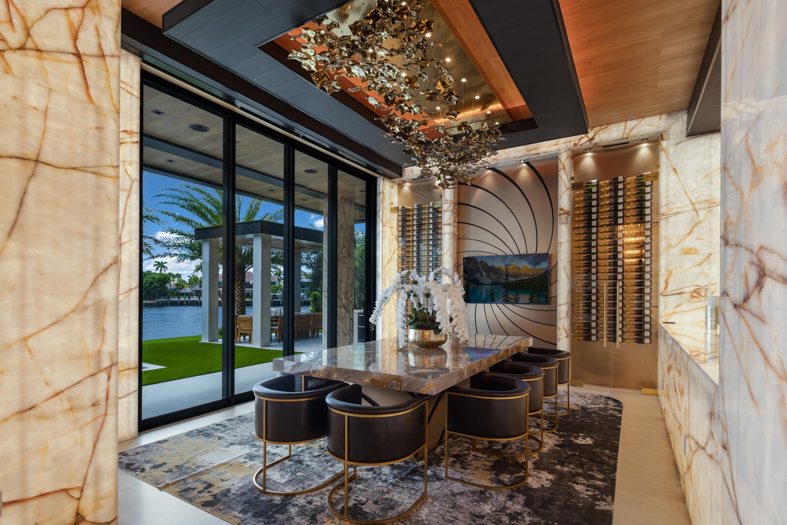 Just completed A new benchmark in modern waterfront living, this original, design-forward estate by Prestige Homes, one of South Florida's most exclusive builders stands apart from anything currently offered. Set on an oversized lot within a premier gated enclave with dedicated police patrol, it commands sweeping wide-water views and 145' of pristine frontage with new seawall and dock. Conceived as a private resort, theresidence delivers a rare combination of architectural innovation, scale, and lifestyle featuring a collector-level garage, wellness spaces, entertainment venues, and dramatic outdoor living anchored by an 85' mosaic pool with cascading water features and a rooftop experience unlike any other. Fully furnished, and uncompromising. This is not comparable—this is the reference. Verified proof of funds will be required prior to any showing. check the builder youtube channel @DovStark for videos of this new project and previous ones. Set within a premier gated community with dedicated police patrol, this estate is further secured behind its own private gates, delivering a rare level of privacy and control. Engineered as a true smart residence, every element—from gates, cameras, lighting, climate, and security—is seamlessly integrated through an enterprise-grade network infrastructure. Designed for both high-level entertaining and daily performance, the home features a 4K laser theater, fully customized gym with professional equipment, expansive club and bar areas, and a complete wellness suite including sauna. The 8-car collector garage, with glass door to the club room and a lounge, dramatic custom mosaic poolscape with waterfalls, and rooftop amenities elevate the experience beyond typical luxury offerings.