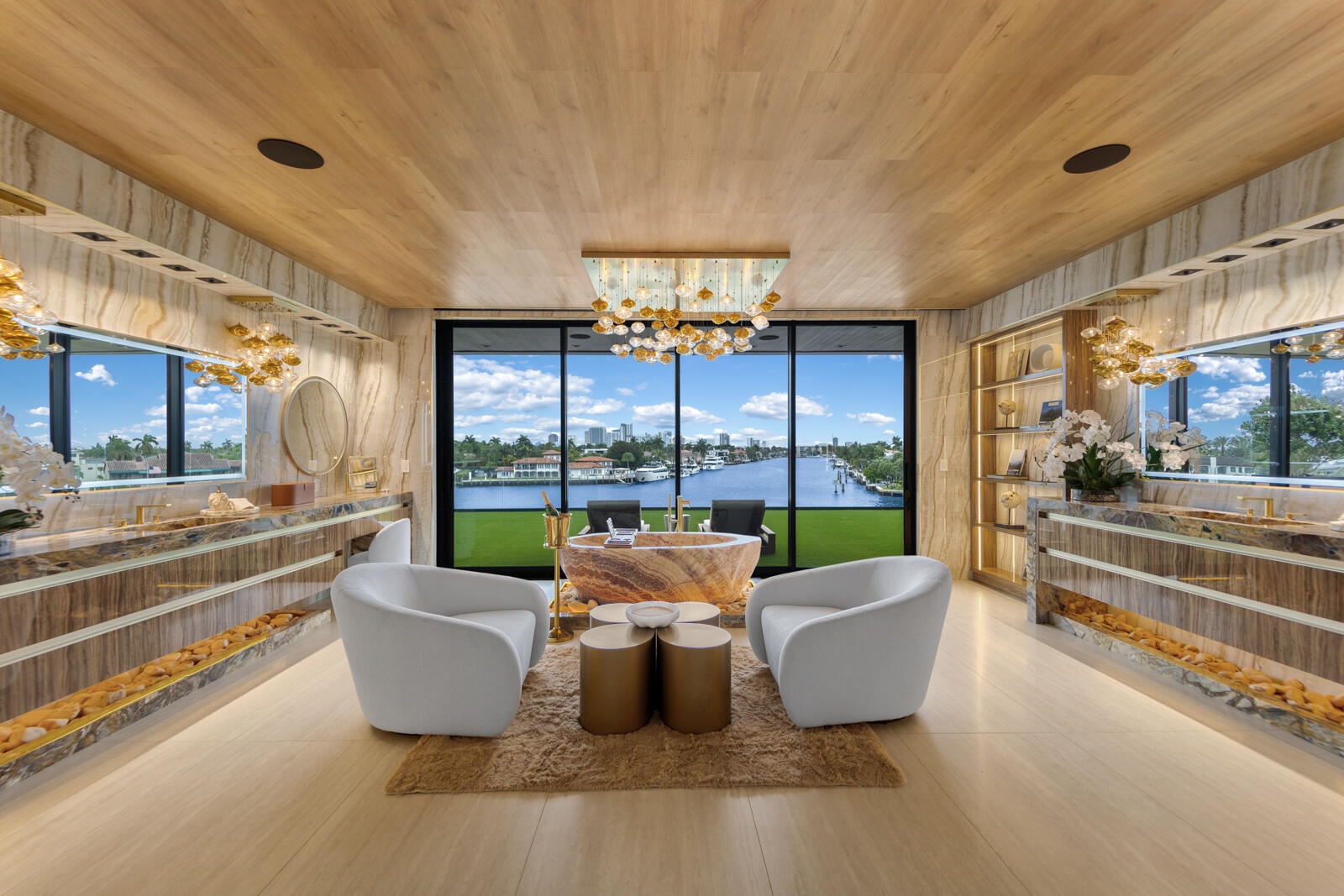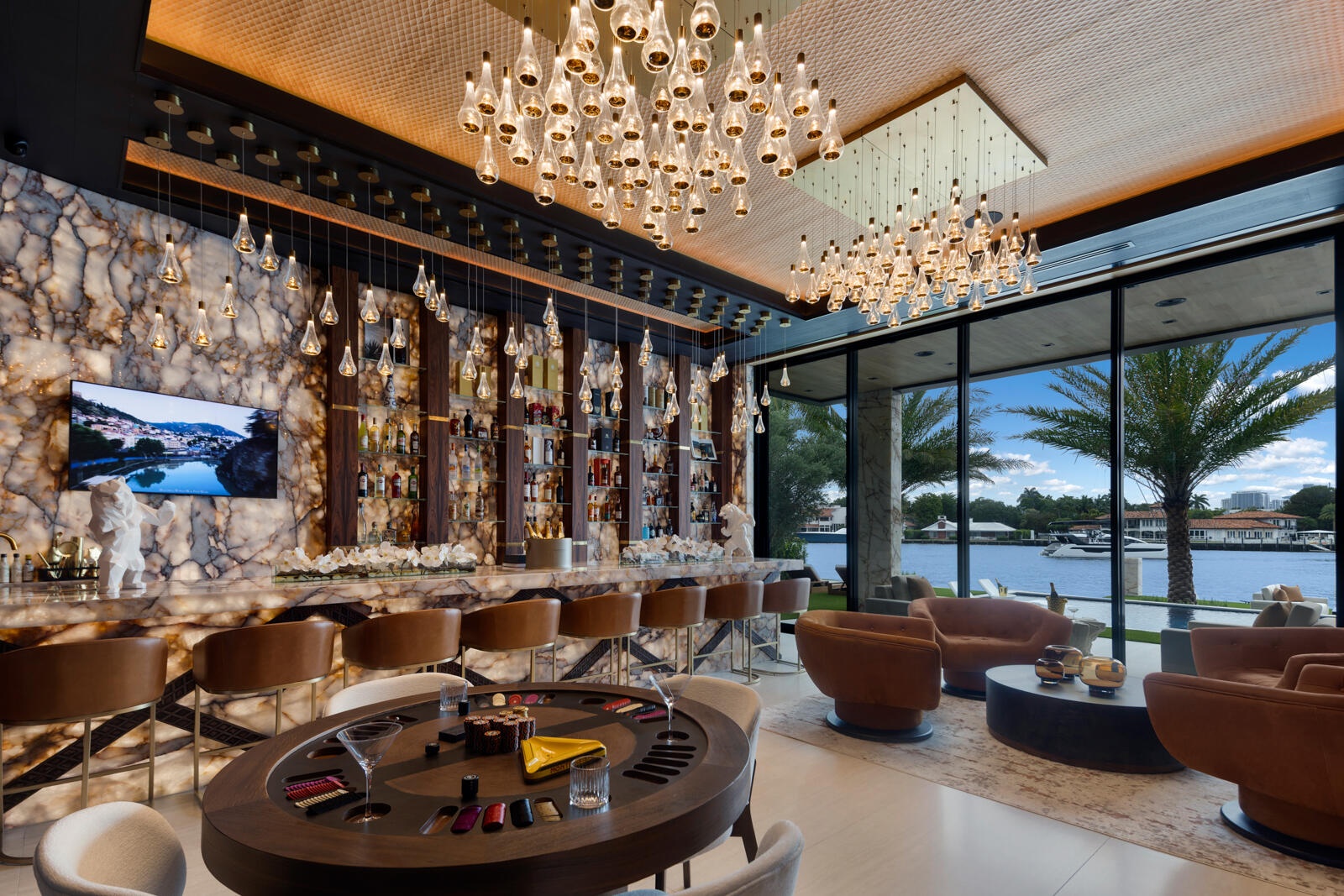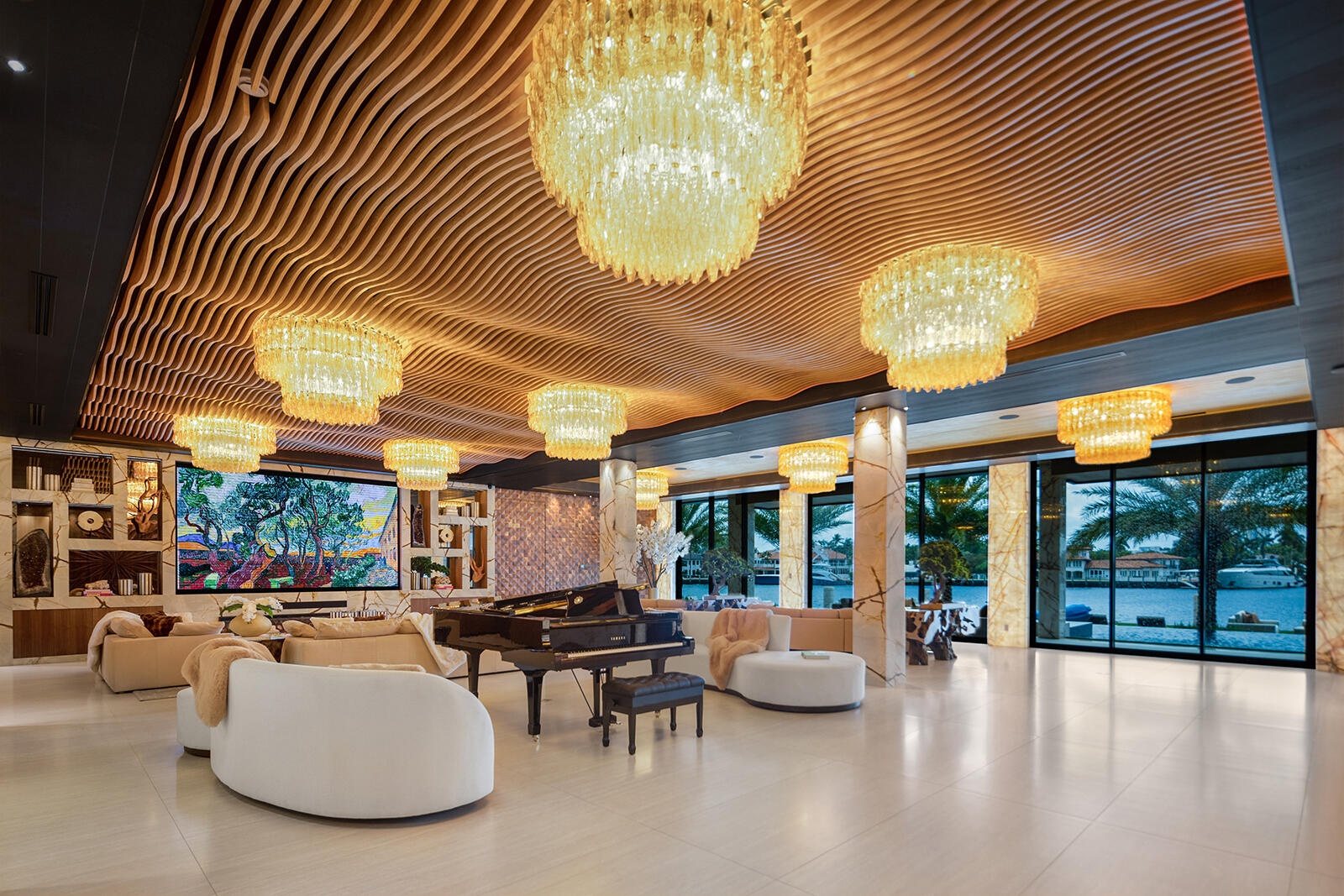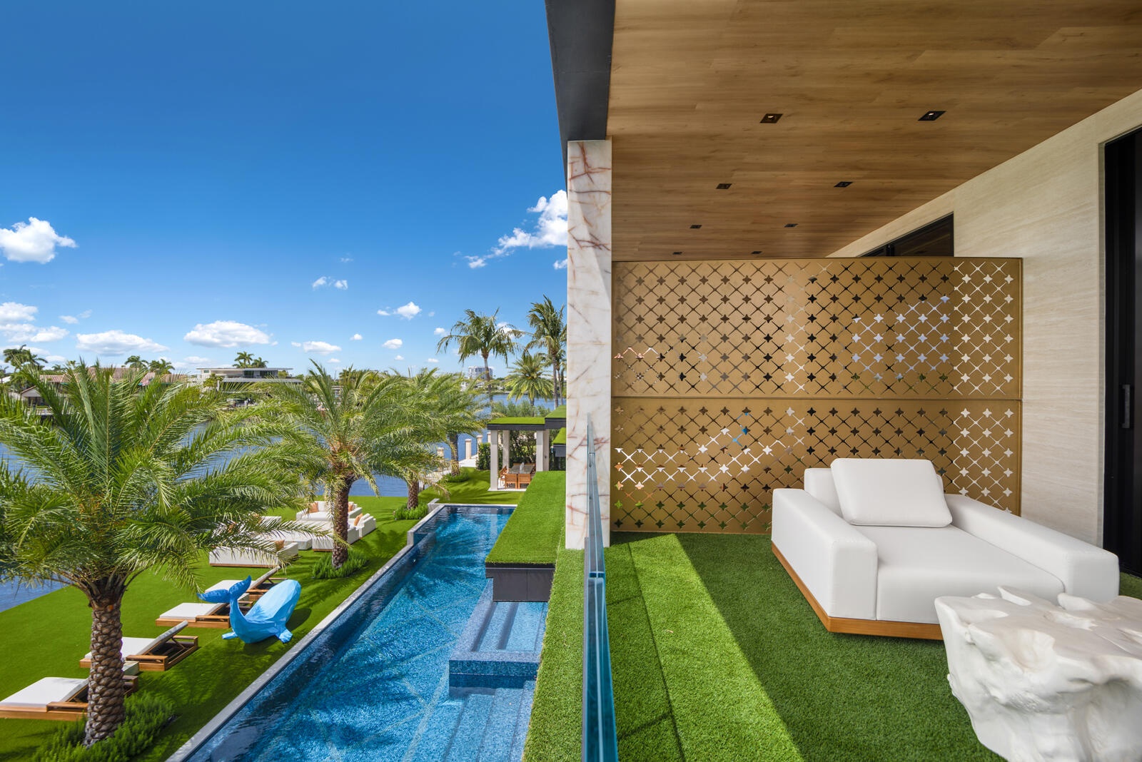 Just completed A new benchmark in modern waterfront living, this original, design-forward estate by Prestige Homes, one of South Florida's most exclusive builders stands apart from anything currently offered. Set on an oversized lot within a premier gated enclave with dedicated police patrol, it commands sweeping wide-water views and 145' of pristine frontage with new seawall and dock. Conceived as a private resort, theresidence delivers a rare combination of architectural innovation, scale, and lifestyle featuring a collector-level garage, wellness spaces, entertainment venues, and dramatic outdoor living anchored by an 85' mosaic pool with cascading water features and a rooftop experience unlike any other. Fully furnished, and uncompromising. This is not comparable—this is the reference. Verified proof of funds will be required prior to any showing. check the builder youtube channel @DovStark for videos of this new project and previous ones. Set within a premier gated community with dedicated police patrol, this estate is further secured behind its own private gates, delivering a rare level of privacy and control. Engineered as a true smart residence, every element—from gates, cameras, lighting, climate, and security—is seamlessly integrated through an enterprise-grade network infrastructure. Designed for both high-level entertaining and daily performance, the home features a 4K laser theater, fully customized gym with professional equipment, expansive club and bar areas, and a complete wellness suite including sauna. The 8-car collector garage, with glass door to the club room and a lounge, dramatic custom mosaic poolscape with waterfalls, and rooftop amenities elevate the experience beyond typical luxury offerings.