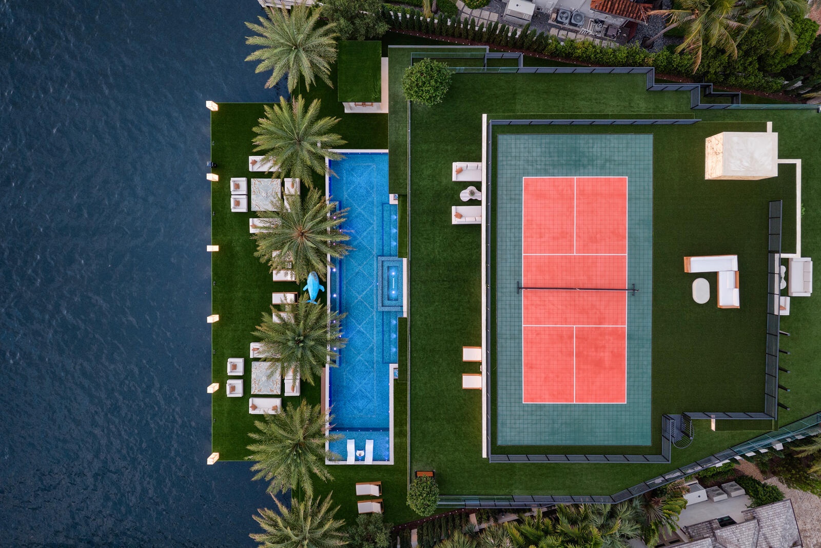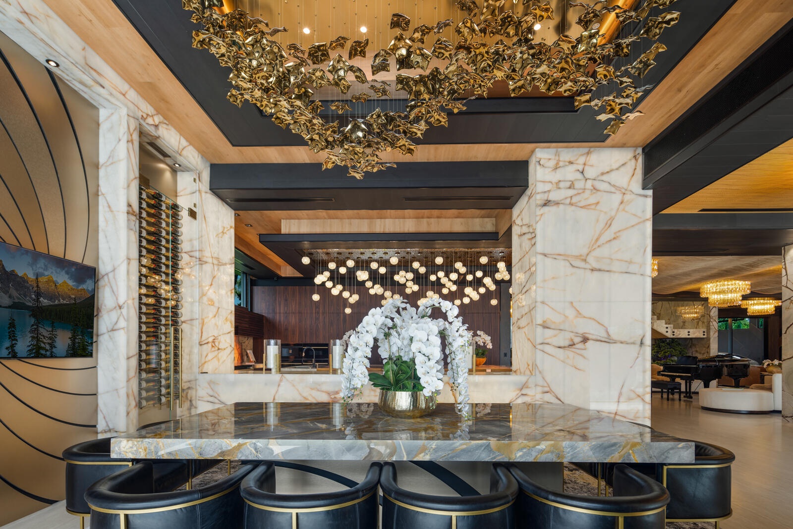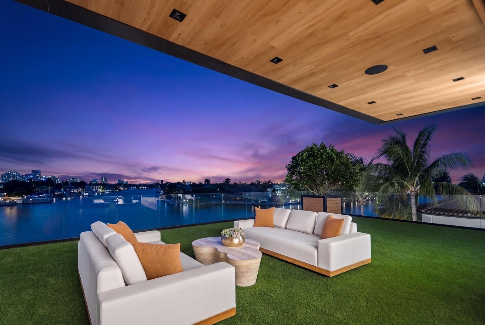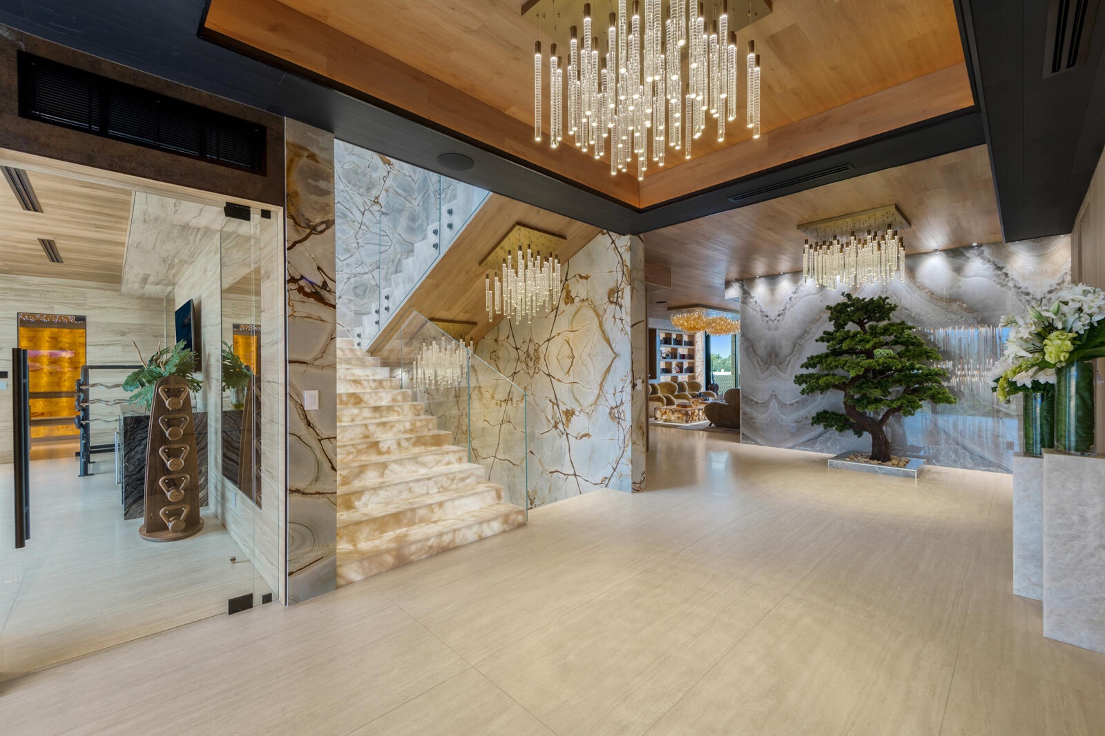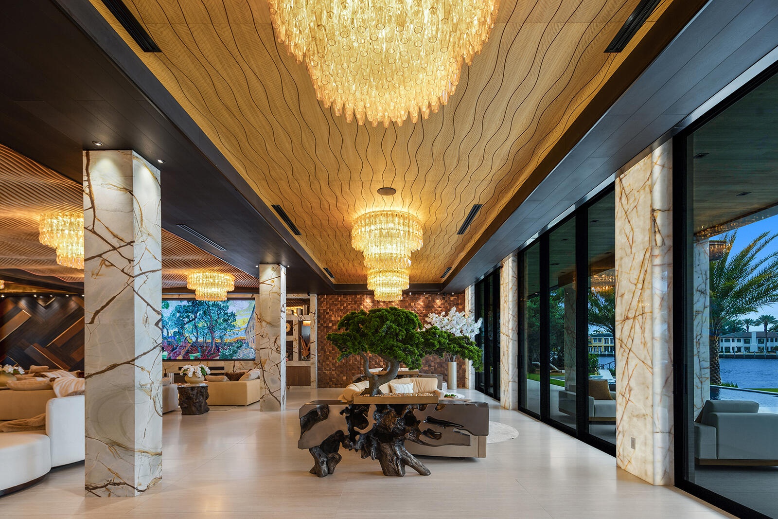 Just completed A new benchmark in modern waterfront living, this original, design-forward estate by Prestige Homes, one of South Florida's most exclusive builders stands apart from anything currently offered. Set on an oversized lot within a premier gated enclave with dedicated police patrol, it commands sweeping wide-water views and 145' of pristine frontage with new seawall and dock. Conceived as a private resort, theresidence delivers a rare combination of architectural innovation, scale, and lifestyle featuring a collector-level garage, wellness spaces, entertainment venues, and dramatic outdoor living anchored by an 85' mosaic pool with cascading water features and a rooftop experience unlike any other. Fully furnished, and uncompromising. This is not comparable—this is the reference. Verified proof of funds will be required prior to any showing. check the builder youtube channel @DovStark for videos of this new project and previous ones. Set within a premier gated community with dedicated police patrol, this estate is further secured behind its own private gates, delivering a rare level of privacy and control. Engineered as a true smart residence, every element—from gates, cameras, lighting, climate, and security—is seamlessly integrated through an enterprise-grade network infrastructure. Designed for both high-level entertaining and daily performance, the home features a 4K laser theater, fully customized gym with professional equipment, expansive club and bar areas, and a complete wellness suite including sauna. The 8-car collector garage, with glass door to the club room and a lounge, dramatic custom mosaic poolscape with waterfalls, and rooftop amenities elevate the experience beyond typical luxury offerings.