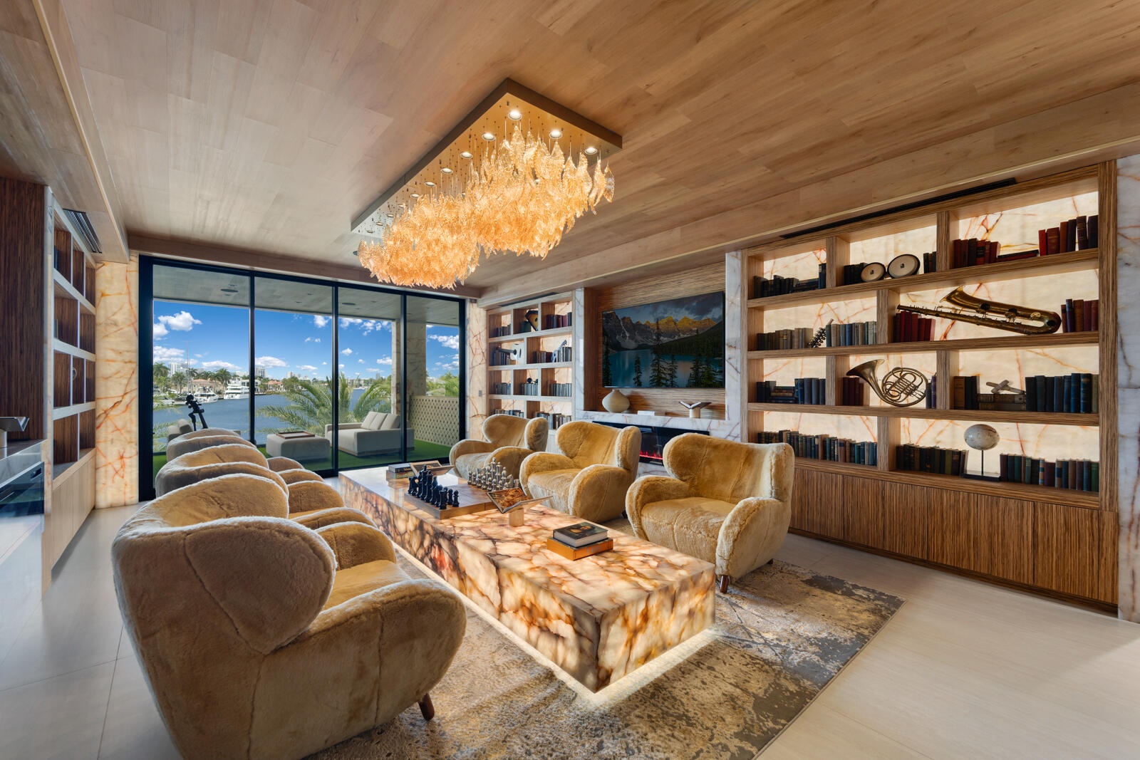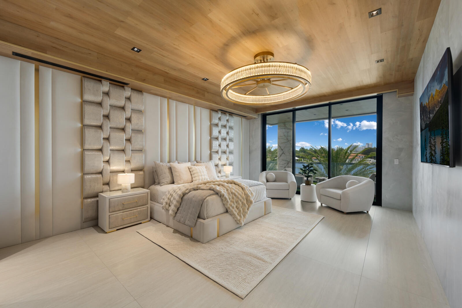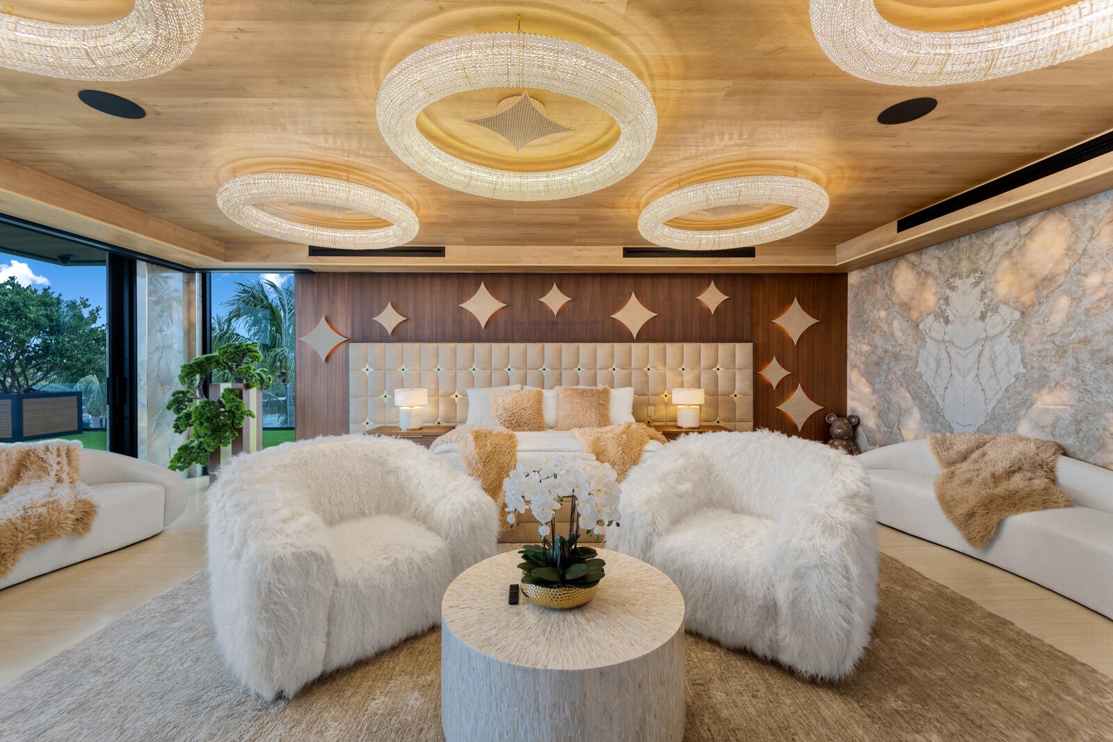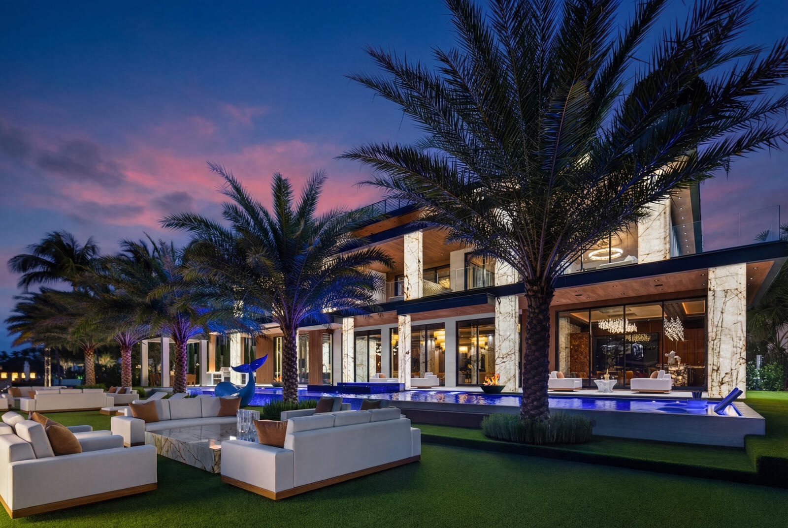 Just completed A new benchmark in modern waterfront living, this original, design-forward estate by Prestige Homes, one of South Florida's most exclusive builders stands apart from anything currently offered. Set on an oversized lot within a premier gated enclave with dedicated police patrol, it commands sweeping wide-water views and 145' of pristine frontage with new seawall and dock. Conceived as a private resort, theresidence delivers a rare combination of architectural innovation, scale, and lifestyle featuring a collector-level garage, wellness spaces, entertainment venues, and dramatic outdoor living anchored by an 85' mosaic pool with cascading water features and a rooftop experience unlike any other. Fully furnished, and uncompromising. This is not comparable—this is the reference. Verified proof of funds will be required prior to any showing. check the builder youtube channel @DovStark for videos of this new project and previous ones. Set within a premier gated community with dedicated police patrol, this estate is further secured behind its own private gates, delivering a rare level of privacy and control. Engineered as a true smart residence, every element—from gates, cameras, lighting, climate, and security—is seamlessly integrated through an enterprise-grade network infrastructure. Designed for both high-level entertaining and daily performance, the home features a 4K laser theater, fully customized gym with professional equipment, expansive club and bar areas, and a complete wellness suite including sauna. The 8-car collector garage, with glass door to the club room and a lounge, dramatic custom mosaic poolscape with waterfalls, and rooftop amenities elevate the experience beyond typical luxury offerings.