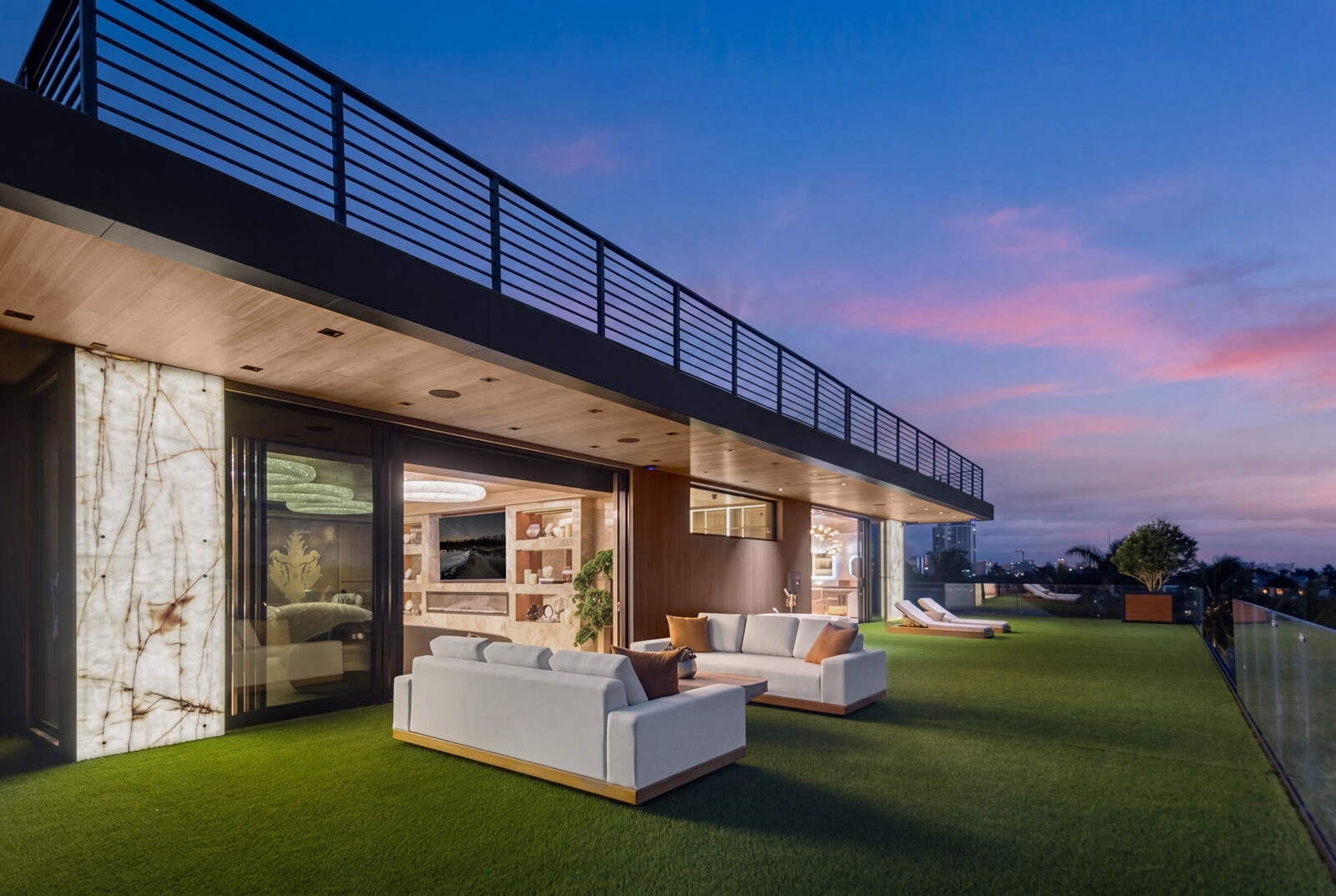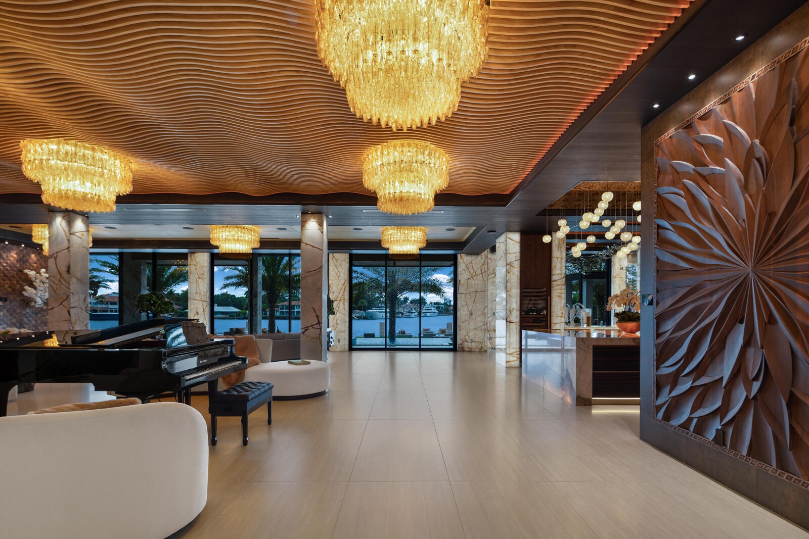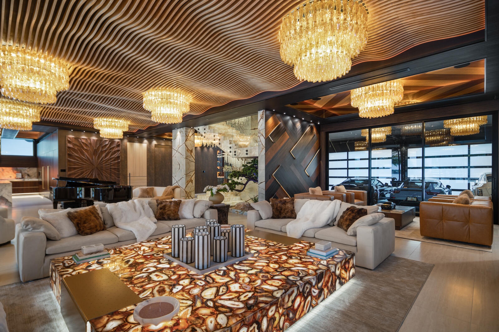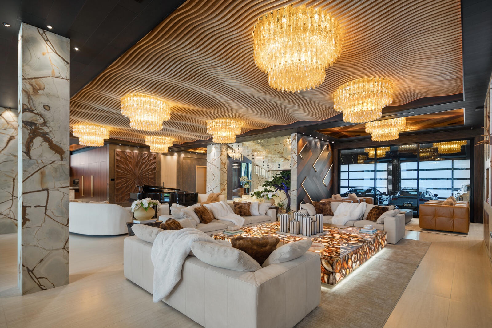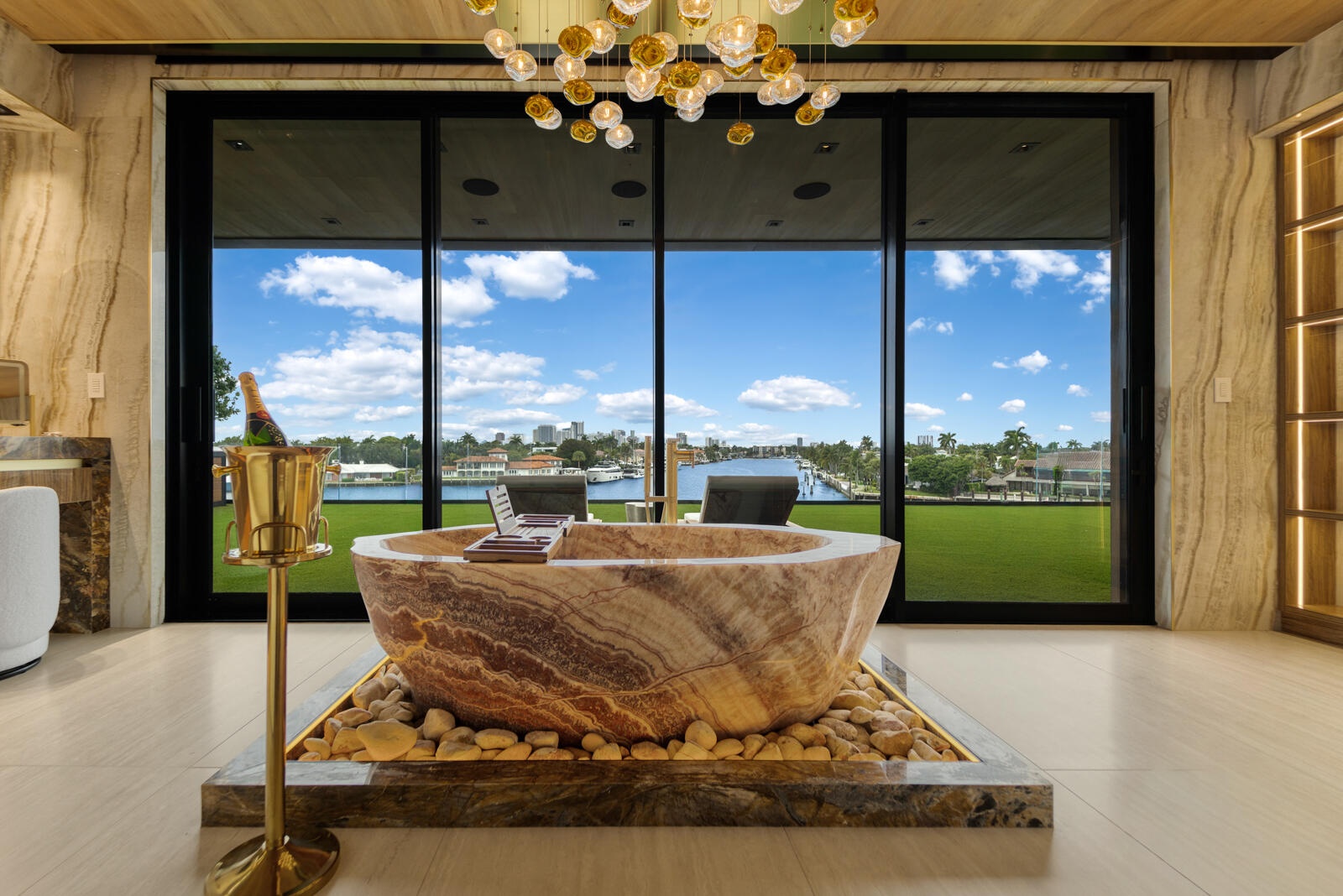 Just completed A new benchmark in modern waterfront living, this original, design-forward estate by Prestige Homes, one of South Florida's most exclusive builders stands apart from anything currently offered. Set on an oversized lot within a premier gated enclave with dedicated police patrol, it commands sweeping wide-water views and 145' of pristine frontage with new seawall and dock. Conceived as a private resort, theresidence delivers a rare combination of architectural innovation, scale, and lifestyle featuring a collector-level garage, wellness spaces, entertainment venues, and dramatic outdoor living anchored by an 85' mosaic pool with cascading water features and a rooftop experience unlike any other. Fully furnished, and uncompromising. This is not comparable—this is the reference. Verified proof of funds will be required prior to any showing. check the builder youtube channel @DovStark for videos of this new project and previous ones. Set within a premier gated community with dedicated police patrol, this estate is further secured behind its own private gates, delivering a rare level of privacy and control. Engineered as a true smart residence, every element—from gates, cameras, lighting, climate, and security—is seamlessly integrated through an enterprise-grade network infrastructure. Designed for both high-level entertaining and daily performance, the home features a 4K laser theater, fully customized gym with professional equipment, expansive club and bar areas, and a complete wellness suite including sauna. The 8-car collector garage, with glass door to the club room and a lounge, dramatic custom mosaic poolscape with waterfalls, and rooftop amenities elevate the experience beyond typical luxury offerings.