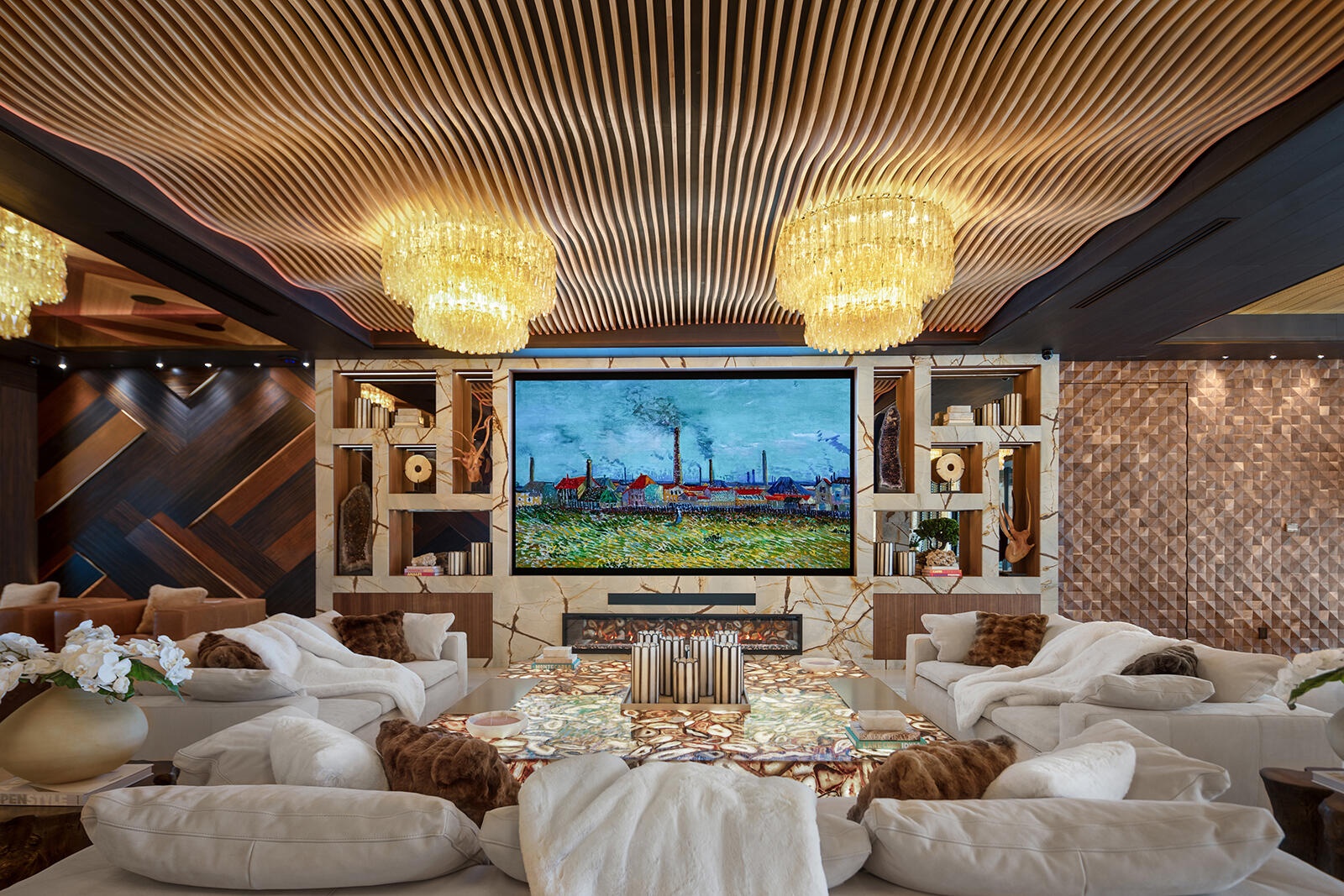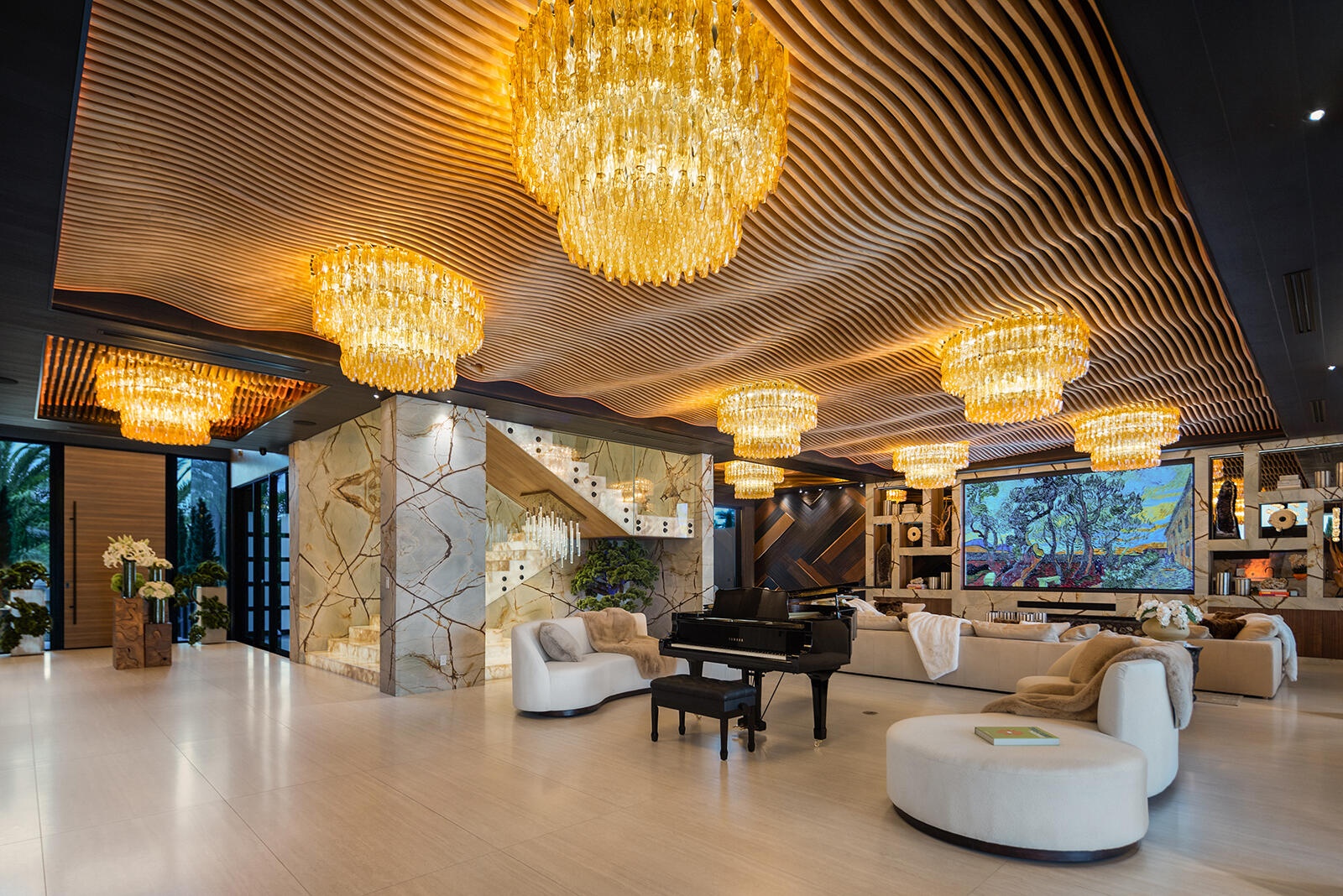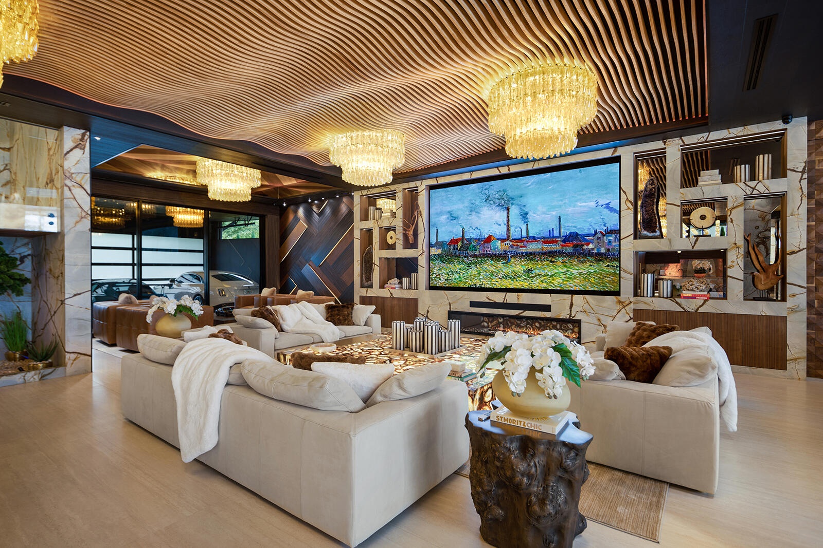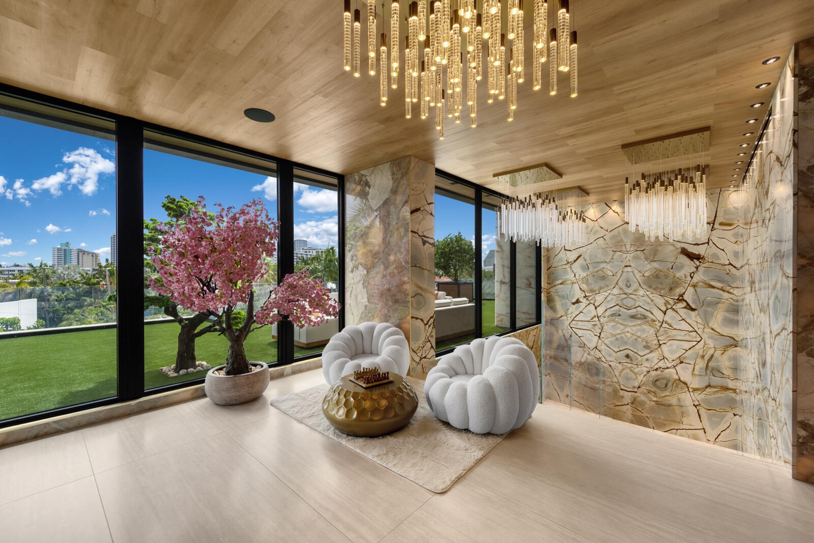 Just completed A new benchmark in modern waterfront living, this original, design-forward estate by Prestige Homes, one of South Florida's most exclusive builders stands apart from anything currently offered. Set on an oversized lot within a premier gated enclave with dedicated police patrol, it commands sweeping wide-water views and 145' of pristine frontage with new seawall and dock. Conceived as a private resort, theresidence delivers a rare combination of architectural innovation, scale, and lifestyle featuring a collector-level garage, wellness spaces, entertainment venues, and dramatic outdoor living anchored by an 85' mosaic pool with cascading water features and a rooftop experience unlike any other. Fully furnished, and uncompromising. This is not comparable—this is the reference. Verified proof of funds will be required prior to any showing. check the builder youtube channel @DovStark for videos of this new project and previous ones. Set within a premier gated community with dedicated police patrol, this estate is further secured behind its own private gates, delivering a rare level of privacy and control. Engineered as a true smart residence, every element—from gates, cameras, lighting, climate, and security—is seamlessly integrated through an enterprise-grade network infrastructure. Designed for both high-level entertaining and daily performance, the home features a 4K laser theater, fully customized gym with professional equipment, expansive club and bar areas, and a complete wellness suite including sauna. The 8-car collector garage, with glass door to the club room and a lounge, dramatic custom mosaic poolscape with waterfalls, and rooftop amenities elevate the experience beyond typical luxury offerings.