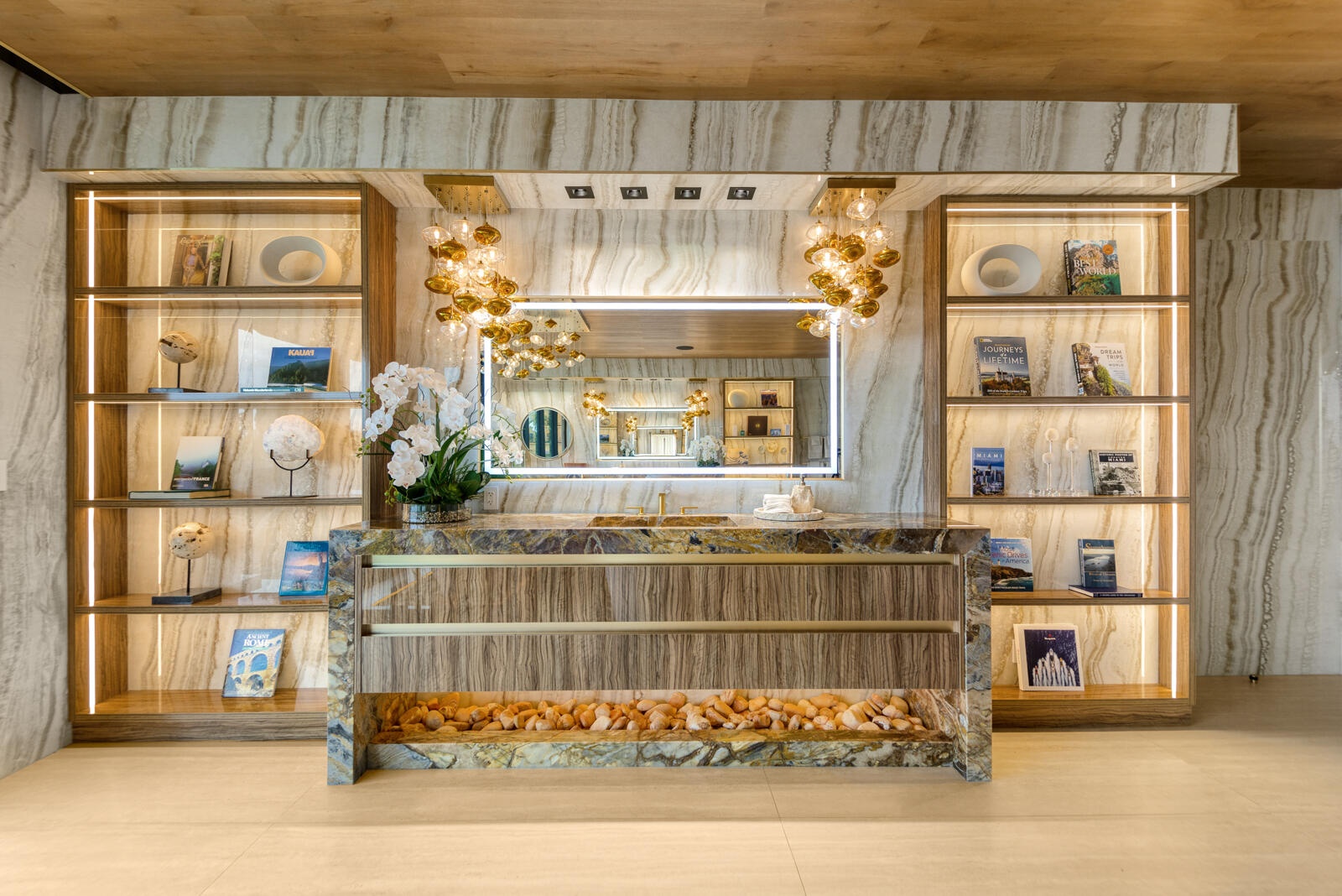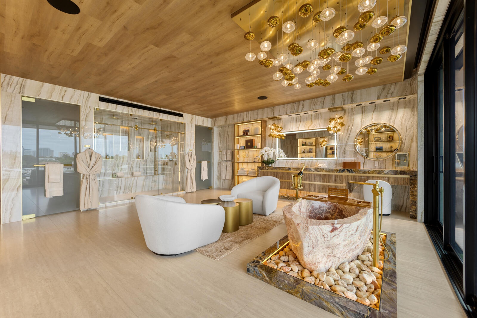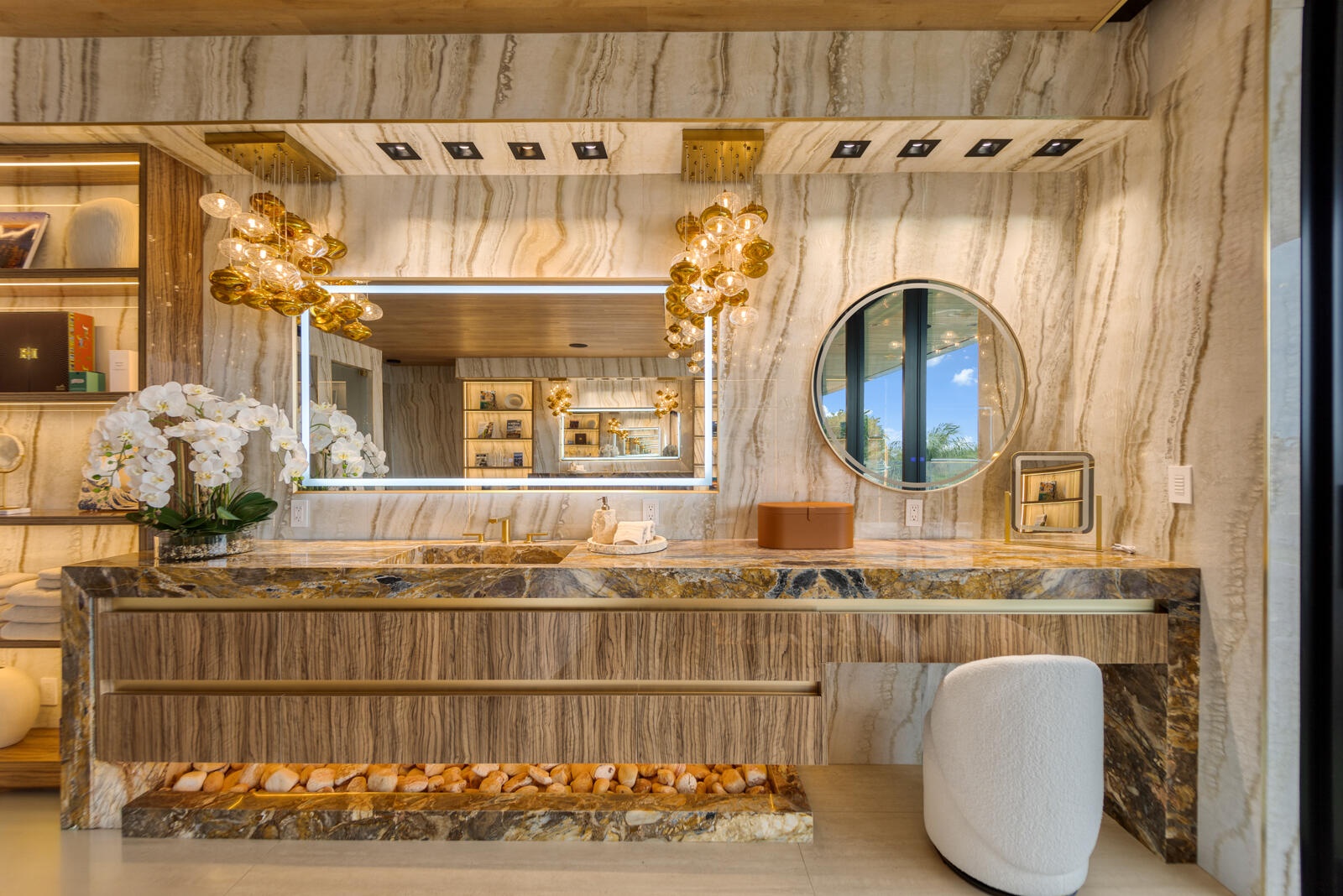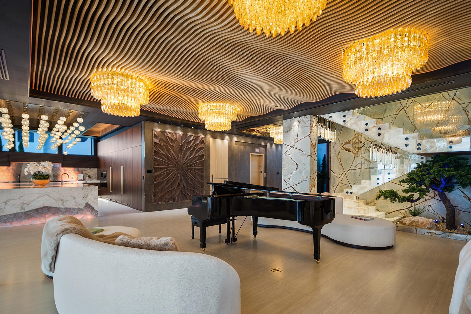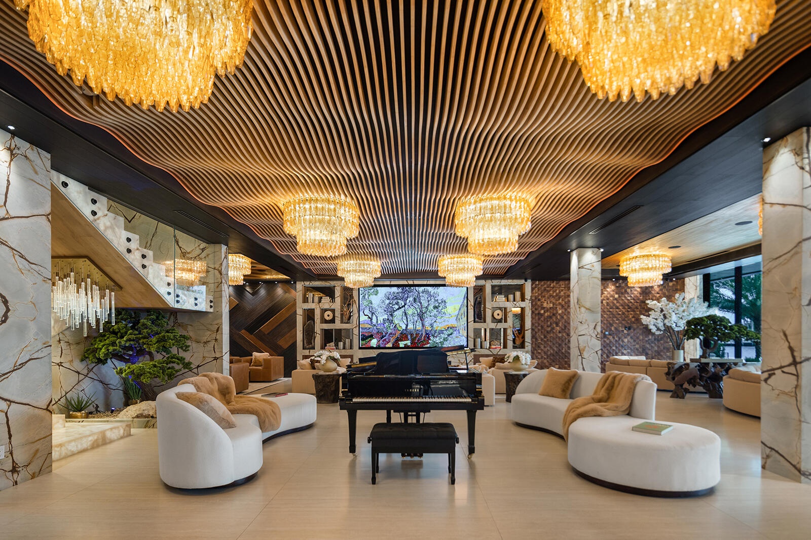 Just completed A new benchmark in modern waterfront living, this original, design-forward estate by Prestige Homes, one of South Florida's most exclusive builders stands apart from anything currently offered. Set on an oversized lot within a premier gated enclave with dedicated police patrol, it commands sweeping wide-water views and 145' of pristine frontage with new seawall and dock. Conceived as a private resort, theresidence delivers a rare combination of architectural innovation, scale, and lifestyle featuring a collector-level garage, wellness spaces, entertainment venues, and dramatic outdoor living anchored by an 85' mosaic pool with cascading water features and a rooftop experience unlike any other. Fully furnished, and uncompromising. This is not comparable—this is the reference. Verified proof of funds will be required prior to any showing. check the builder youtube channel @DovStark for videos of this new project and previous ones. Set within a premier gated community with dedicated police patrol, this estate is further secured behind its own private gates, delivering a rare level of privacy and control. Engineered as a true smart residence, every element—from gates, cameras, lighting, climate, and security—is seamlessly integrated through an enterprise-grade network infrastructure. Designed for both high-level entertaining and daily performance, the home features a 4K laser theater, fully customized gym with professional equipment, expansive club and bar areas, and a complete wellness suite including sauna. The 8-car collector garage, with glass door to the club room and a lounge, dramatic custom mosaic poolscape with waterfalls, and rooftop amenities elevate the experience beyond typical luxury offerings.
