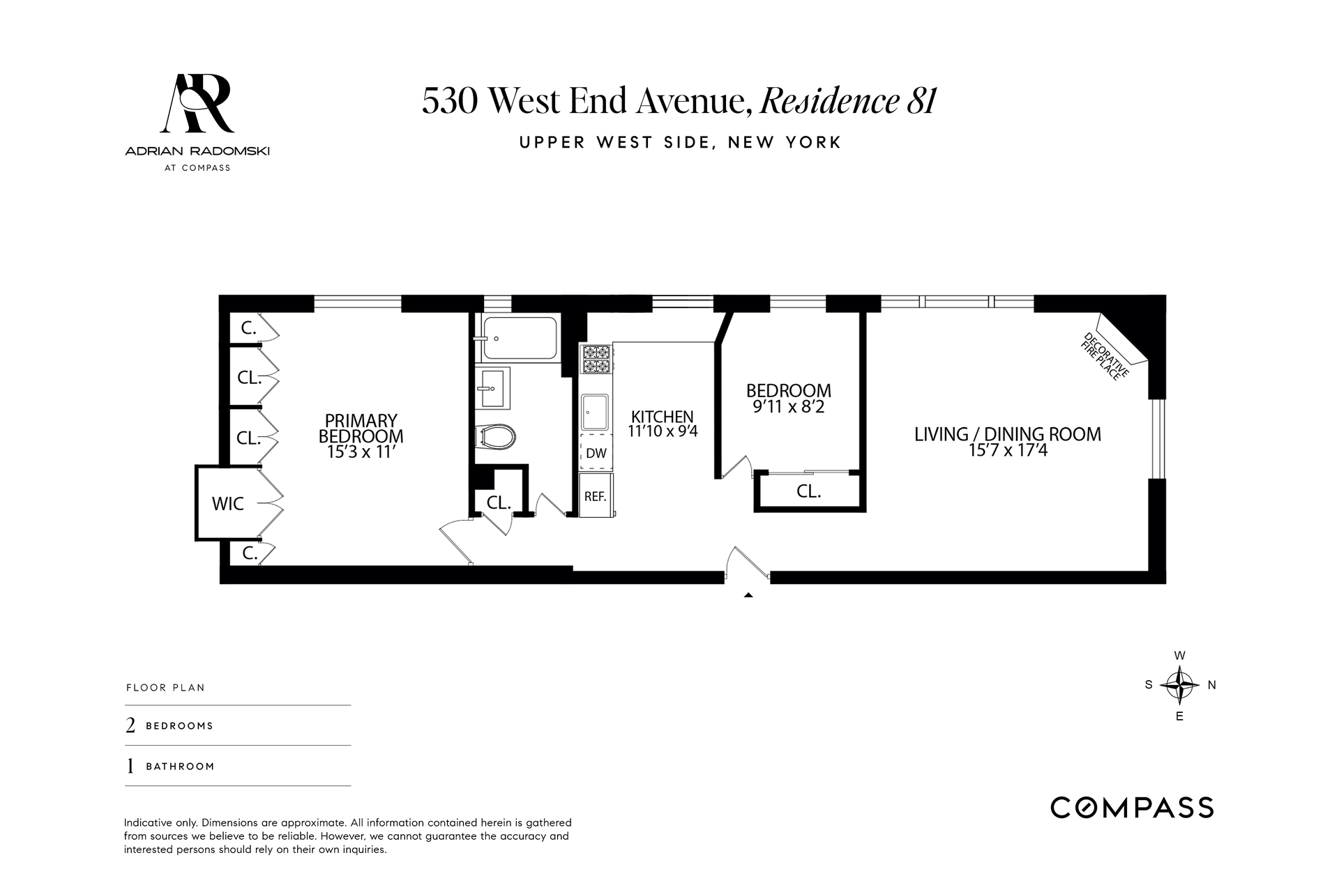 bedroom, one-bathroom Upper West Side home featuring generous storage and a