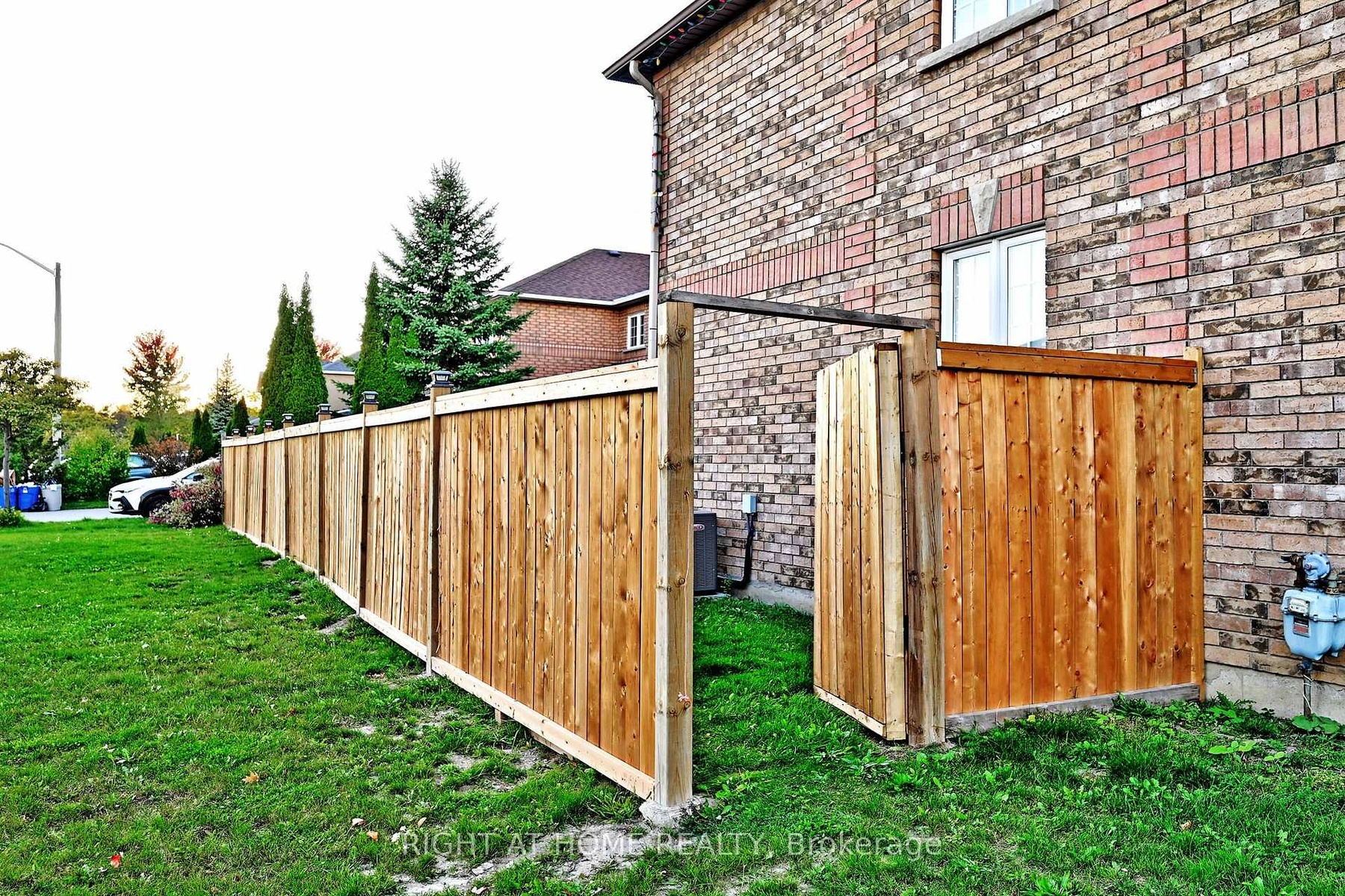 Step into this stunning end-unit townhomebeautifully maintained and thoughtfully upgraded throughout! It is like semi-detached house. Located in the desirable Humberlands neighbourhood, this sun-filled home boasts a modern newer kitchen with ample cupboard space, brand new dishwasher, oven, and fridge, plus stylish updates including new flooring on the main level, a freshly stained oak staircase, and a completely renovated main-floor powder room.Enjoy the spacious layout featuring generously sized bedrooms, a bright and airy ambiance with plenty of natural light, and elegant strip hardwood & ceramic flooring on the main floor. The double door entry welcomes you into a space that truly shows pride of ownership.Step outside into your private, professionally landscaped yard, complete with a new 12x12 ft deck, ideal for entertaining, and a new fence on the left side for added privacy. Additional major upgrades include a new roof, new air conditioning system, and morejust move in and enjoy!