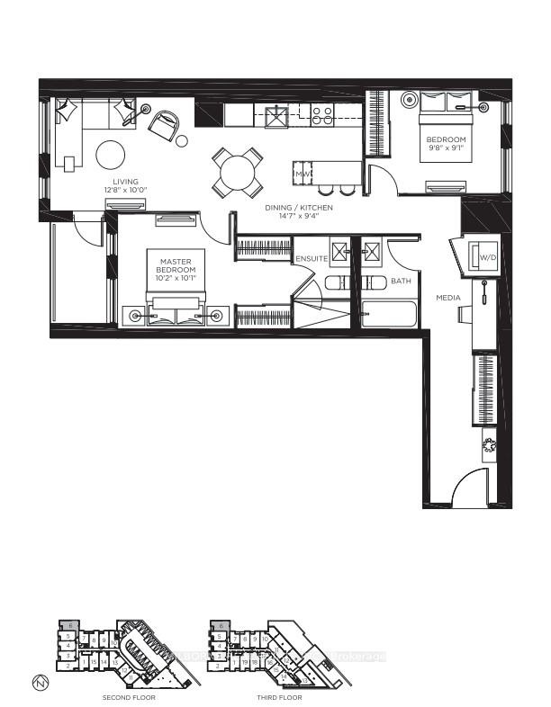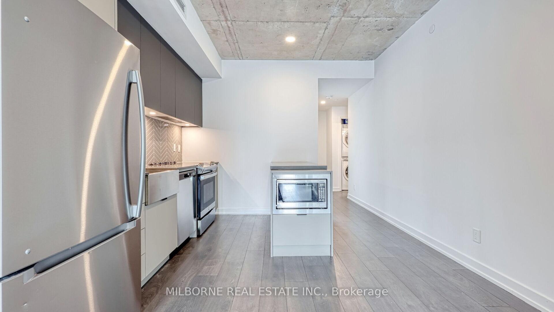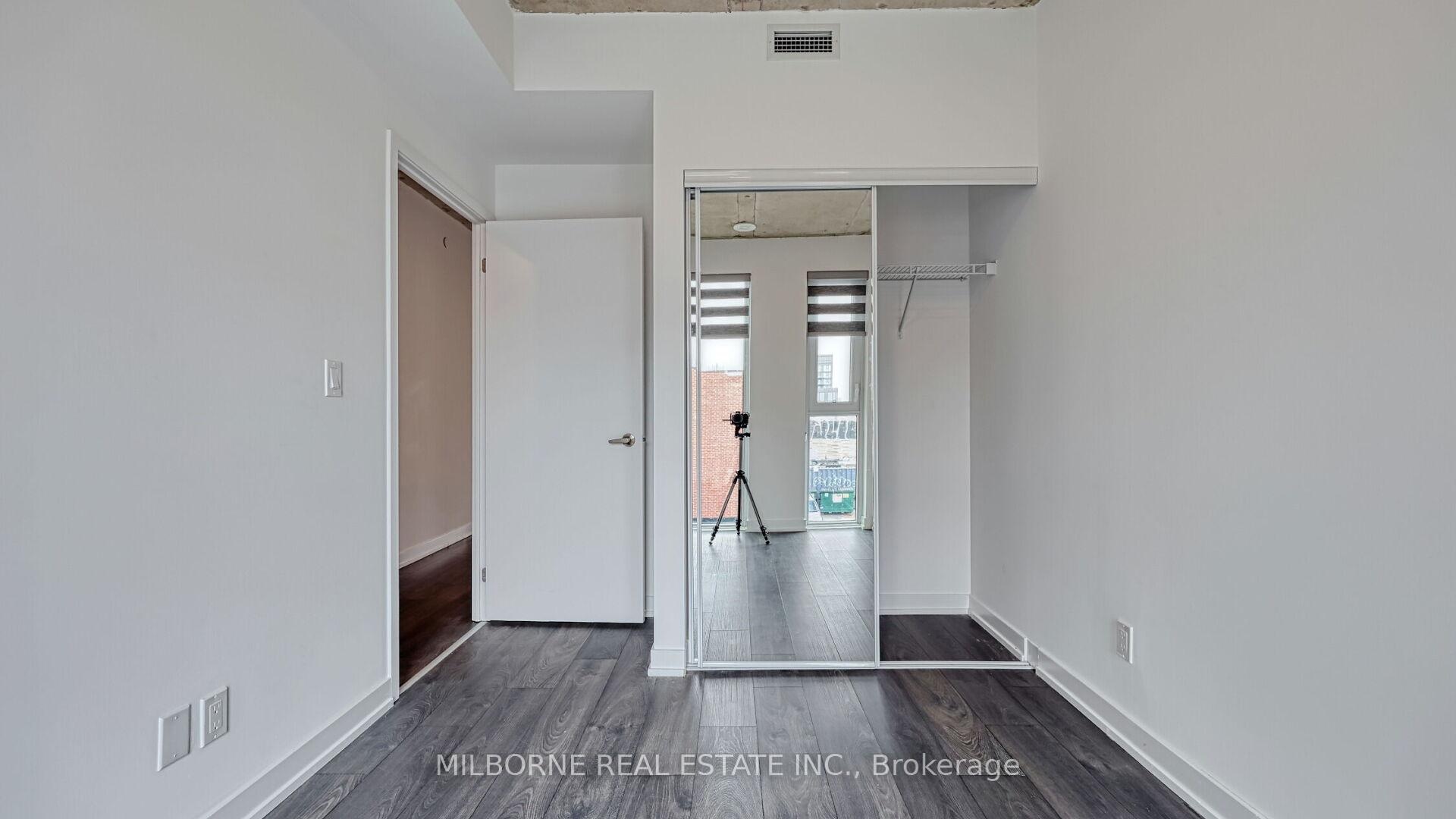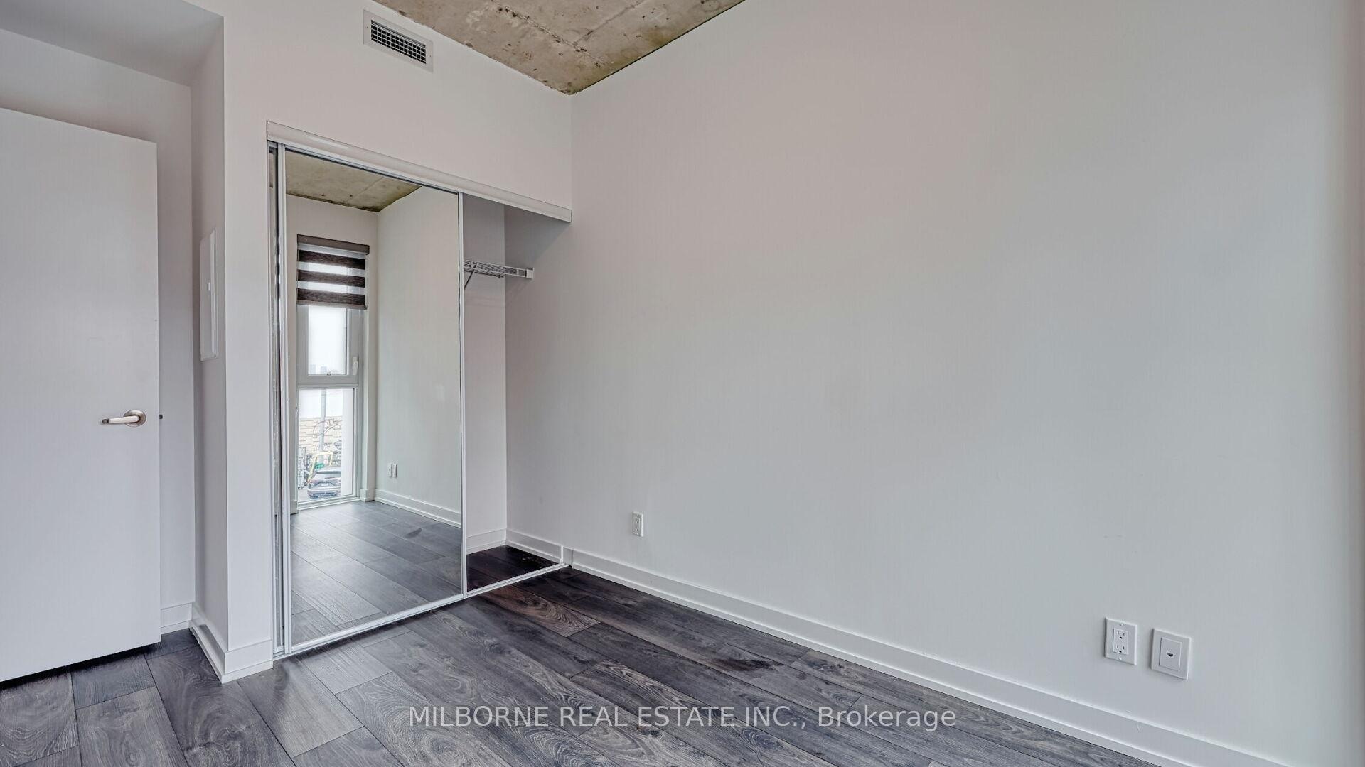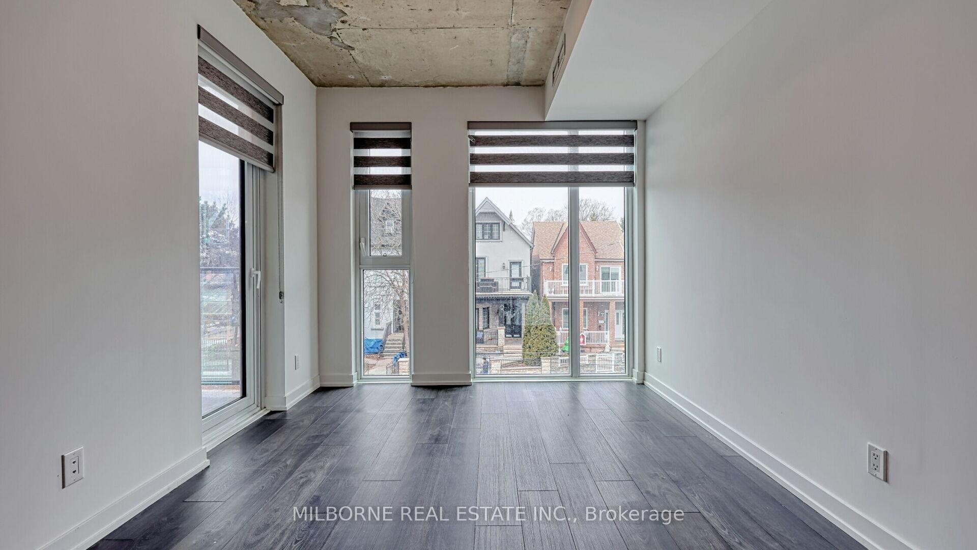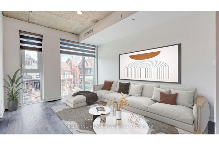 Premium two bedroom two bathroom residence offering refined light-filled interiors and quiet neighbourhood living. Positioned with east and west facing exposures overlooking a enclosed parkette, this home captures peaceful green views and abundant natural sunlight throughout the day. Steps from the energy of Toronto West End, this thoughtfully designed layout features floor to ceiling windows and exposed concrete ceilings, creating a modern loft inspired feel. Bright open concept living and dining areas flow seamlessly to a private balcony perfect for morning coffee or evening unwinding with tranquil park views The modern eat-in kitchen is designed for both style and function with sleek finishes, full-size appliances, and a central island ideal for entertaining or everyday living. The primary suite features his and hers closets and a spa inspired ensuite with glass enclosed shower, A well proportioned second bedroom offers flexibility for guests or a home office while the intelligent layout ensures both privacy and livability. This is a rare opportunity to own a residence finished to a high standard with no updates required offering turnkey luxury in a boutique setting. Located at 57 Brock, a low rise building with a limited collection of homes just minutes to King West Queen West Liberty Village and Trinity Bellwoods Park. Enjoy the unique advantage of condo living with access to premium amenities including fitness studio shared workspace and resident lounge. Pet friendly with transit score 100, walk score 93, and quick access to downtown and the Gardiner Expressway this home delivers a seamless blend of design convenience and lifestyle in one of Toronto most desirable neighbourhoods.