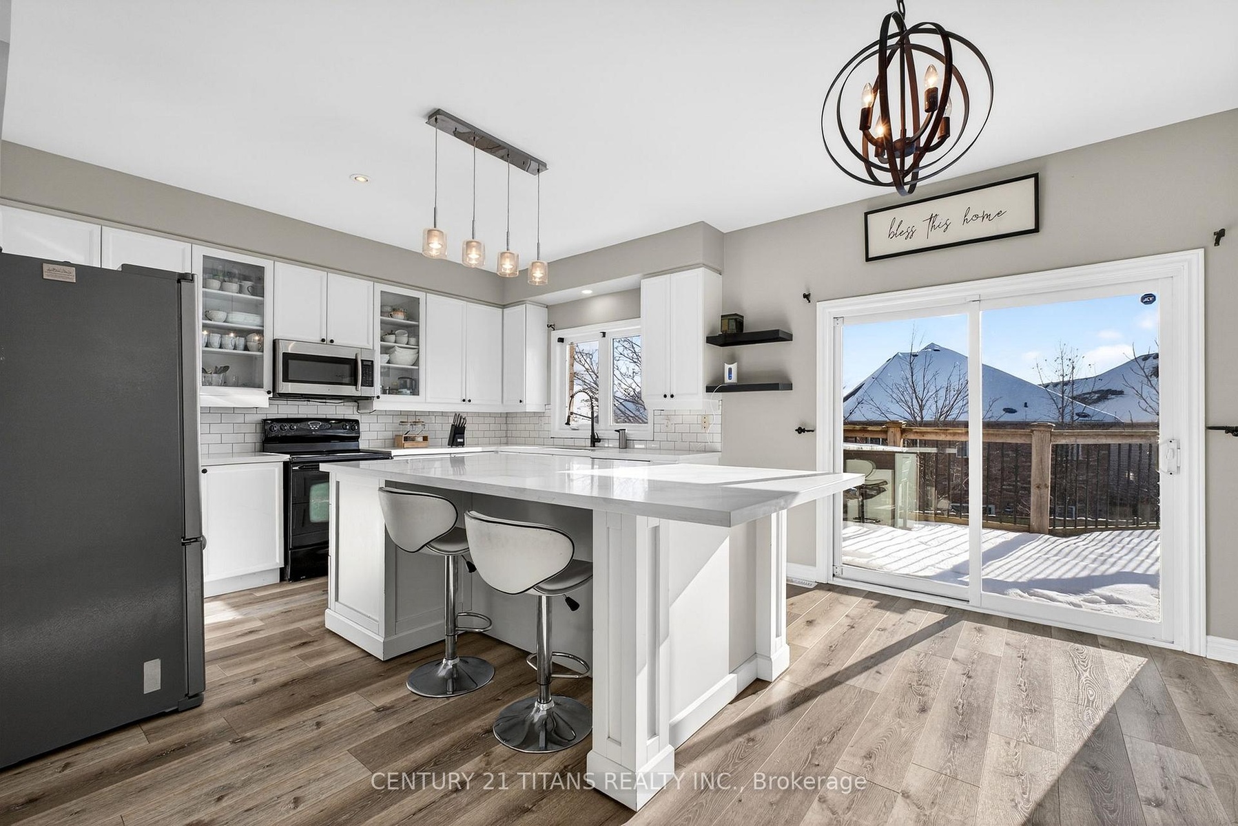 Gorgeous 4-bed, 4-bath home in the highly sought-after Taunton community, offering over 3,300 sqft. of spacious, thoughtfully designed living with plenty of natural lights. Walking distance to public schools, parks, and other amenities. Few minutes drive to Hwy 407, plazas, and restaurants. An oversized pie-shaped lot with a walk-out basement, A double-wide driveway, 2-car garage and charming covered porch. Inside, recently updated modern white kitchen with a massive island, seamlessly open to the family room. Two staircases lead to the second level, featuring four large bedrooms, two walk-in closets in two rooms, and specious loft-perfect for lounge or large gathering. An additional room on the main floor can be converted into the 5th room for senior or the private office.