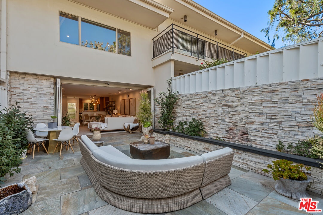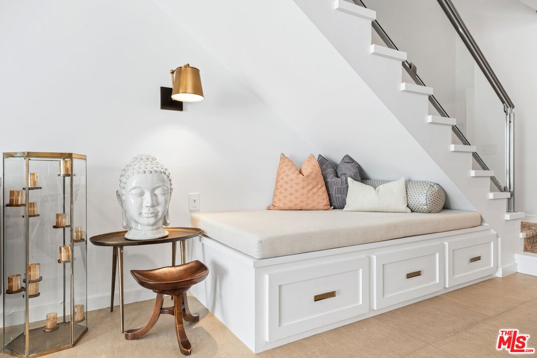 Step into this exquisite decorator done townhouse where luxurious design meets serene Zen inspired living. Thoughtfully curated with earthy finishes and sophisticated details throughout, this exceptional home offers an open floorplan that effortlessly blends indoor and outdoor living. A dramatic wall of bifold doors opens to the expansive private patio creating a seamless flow from the interior to a stunning outdoor retreat finished with natural stone and surrounded by mature landscaping. The result is a tranquil resort-like setting perfect for entertaining, relaxing, or everyday living. Every space has been intentionally designed with warmth and elegance. Rich textures, organic tones, and curated moments give the home a refined yet welcoming feel. Tucked beneath the stairs, a charming nook with daybed and custom built-ins offers a one-of-a-kind space for lounging or quiet reflection. There is a fabulous chef's kitchen with top of the line appliances and guest bathroom on the main level. Upstairs are two large ensuite bedrooms with built out closets, bathrooms with intricate tilework and elevated design, in unit washer dryer and plenty of storage. Located between the park and Barrington Court shops, this oasis sits in the middle of 4 landscaped acres with two pools, a private dog park and ample guest parking.