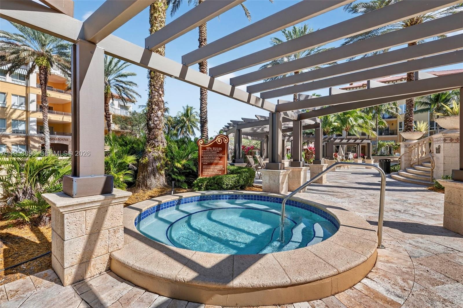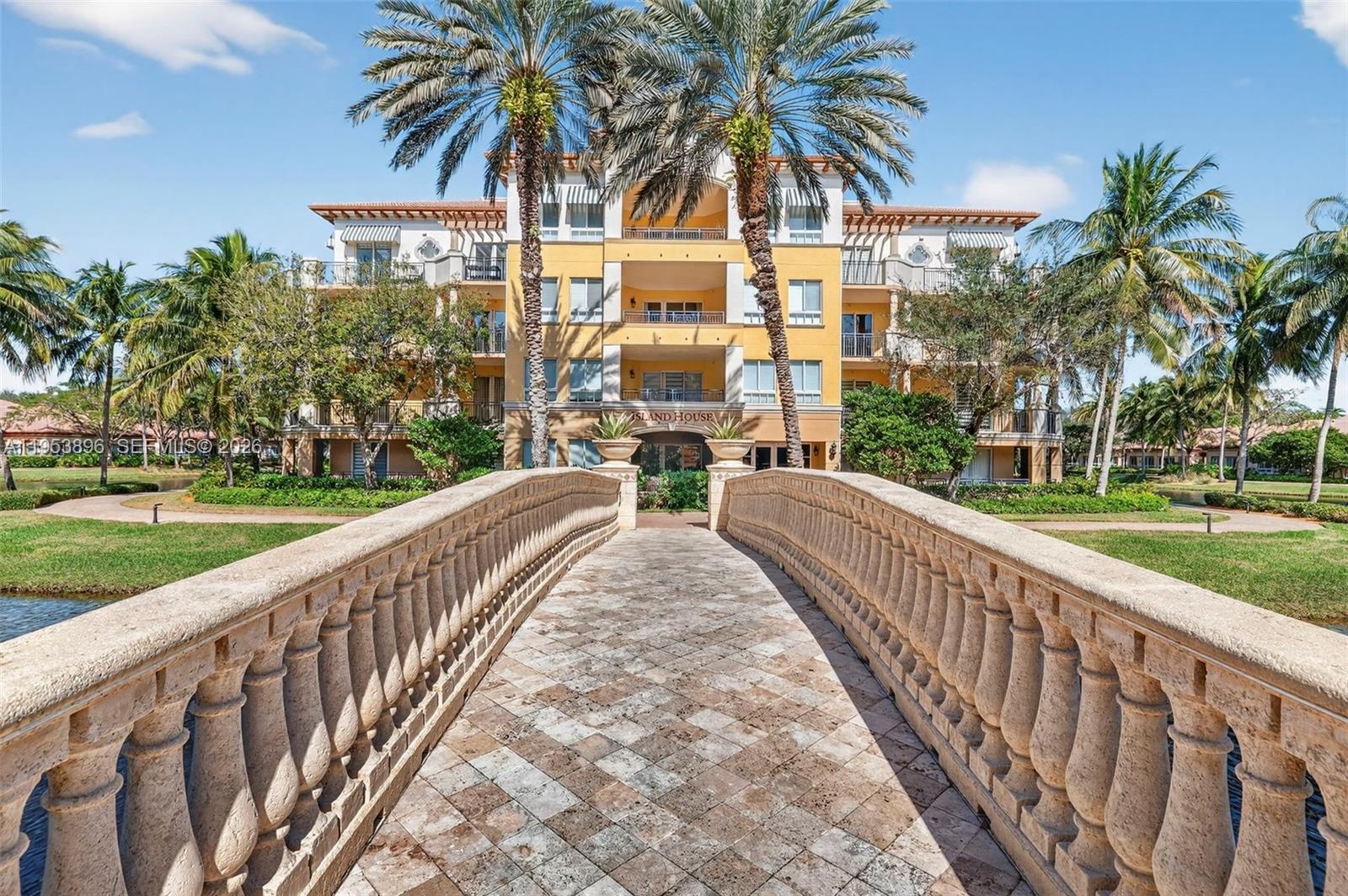 Welcome to this coveted first-floor corner residence in the highly sought-after, guard-gated 55+ community of Palms at Weston – Island House. This spacious 2-bedroom, 2.5-bath condo offers serene lake views and the rare convenience of its own private balcony gate with direct access to the pavered walking paths & resort-style amenities. Kitchen features wood cabinetry, new marble countertops & backsplash, new stainless-steel appliances, and a spacious eat-in area. Open layout showcases crown molding, recessed lighting, fresh paint, and neutral tile flooring throughout the main living areas, with new laminate flooring in both bedrooms. Impact glass windows and doors. The primary suite includes a walk-in closet w/ built-ins, double vanity, separate shower, and a relaxing jacuzzi tub. Additional highlights include a newer washer/dryer, water heater & A/C replaced in 2019. Enjoy luxury amenities including a resort-style pool and 2 spas, fitness center w/ sauna & steam room, clubhouse, library, beauty salon, on-site restaurant, concierge services, card room, complimentary valet and on-site health care agency. Maintenance fees include internet/cable, water, trash, and a $180 quarterly restaurant credit. An exceptional opportunity to enjoy comfort, convenience, and an active lifestyle in one of Weston’s premier communities. Fantastic location - close proximity to Cleveland Clinic, major highways, Publix & many restaurants.