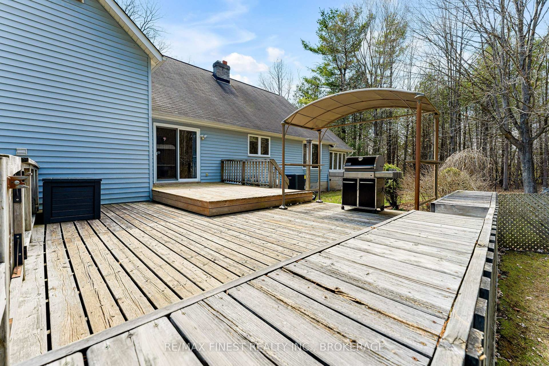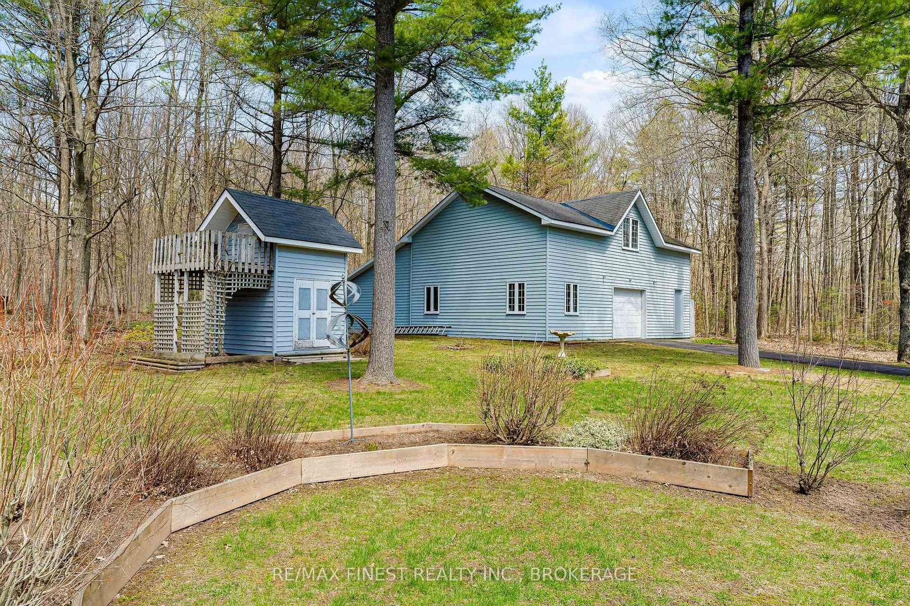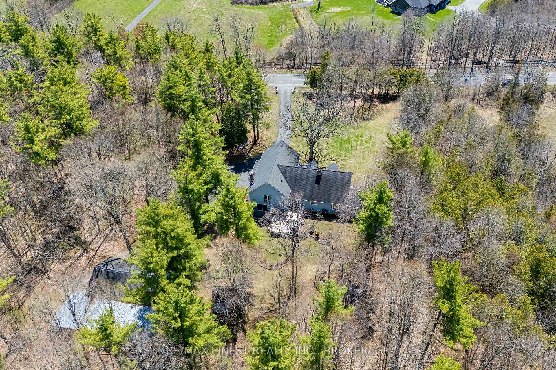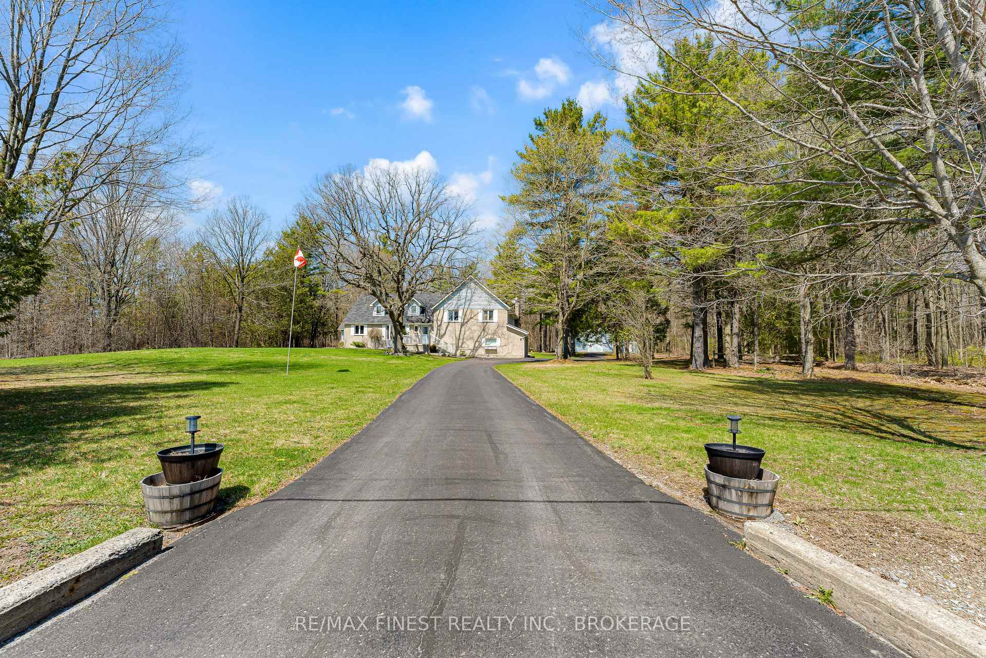 Set on 32.66 acres of private, forested land, this impressive detached split-level estate offers approximately 4185+ sq ft of versatile living space, combining privacy, comfort & convenience. Located on a quiet road 10 minutes to Highway 401 & Central Kingston, this property delivers refined country living with easy city access. The main floor is designed for both everyday living & entertaining, featuring an open-concept & dining nook, formal dining room, sunroom & a spacious living room highlighted by a decorative woodstove. A private office on this level offers flexibility as a potential fifth bedroom. Hardwood floors, abundant natural light & generous room sizes are found throughout. The second level includes three spacious bedrooms, including a large primary suite with walk-in closet & 4-pc ensuite. The third level offers exceptional flexibility with a large hobby room that could be converted into one or two additional bedrooms, along with a laundry room, storage room & another large bedroom. The lower level features a 2-pc bath & an above-grade rec/family room with woodstove, oversized windows & walk-out to the patio. An unfinished full basement provides extensive storage & houses all major systems, including a forced-air propane furnace & heat pump (2024), HRV, septic pump, sump pump & cold storage. Exterior features include a long paved driveway, oversized double attached garage & a standout 1,750+ sq ft heated workshop with 834 sq ft loft & storage. Outdoor living is enhanced by a two-tier deck, enclosed gazebo, shed with playhouse, and trails throughout the property, ideal for ATV-ing, snowmobiling, hunting, or exploring nature. Additional highlights include forced-air propane heating with heat pump for heating & cooling, a woodstove, large bedrooms, select newer windows with replacements recently completed, and exceptional privacy. An outstanding opportunity for luxury buyers or large families seeking space, seclusion, and proximity to Kingston.