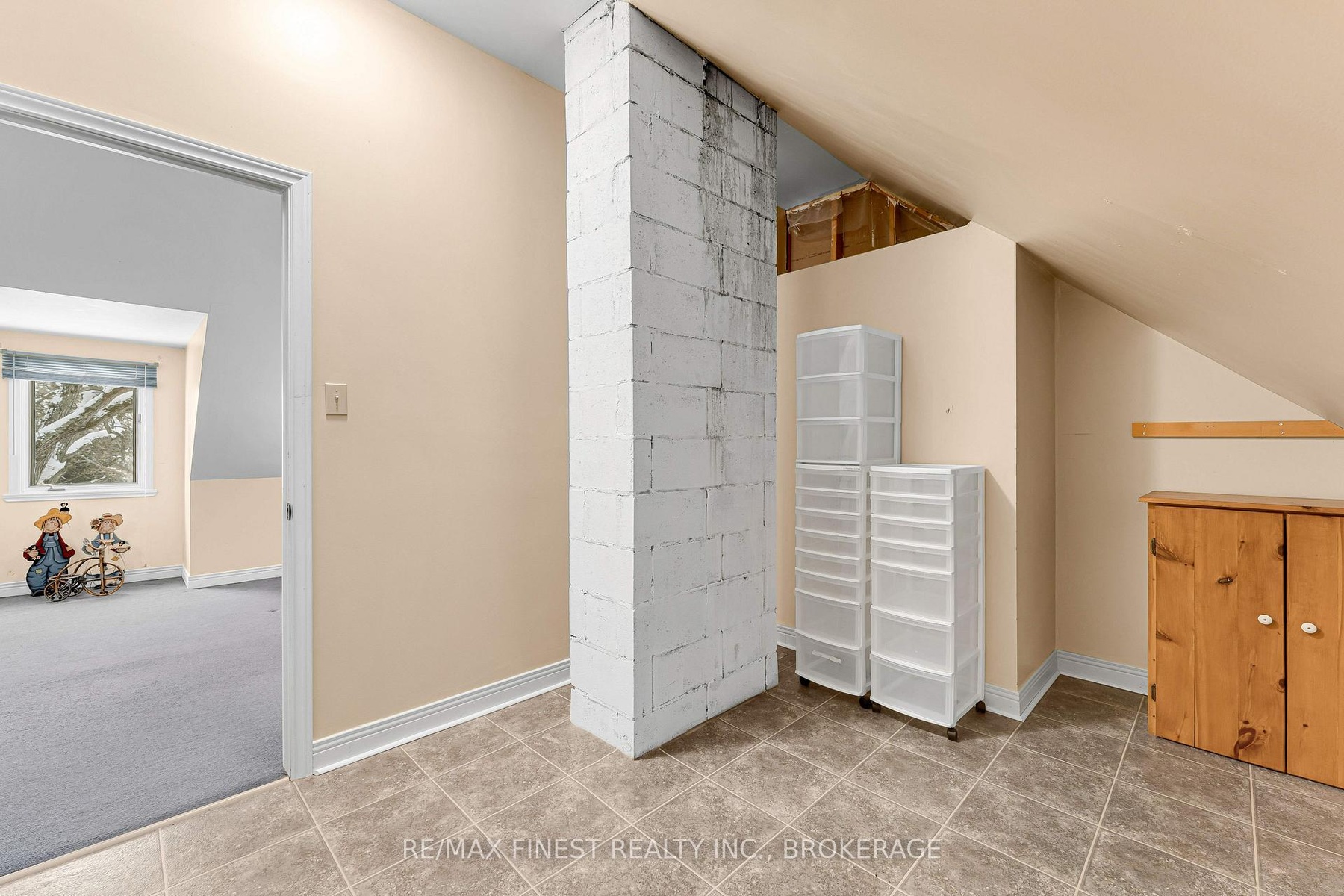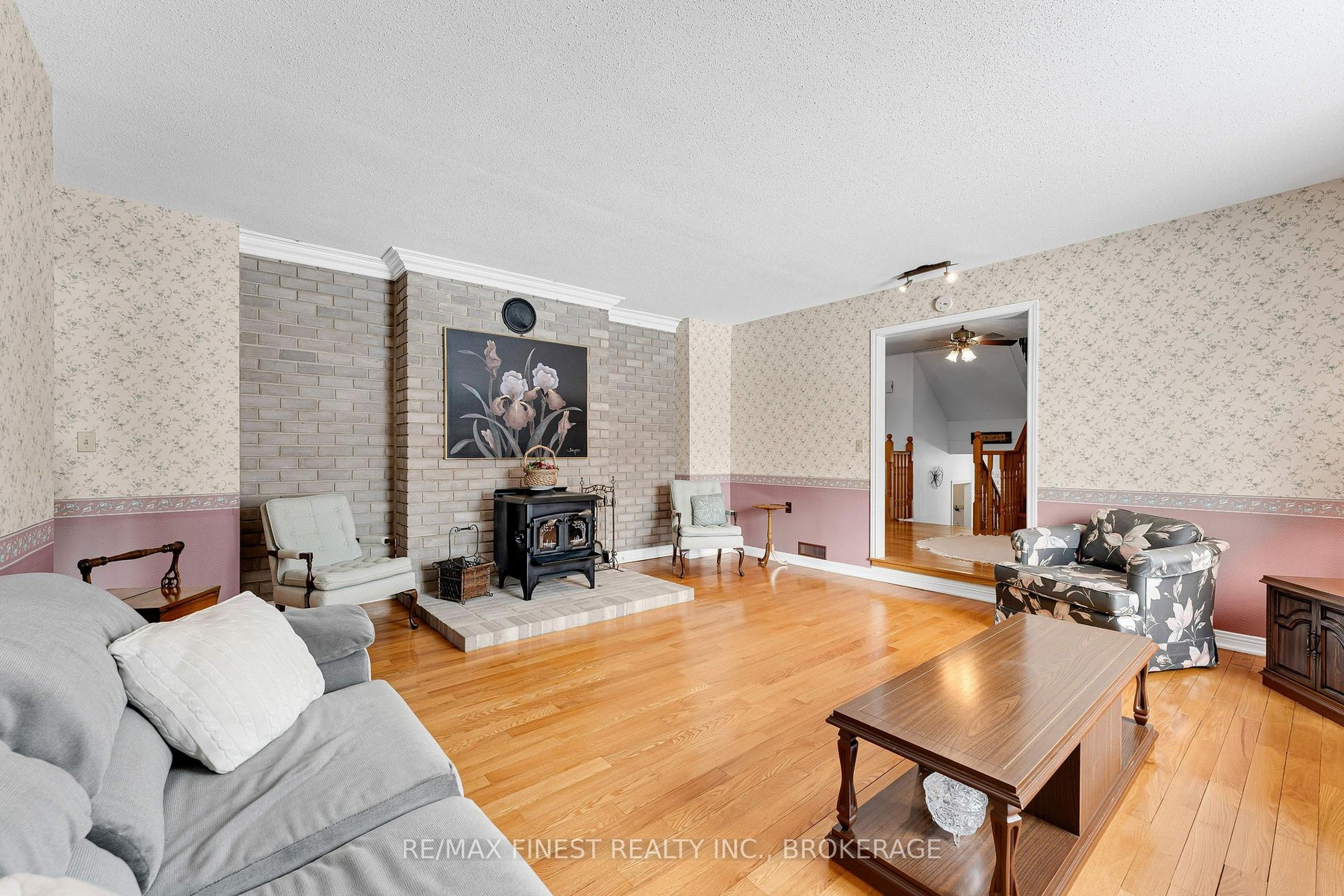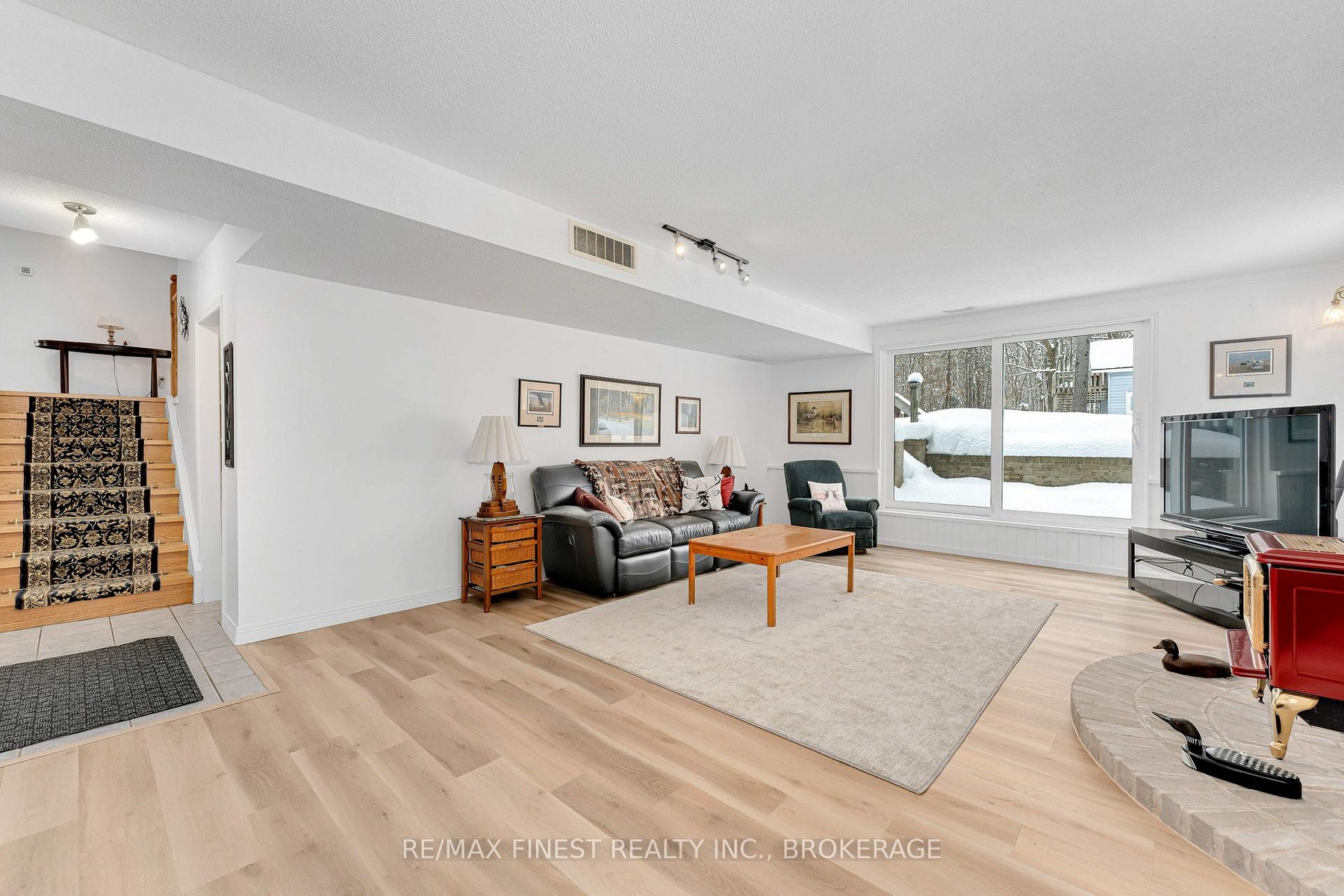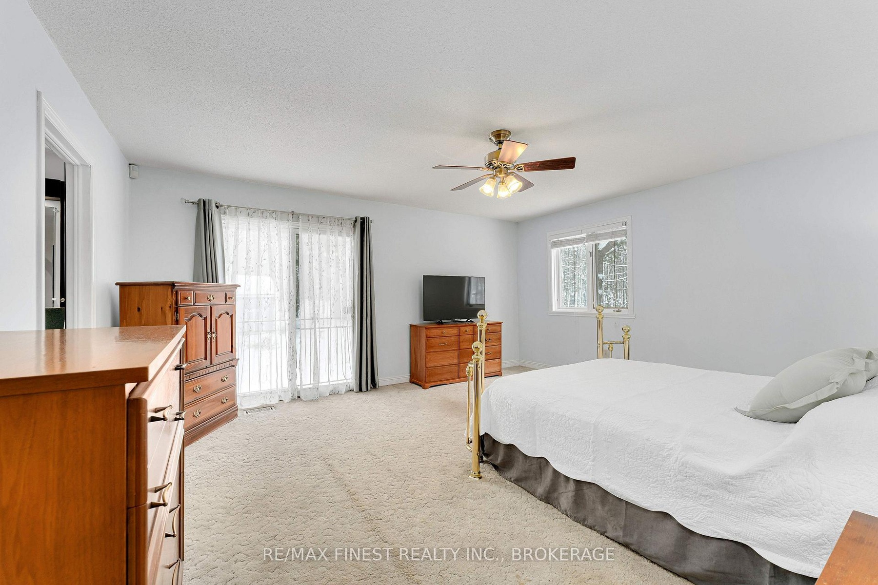 Set on 32.66 acres of private, forested land, this impressive detached split-level estate offers approximately 4185+ sq ft of versatile living space, combining privacy, comfort & convenience. Located on a quiet road 10 minutes to Highway 401 & Central Kingston, this property delivers refined country living with easy city access. The main floor is designed for both everyday living & entertaining, featuring an open-concept & dining nook, formal dining room, sunroom & a spacious living room highlighted by a decorative woodstove. A private office on this level offers flexibility as a potential fifth bedroom. Hardwood floors, abundant natural light & generous room sizes are found throughout. The second level includes three spacious bedrooms, including a large primary suite with walk-in closet & 4-pc ensuite. The third level offers exceptional flexibility with a large hobby room that could be converted into one or two additional bedrooms, along with a laundry room, storage room & another large bedroom. The lower level features a 2-pc bath & an above-grade rec/family room with woodstove, oversized windows & walk-out to the patio. An unfinished full basement provides extensive storage & houses all major systems, including a forced-air propane furnace & heat pump (2024), HRV, septic pump, sump pump & cold storage. Exterior features include a long paved driveway, oversized double attached garage & a standout 1,750+ sq ft heated workshop with 834 sq ft loft & storage. Outdoor living is enhanced by a two-tier deck, enclosed gazebo, shed with playhouse, and trails throughout the property, ideal for ATV-ing, snowmobiling, hunting, or exploring nature. Additional highlights include forced-air propane heating with heat pump for heating & cooling, a woodstove, large bedrooms, select newer windows with replacements recently completed, and exceptional privacy. An outstanding opportunity for luxury buyers or large families seeking space, seclusion, and proximity to Kingston.