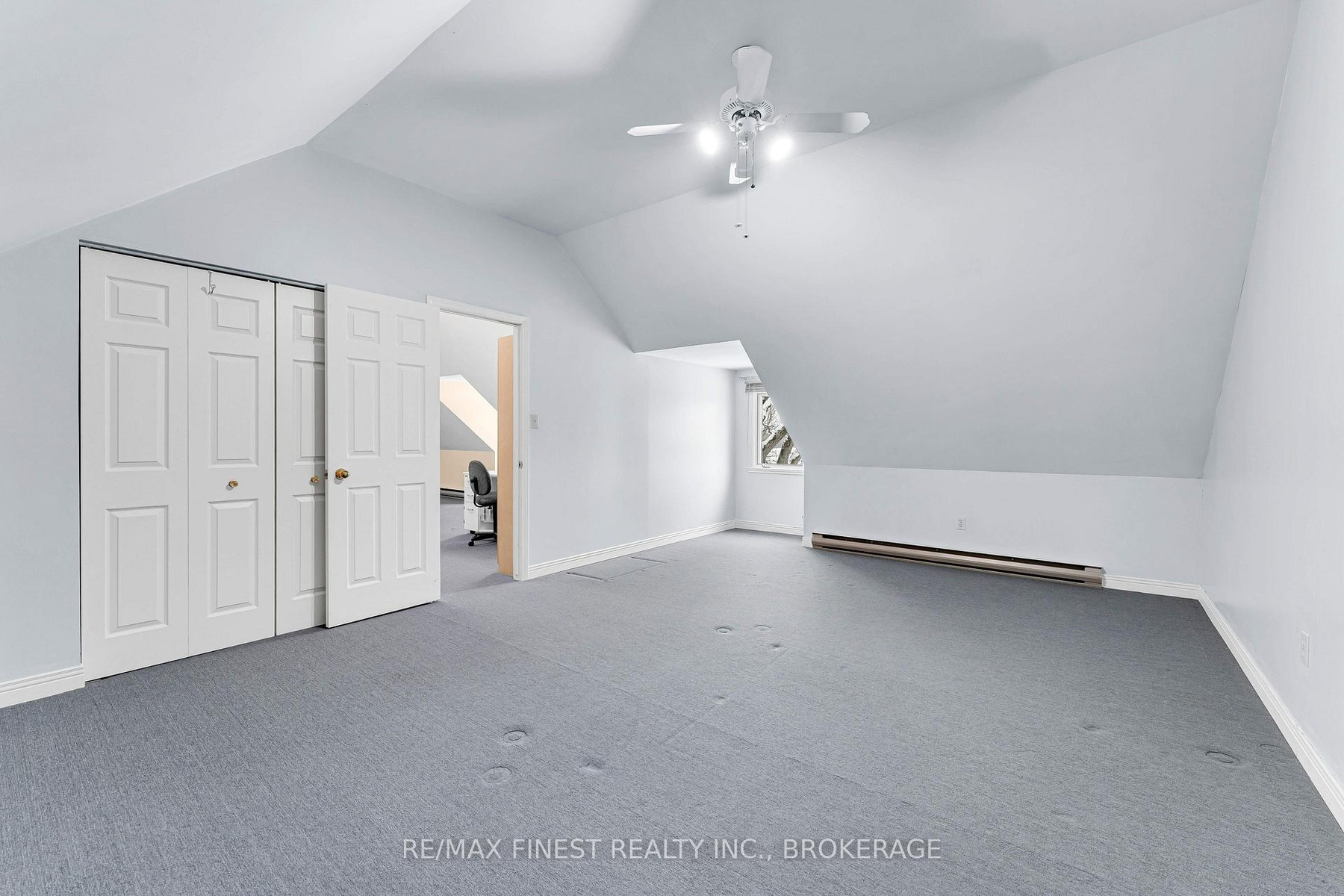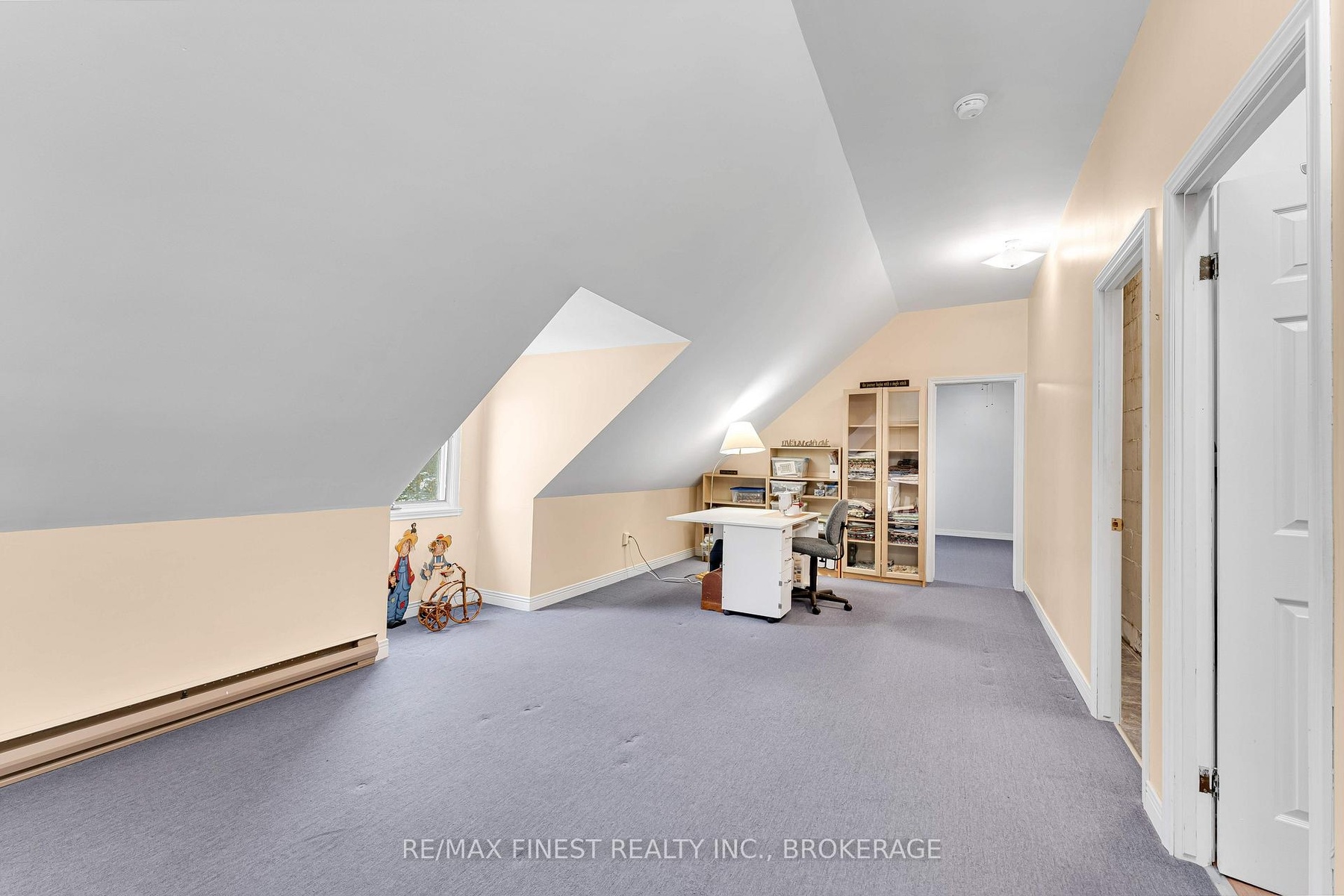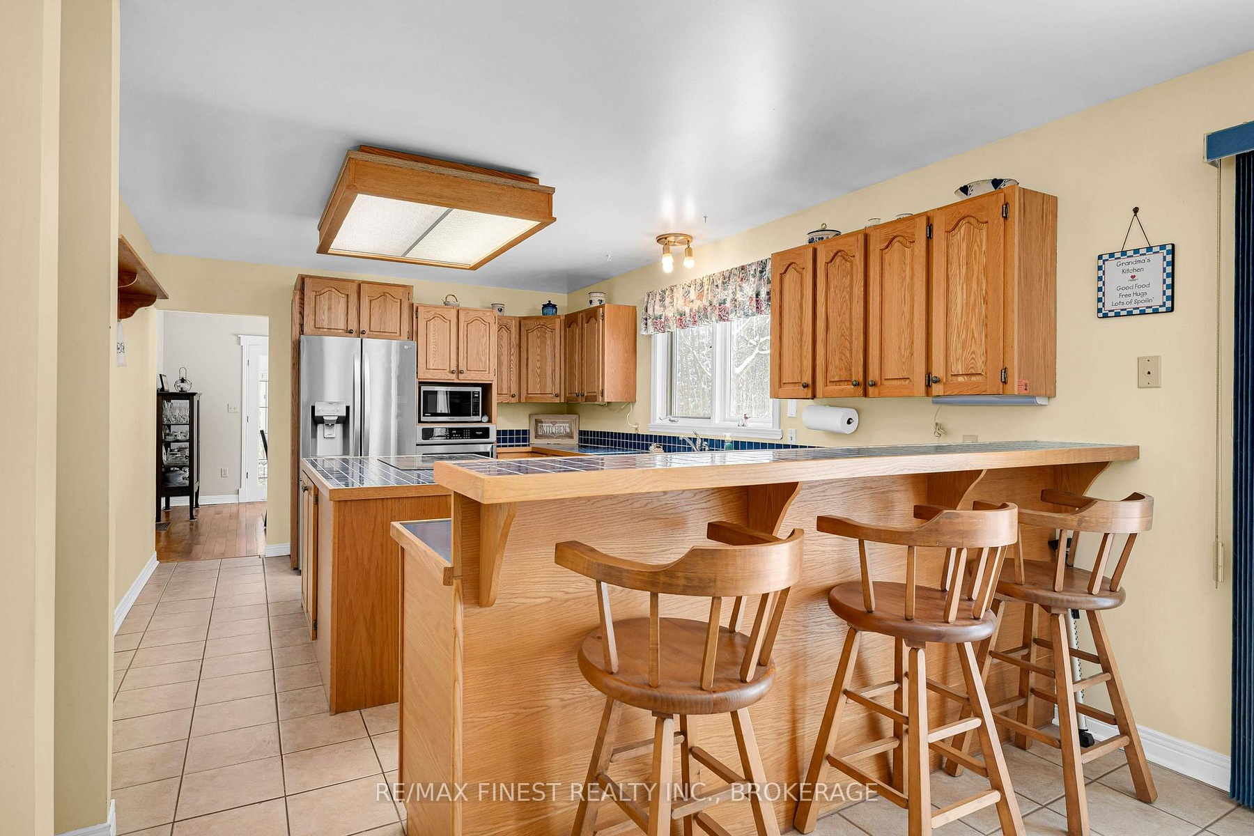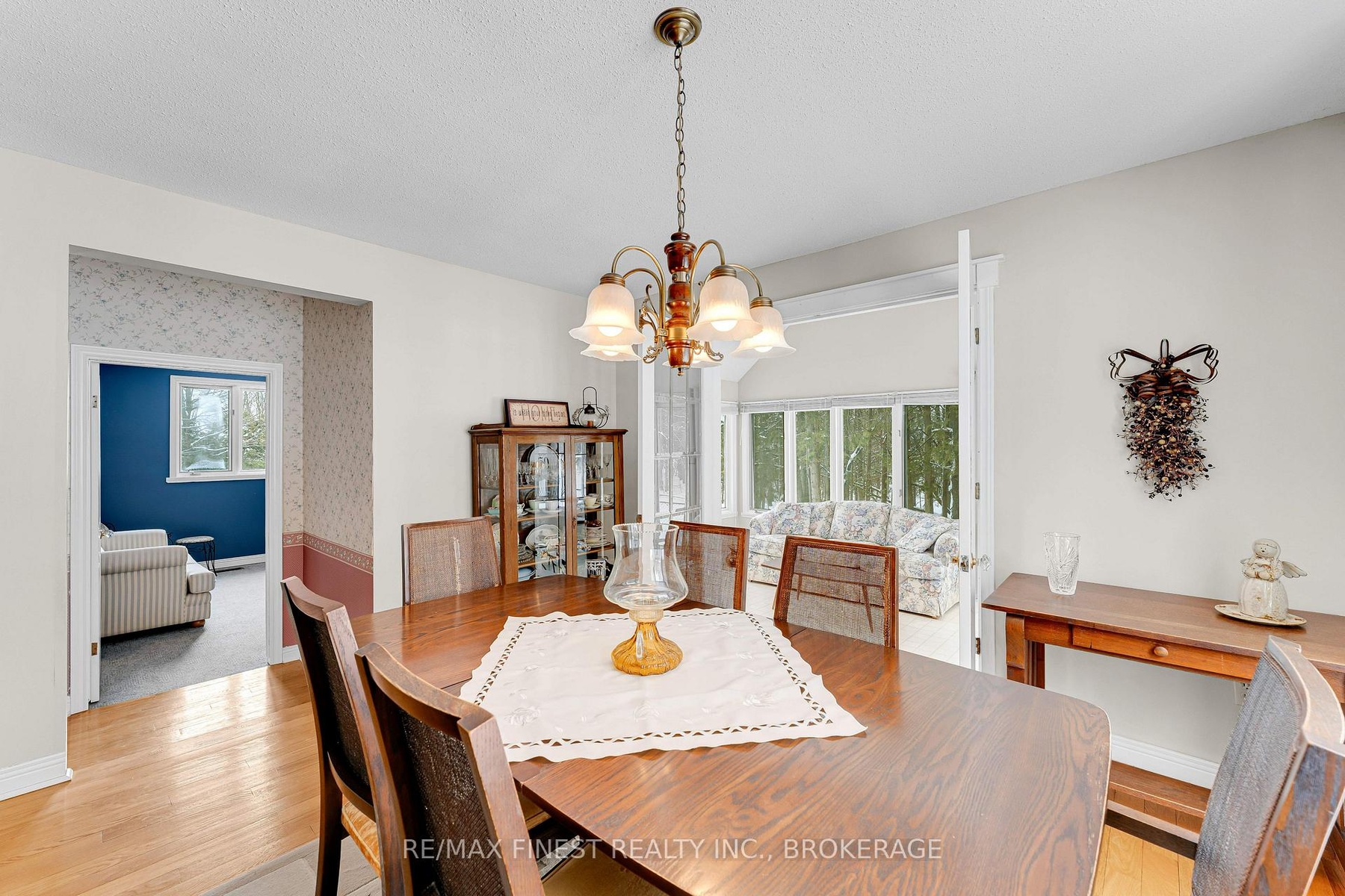 Set on 32.66 acres of private, forested land, this impressive detached split-level estate offers approximately 4185+ sq ft of versatile living space, combining privacy, comfort & convenience. Located on a quiet road 10 minutes to Highway 401 & Central Kingston, this property delivers refined country living with easy city access. The main floor is designed for both everyday living & entertaining, featuring an open-concept & dining nook, formal dining room, sunroom & a spacious living room highlighted by a decorative woodstove. A private office on this level offers flexibility as a potential fifth bedroom. Hardwood floors, abundant natural light & generous room sizes are found throughout. The second level includes three spacious bedrooms, including a large primary suite with walk-in closet & 4-pc ensuite. The third level offers exceptional flexibility with a large hobby room that could be converted into one or two additional bedrooms, along with a laundry room, storage room & another large bedroom. The lower level features a 2-pc bath & an above-grade rec/family room with woodstove, oversized windows & walk-out to the patio. An unfinished full basement provides extensive storage & houses all major systems, including a forced-air propane furnace & heat pump (2024), HRV, septic pump, sump pump & cold storage. Exterior features include a long paved driveway, oversized double attached garage & a standout 1,750+ sq ft heated workshop with 834 sq ft loft & storage. Outdoor living is enhanced by a two-tier deck, enclosed gazebo, shed with playhouse, and trails throughout the property, ideal for ATV-ing, snowmobiling, hunting, or exploring nature. Additional highlights include forced-air propane heating with heat pump for heating & cooling, a woodstove, large bedrooms, select newer windows with replacements recently completed, and exceptional privacy. An outstanding opportunity for luxury buyers or large families seeking space, seclusion, and proximity to Kingston.