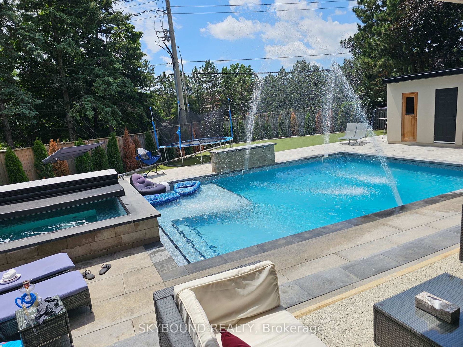 **Welcome to 2711 Spruce Needle Court in beautiful and mature area of Erin Mills.** This stunning home offers over 4,000 sq. ft. of bright, open living space designed for modern families. With high ceilings, oversized windows, hardwood floors, and luxurious tile throughout, every room feels light and airy. The open-concept main floor is perfect for daily life. The chef's kitchen features new appliances, white cabinetry, quartz counters, and an oversized breakfast island. A separate dining room with a servery makes formal entertaining easy. The family room boasts floor-to-ceiling sliding doors that open completely to the backyard, creating a seamless indoor-outdoor flow. Upstairs, the primary suite is a true retreat: a large master bedroom with an electric fireplace, custom built-in bed with decorated wall designs, dual walk-in closets, and a spa-inspired 5-piece ensuite with a glass shower and freestanding tub overlooking the backyard and pool. Four more generous bedrooms include one with its own 4-piece ensuite and walk-in closet. A second-floor laundry adds convenience. The 5+1 bedrooms, finished basement, 5.5 baths, and attached garage with mudroom complete the interior. New roofing and furnace and A/C (2025).**Your private backyard resort** sits on a fully fenced 60' x 50' backyard. Enjoy a large saltwater pool (controller automated, with waterfalls and convertible fountain jets), a custom saltwater hot tub and a rare electric custom sauna both that you can use year round, a pool cabana with a games room, and a 3-piece bath. A smart robot keeps the pool clean effortlessly. A unique outdoor patio is covered, waterproofed and includes a kitchen, a gas stove, gas fire table, and fan. Plus, high-quality synthetic turf for soccer or golf for added entertainment. All this in a quiet court location, close to a sports complex, shopping, dining, and major highways within the vicinity. This isn't just a normal house, it's where family and friend memories are made.