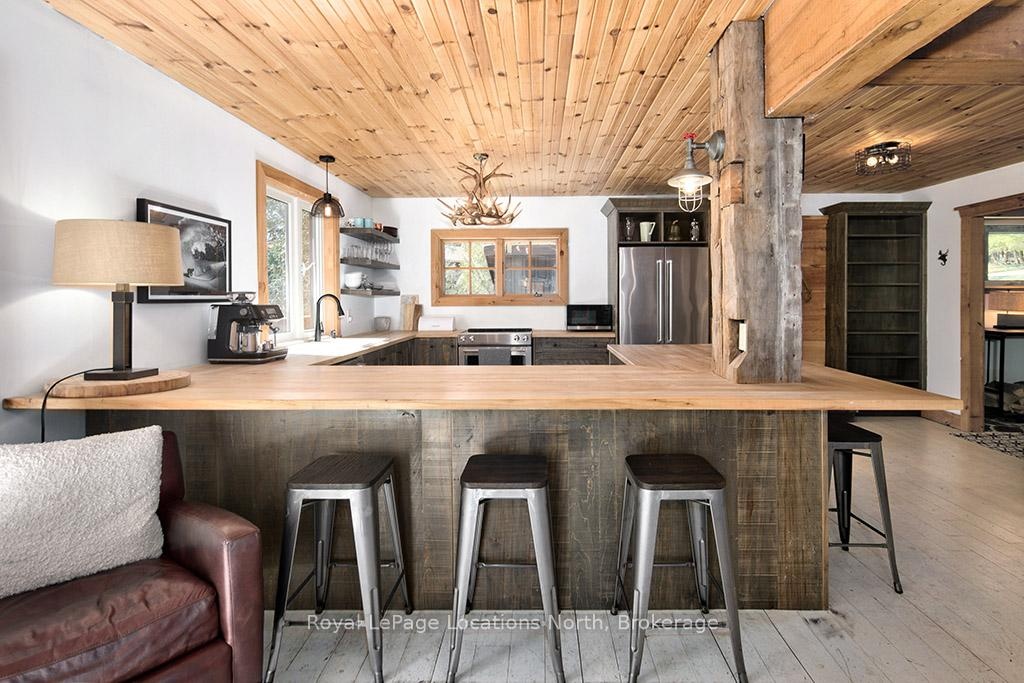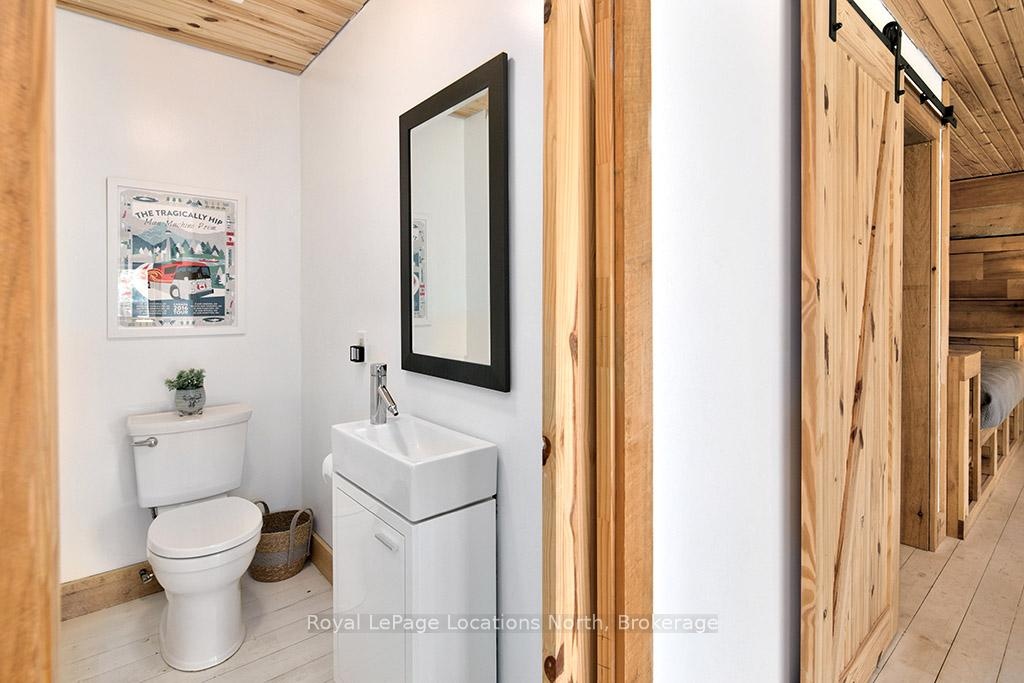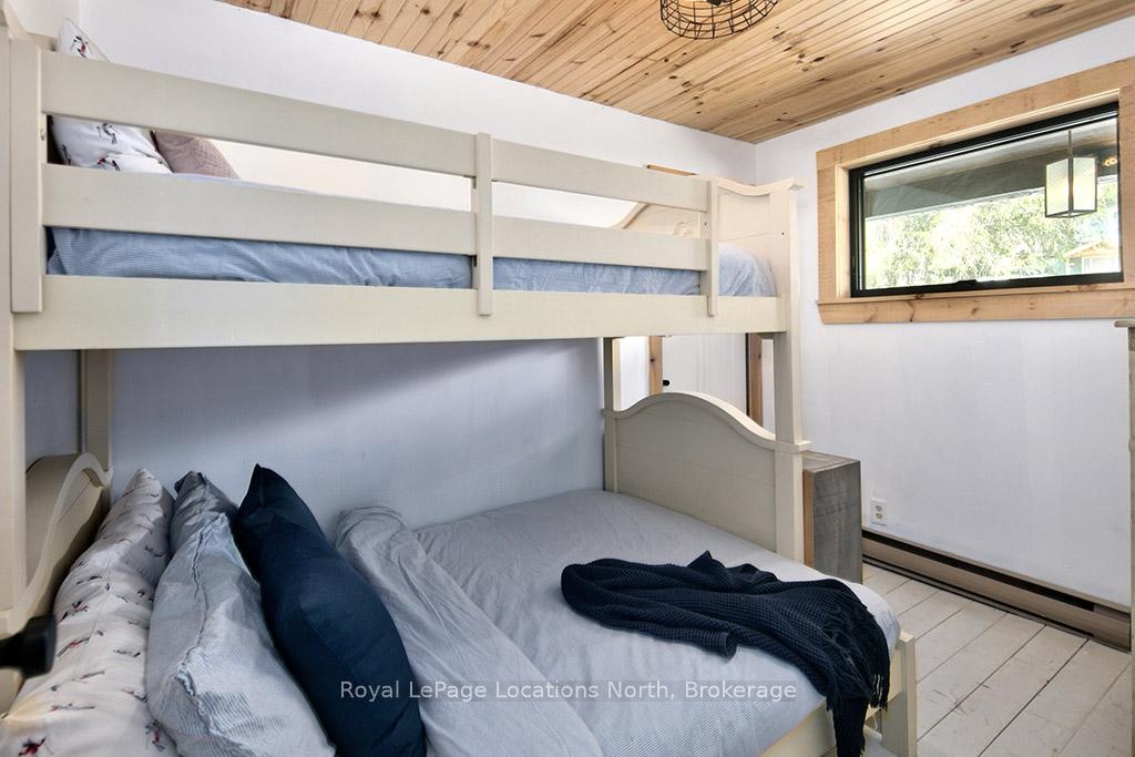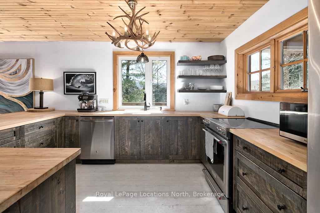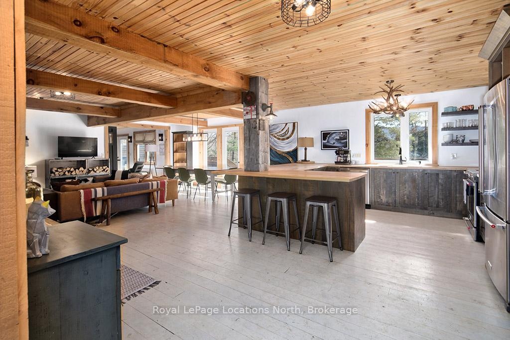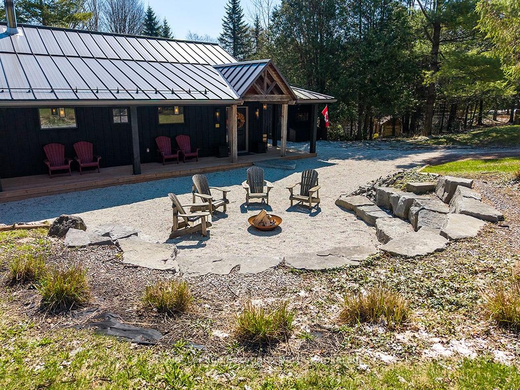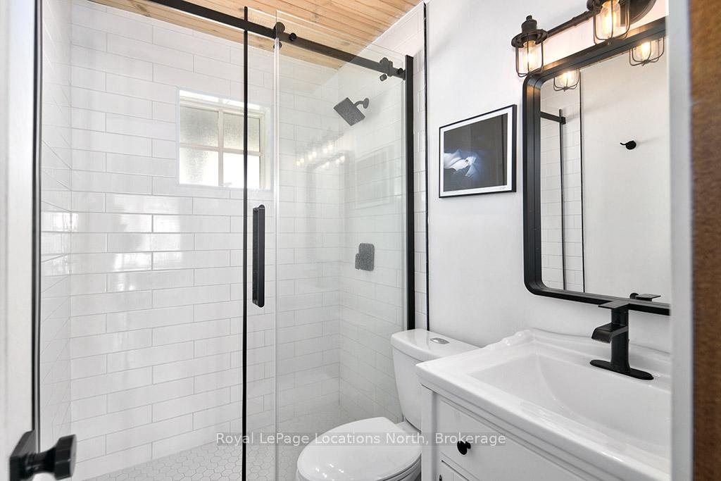 Welcome to 105 Wodehouse Court, a sophisticated ranch-style bungalow that perfectly balances modern designer living with soul-warming cabin comfort. Located on a private half-acre lot just minutes from the Beaver Valley Ski Club, this home makes a striking first impression with its black board-and-batten exterior and expansive wrap-around porch. Inside, the heart of the home is a sprawling open-concept living area where massive exposed beams and wood-plank ceilings frame a stunning floor-to-ceiling stone fireplace. The layout is thoughtfully designed for both connection and the ability to separate into unique zones if necessary, providing a seamless transition between social gatherings and quiet privacy. Whether you are hosting a dinner party in the designer kitchen with its live-edge accents or enjoying a slow morning by the fire, the home adapts to your lifestyle. To ensure total comfort, the foyer and bathrooms feature radiant heated flooring, offering a warm welcome after a day in the snow. The primary suite serves as a dedicated sanctuary, highlighted by a breathtaking ensuite bathroom. Here, a deep, sculptural freestanding soaker tub sits as a centerpiece against rugged flagstone flooring and natural wood walls, offering the ultimate spa-like escape to recharge. With three bedrooms and three bathrooms in total, there is ample space for family and friends to find their own corner of calm. Living here is entirely effortless. The property is being sold absolutely turnkey with all high-end furniture and curated decor included. For the outdoor enthusiast, a separate dedicated shed serves as a professional-grade gear hub for storage and ski tuning. Combined with the rare convenience of municipal water and sewer, this property offers a low-maintenance, high-style retreat in the heart of the Valley. Just pack your bags, grab your skis, and welcome home.