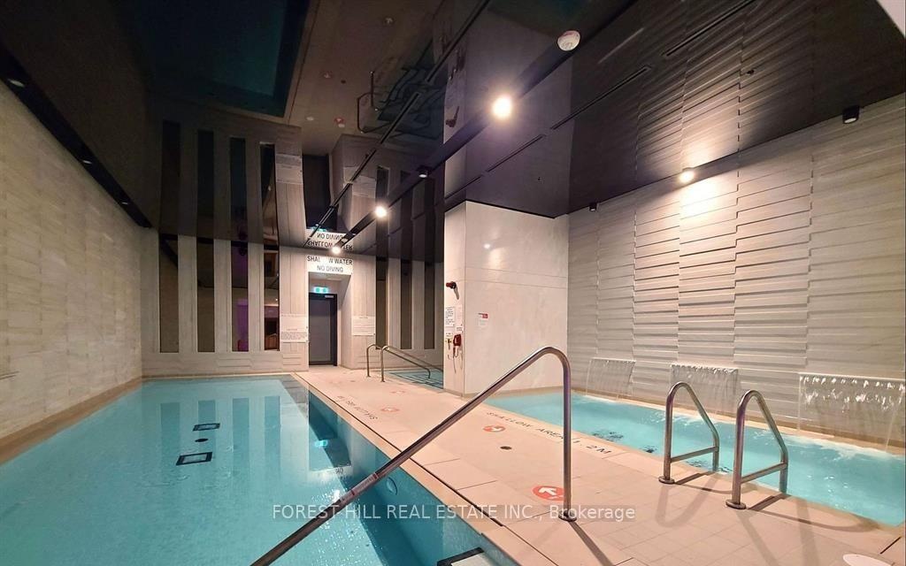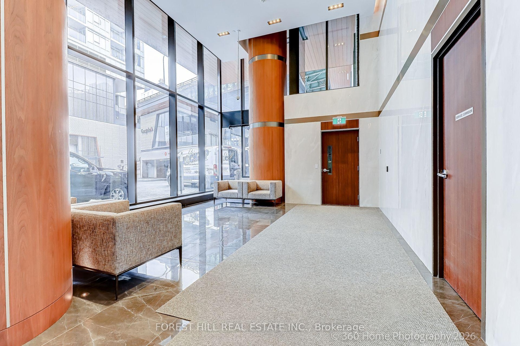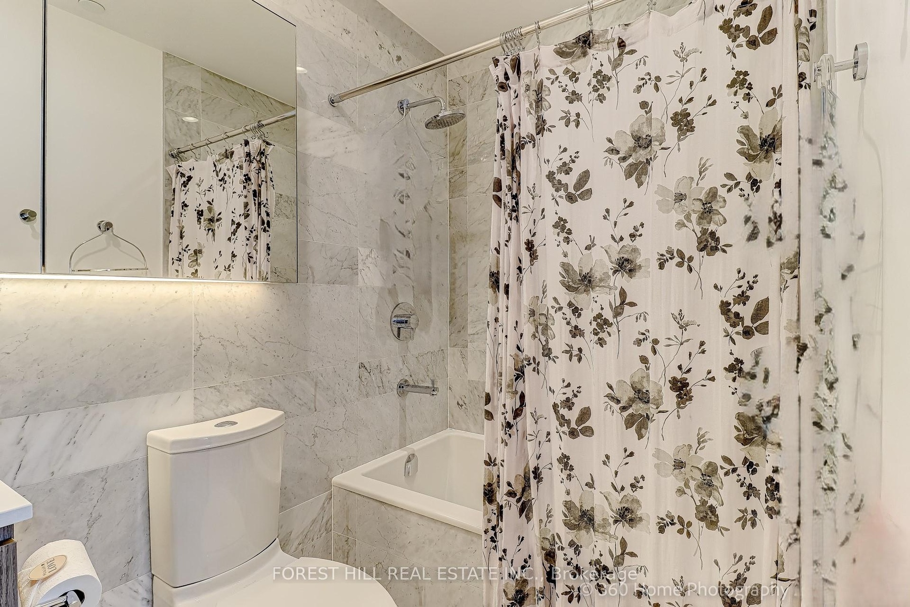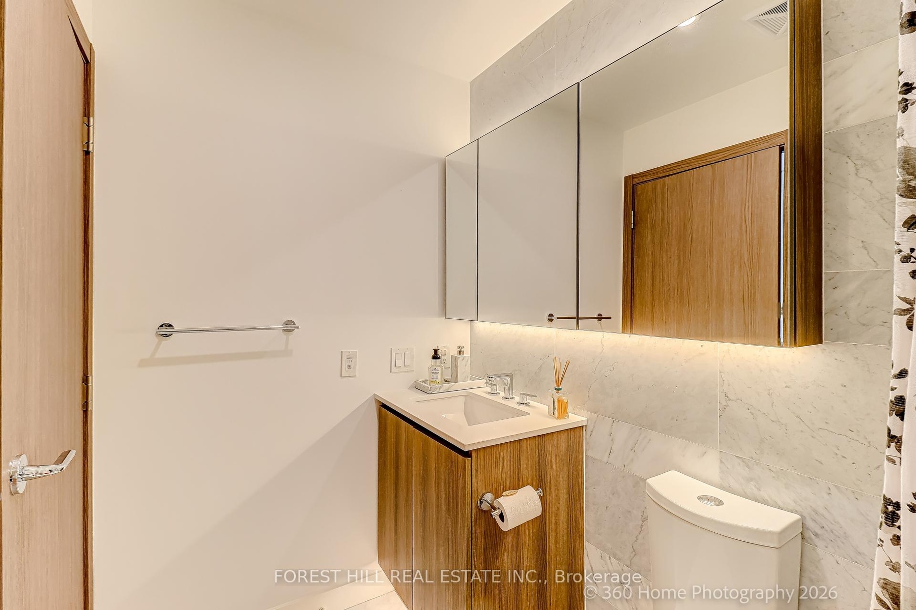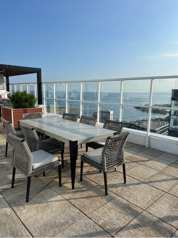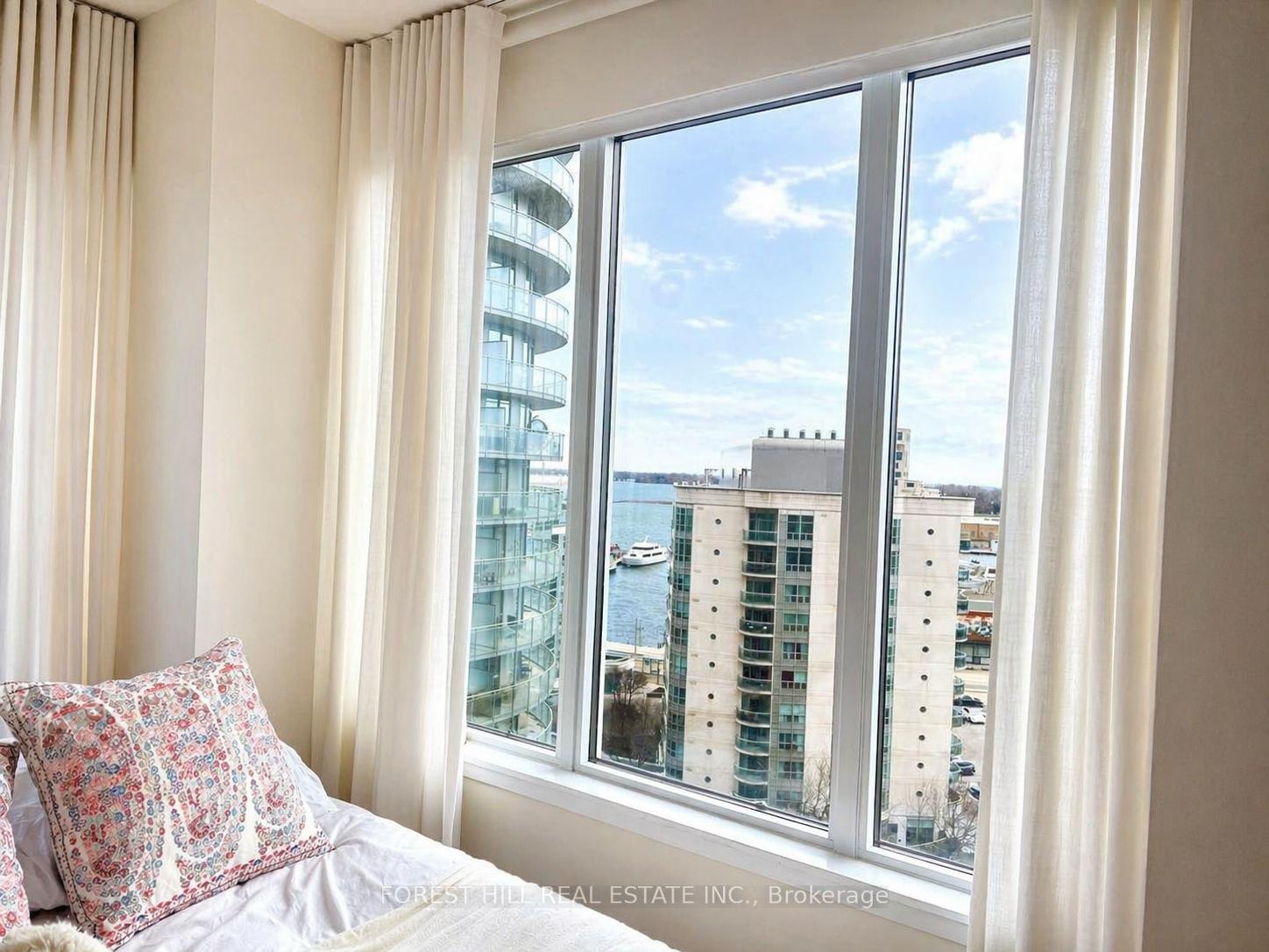 Welcome to elevated waterfront living at The Lakefront Condo -where modern luxury meets unbeatable downtown convenience in the heart of Toronto. This stunning south-east facing suite is filled with natural light and showcases unobstructed views of the iconic CN Tower and city skyline from both east-facing bedrooms, along with serene partial views of Lake Ontario. Meticulously upgraded throughout, the suite features engineered hardwood flooring, a sleek open-concept layout, and a designer kitchen with quartz countertops, marble backsplash, custom cabinetry with built-in organizers, and integrated stainless-steel appliances. The spa-inspired bathroom offers marble tile finishes, a modern woodgrain vanity with soft-close hardware, Kohler sink, and Grohe fixtures, delivering a refined, hotel-like experience. Additional upgrades include a custom stone feature wall, Hunter Douglas blackout roller shades, custom drapery, and in-suite stacked front-load laundry. Soaring 9-foot ceilings (excluding bathroom) enhance volume and sophistication. Includes 1 parking space and 1 locker. Residents enjoy a full suite of luxury amenities: fitness centre, rooftop terrace with panoramic views, elegant lounge, party and meeting rooms, guest suites, karaoke room, children's playroom, and pet spa-offering a complete lifestyle experience, not just a home. Perfectly located steps to TTC access, waterfront trails, parks, dining, and downtown core amenities, this turnkey residence is ideal for end-users and investors seeking strong value in a premier waterfront community.
