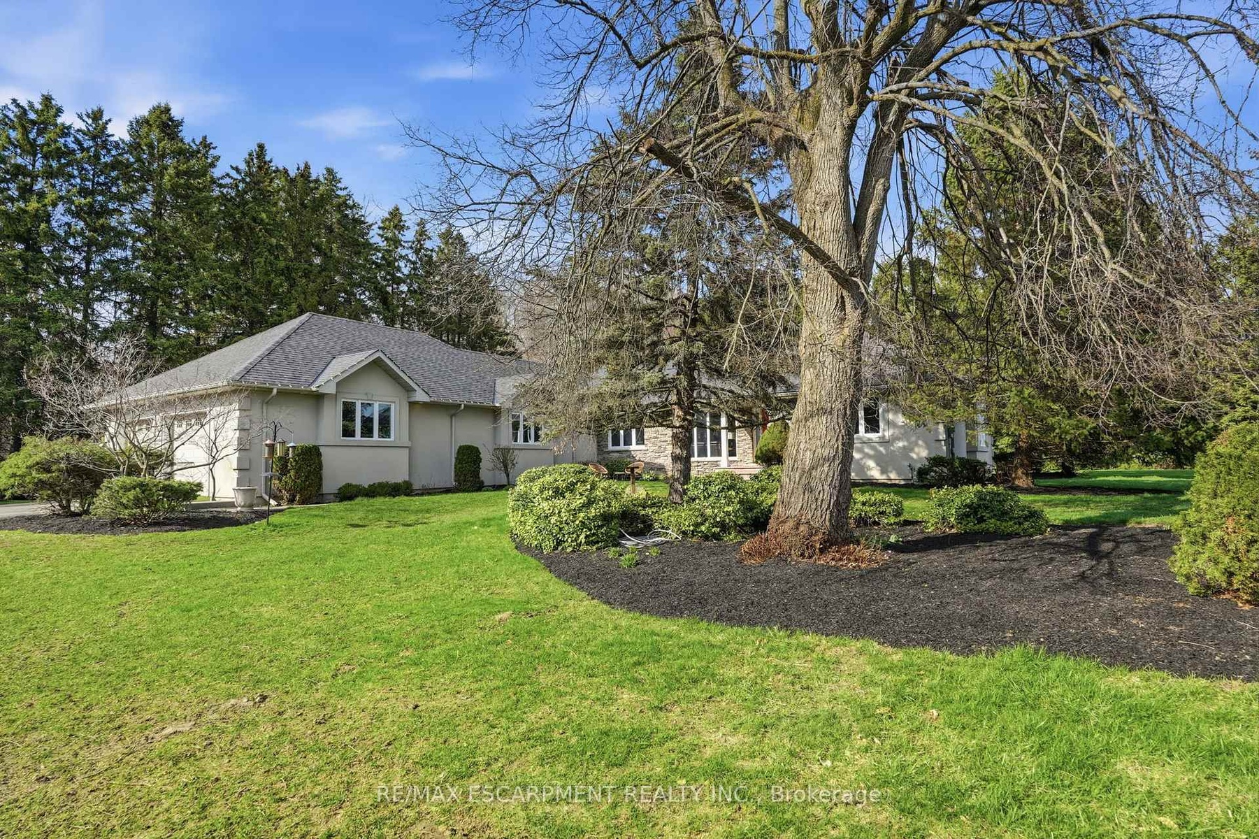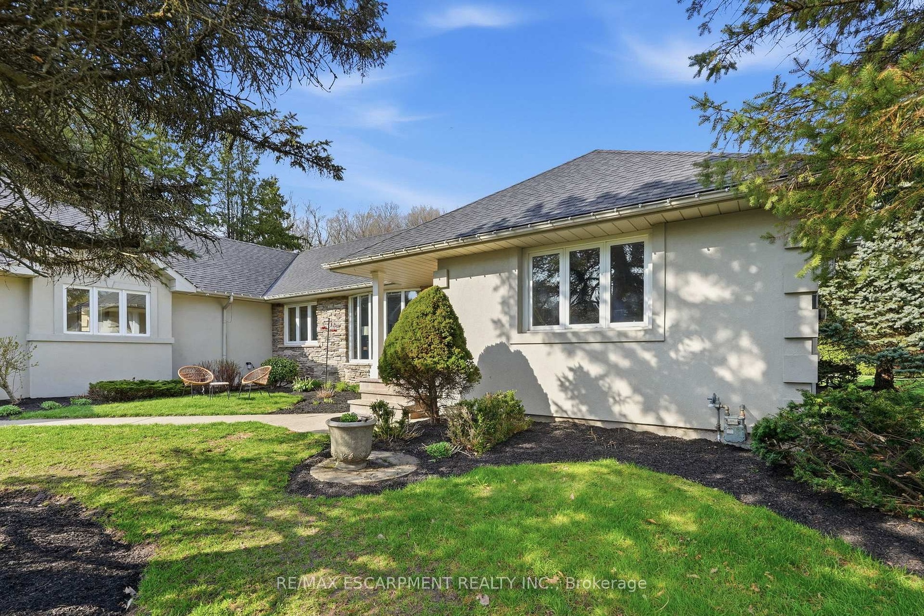 Set on a private one-acre lot just six minutes from the heart of Waterdown, this 2500+ square foot custom built bungalow offers an ideal combination of space, comfort and versatility. With four-plus-one bedrooms total, the property is well suited for families, downsizers or multi-generational living. The main home is warm and inviting, featuring an updated kitchen, cozy gas fireplace, abundant natural light, renovated bathrooms and stylish new flooring, creating a seamless blend of modern finishes and rural charm. The spacious primary suite is a true retreat, complete with a walk-in closet, private ensuite and walkout to a secluded hot tub area-offering a quiet space to relax and unwind. Outside, the expansive lot provides exceptional privacy surrounded by nature, making it ideal for entertaining, gardening or enjoying peaceful country living. A rare and highly valuable feature is the fully self-sufficient 800 square foot, one-and-a-half storey detached ADU. It includes a functional main level with full kitchen plus a large bedroom with a four-piece bathroom, private laundry and carport. This thoughtfully designed space offers complete independence for extended family or guests, while keeping everyone close - delivering the best of both worlds. Don't be TOO LATE*! *REG TM