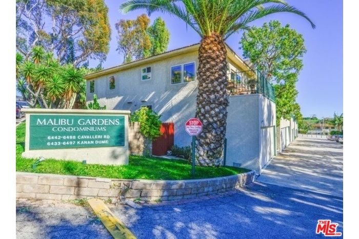 Malibu Gardens Townhouse in park like setting. 2 car garage with direct access to hardwood floor entry. 2 bedrooms, bath, laundry and enclosed patio on ground level. Up spiral stairs to remodeled kitchen with balcony, dining area, living room with fireplace and deck with ocean and treetop views. Plus primary bedroom with walk-in closet. Laundry in unit. Great Pool. Close to shopping, the beach and schools.