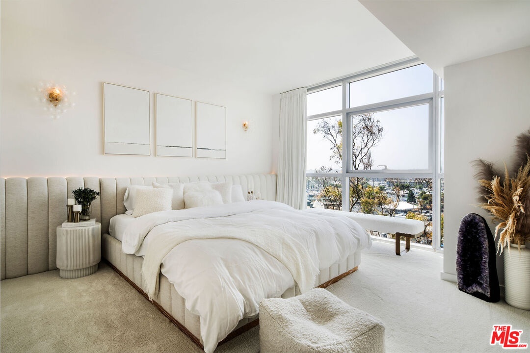 Discover luxury living in this beautifully renovated 7th-floor unit at the prestigious Azzurra. This exquisite 2-bedroom, 2-bathroom residence boasts unparalleled 180-degree direct Marina and Ocean views. The recent top-to-bottom renovation features high-end upgrades everywhere you look: beautiful hardwood floors, plush carpet in the bedrooms, sleek white countertops, custom cabinets throughout, all new appliances, brand new luxury fixtures, opulent stones and tiles in the bathrooms new lighting and light fixtures, luxurious draperies, elegant moldings throughout, custom built in closets and custom built-in headboard in the primary bedroom and the list goes on! This sophisticated home also offers an open floor plan with almost 9-foot floor-to-ceiling glass complete privacy, abundance of natural light, stunning sunsets year-round, 2 parking spots, new washer and dryer in unit and two zone heating and cooling with Nest Thermostats. HOA dues include cable, internet, water, trash, and earthquake insurance, along with access to an unparalleled collection of resort-style amenities: 24-hour valet for guests, full-service front desk and security, rooftop spa and sky lounge, heated pool and spa with private cabanas, media lounge, curated art collection, and expansive indoor/outdoor fitness centers with dedicated yoga and Pilates studio. Ideally located just minutes from world-famous beaches, renowned dining and shopping, scenic bike paths, theaters, dog parks, and LAX. This is elevated coastal living at its finest.