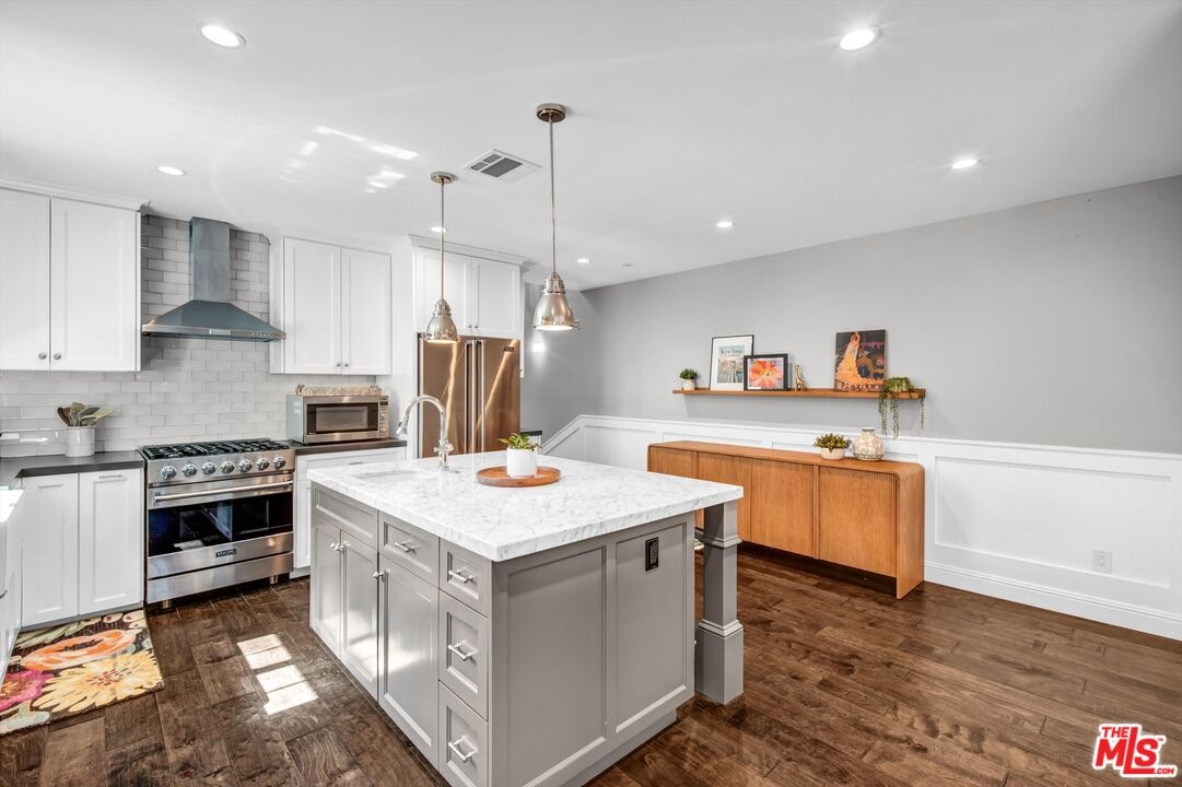 Welcome to this move-in ready Mar Vista home, ideally located on coveted Mar Vista Hill within the highly sought-after Mar Vista Elementary boundaries. Situated on a corner lot at the end of a cul-de-sac on an expansive 7,037 sq ft lot, this home was completely renovated in 2017 and offers a seamless blend of style, comfort, and everyday livability. An open floor plan connects the living, dining, and kitchen areas, flowing effortlessly to the spacious outdoor yard - perfect for both everyday living and entertaining. The updated kitchen and bathrooms are thoughtfully designed with quality finishes, including Viking appliances and caesarstone countertops. The primary suite includes an oversized walk-in closet and a beautifully updated bath with a spacious shower. A step-down family room with vaulted ceilings provides a versatile bonus living space, along with access to a second, separate yard. Set in one of Mar Vista's most desirable neighborhoods, this home offers a true sense of community just moments from local favorites and everything the Westside has to offer.
