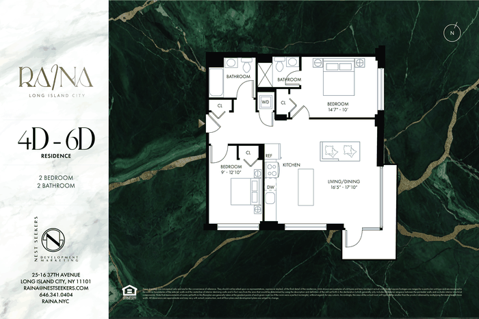 Additional highlights include multi-zone heating and cooling, in-unit GE washer and dryer, ample closet space, recessed LED lighting, custom window treatments, and a Bluetooth-enabled Akuvox virtual doorman system. Select residences offer private outdoor space.