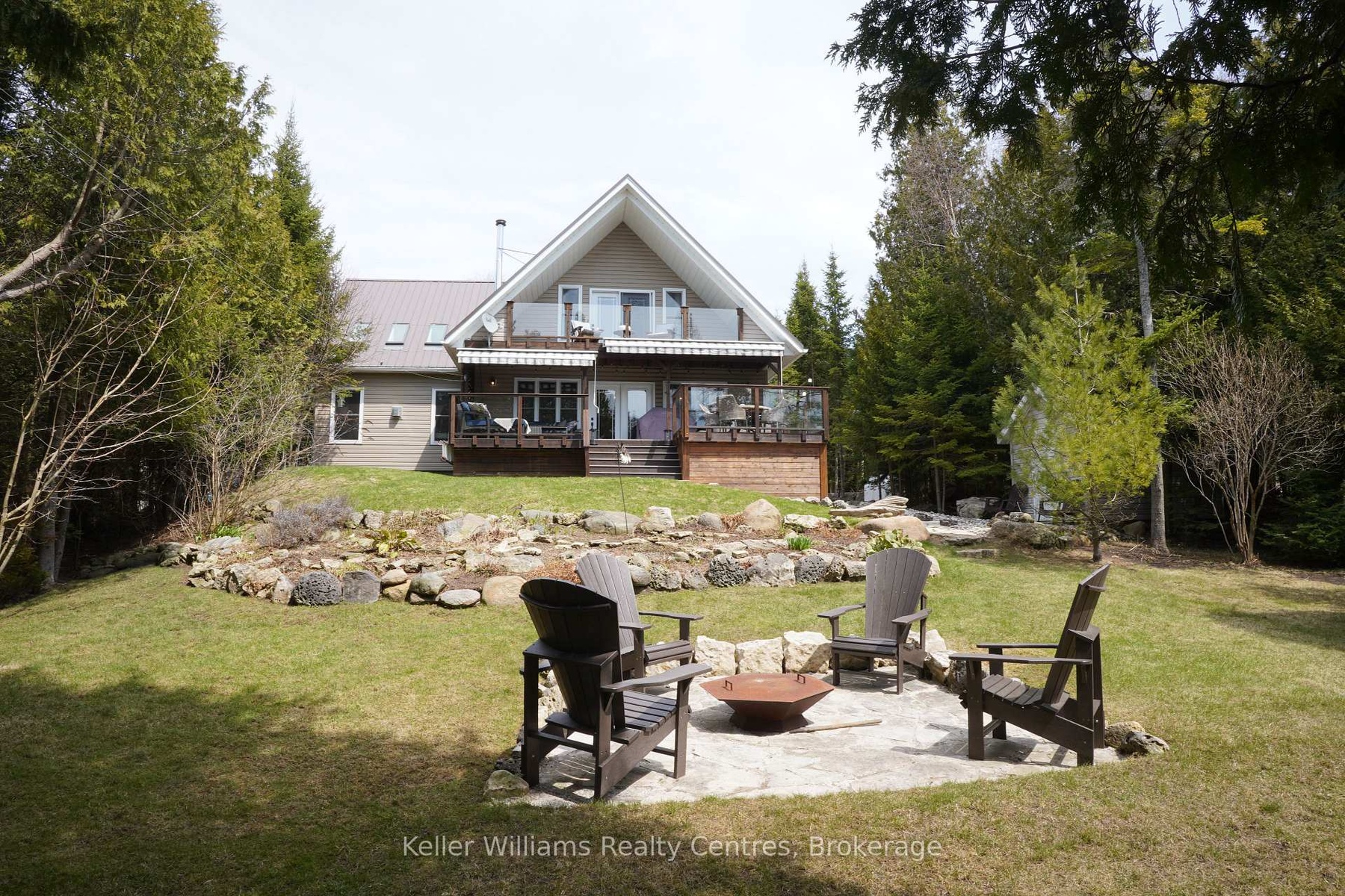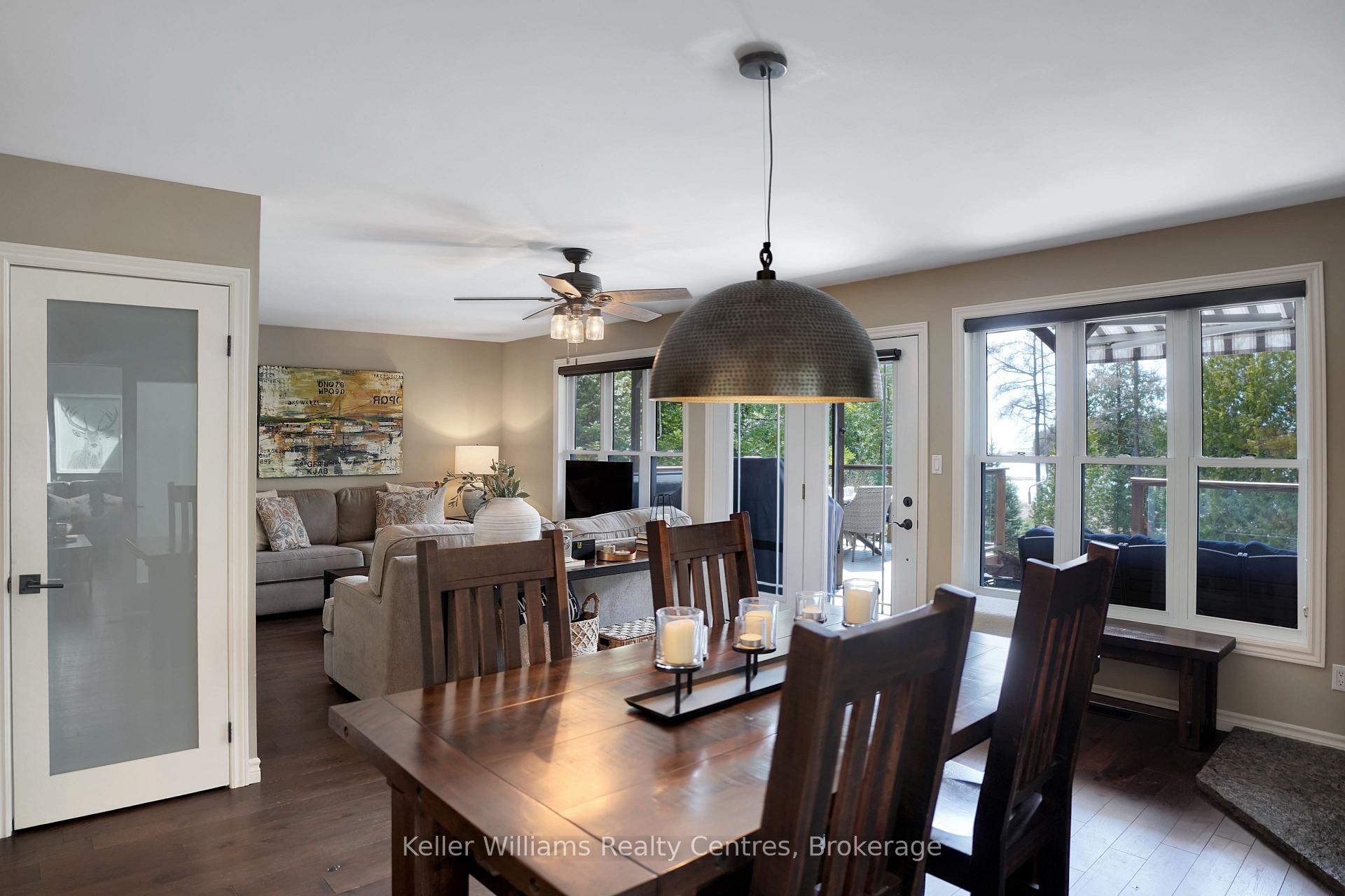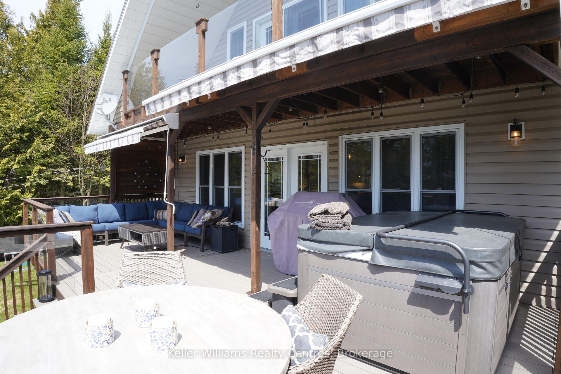Welcome to 55 Devils Glen, an elegant, move-in ready retreat where timeless comfort meets elevated living. Thoughtfully updated and impeccably maintained, this exceptional residence is ideal for families, entertaining, or creating unforgettable moments with children and grandchildren. At the heart of the home is a custom-designed kitchen featuring quartz countertops, quality craftsmanship, and an inviting layout that flows seamlessly into the stunning 2017 addition. Find a propane fireplace that continues to operate during power outages, blending everyday luxury with peace of mind. The main living area also features a charming wood-burning fireplace, creating the perfect ambiance for cozy evenings and relaxed entertaining. Upstairs, you'll find three beautifully appointed bedrooms, including a serene primary suite with private deck access. The washroom off the living room is enhanced by a custom-built vanity, adding warmth, character, and designer style. The true centerpiece of this remarkable property is the direct waterfront setting, a rare and inviting shoreline designed for making lifelong memories with easy access to the water, it is ideal for children and grandchildren to play, swim, and enjoy endless summer days along the shore. A charming waterfront bunkie offers the perfect space for guests. Adding even more versatility is the detached shop with a finished loft, perfect for guests, hobbies, creative space, or additional family enjoyment. Step outside to your own private outdoor oasis featuring a new composite deck (2025), a durable steel roof, and beautifully curated spaces for gathering or unwinding. The hot tub (2020), complete with a new pump (2025), delivers a spa-inspired retreat in the comfort of home. Premium mechanical updates include a furnace and water heater (2018), along with a professionally serviced Culligan water system complete with iron breaker, water softener, tannin filter, and UV light. Appliances are approximately 3 years old.