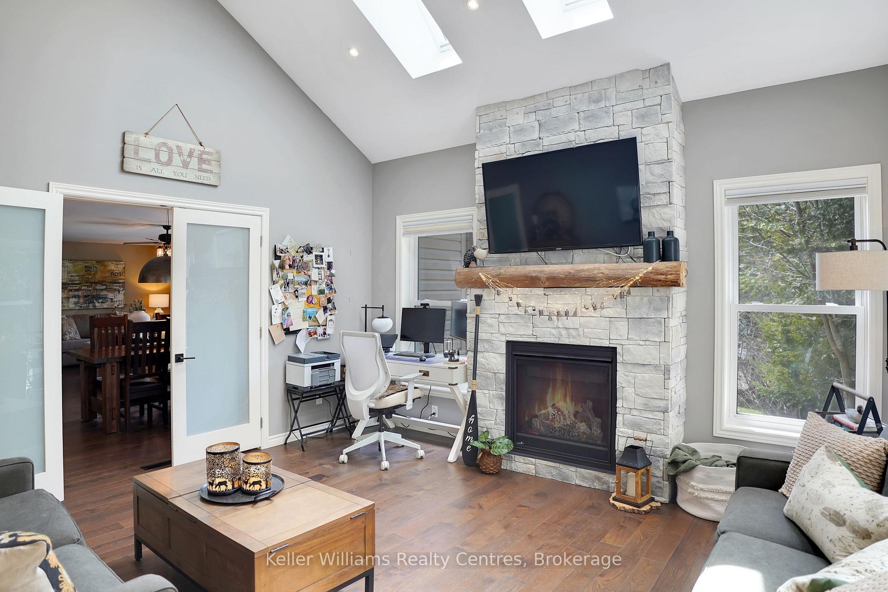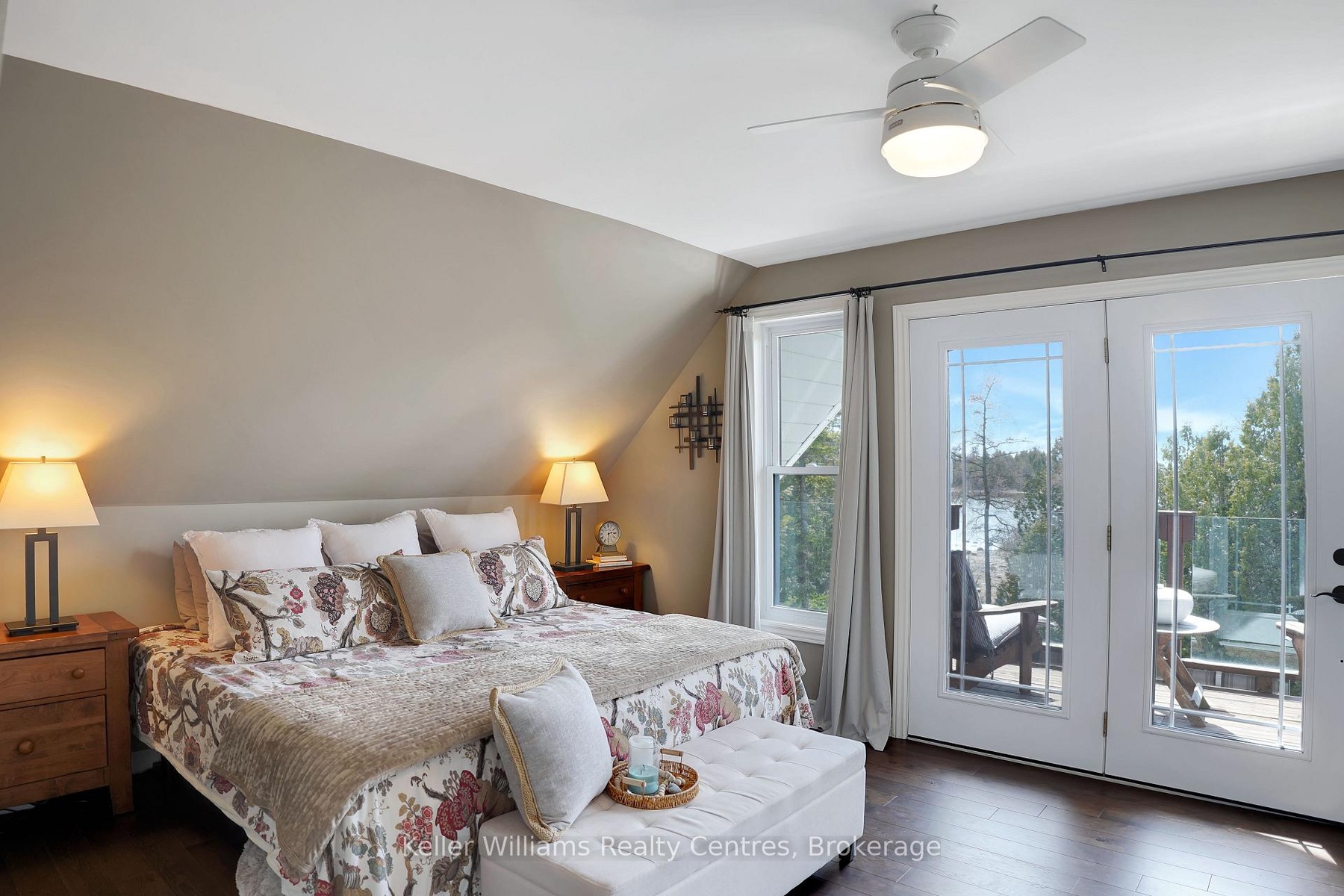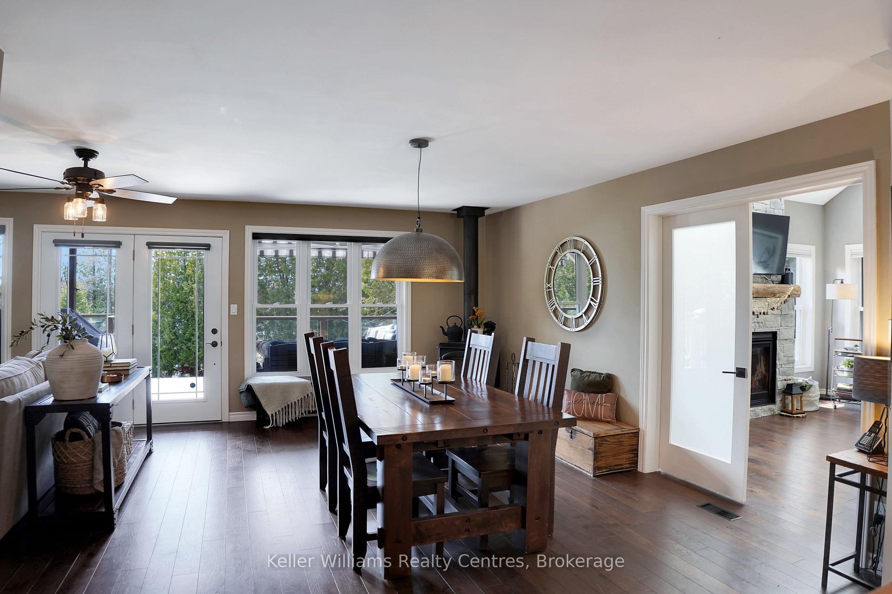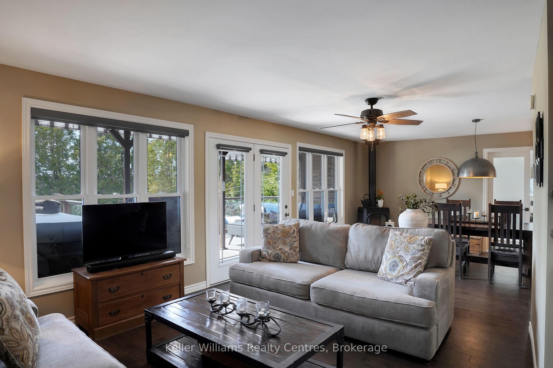 Welcome to 55 Devils Glen, an elegant, move-in ready retreat where timeless comfort meets elevated living. Thoughtfully updated and impeccably maintained, this exceptional residence is ideal for families, entertaining, or creating unforgettable moments with children and grandchildren. At the heart of the home is a custom-designed kitchen featuring quartz countertops, quality craftsmanship, and an inviting layout that flows seamlessly into the stunning 2017 addition. Find a propane fireplace that continues to operate during power outages, blending everyday luxury with peace of mind. The main living area also features a charming wood-burning fireplace, creating the perfect ambiance for cozy evenings and relaxed entertaining. Upstairs, you'll find three beautifully appointed bedrooms, including a serene primary suite with private deck access. The washroom off the living room is enhanced by a custom-built vanity, adding warmth, character, and designer style. The true centerpiece of this remarkable property is the direct waterfront setting, a rare and inviting shoreline designed for making lifelong memories with easy access to the water, it is ideal for children and grandchildren to play, swim, and enjoy endless summer days along the shore. A charming waterfront bunkie offers the perfect space for guests. Adding even more versatility is the detached shop with a finished loft, perfect for guests, hobbies, creative space, or additional family enjoyment. Step outside to your own private outdoor oasis featuring a new composite deck (2025), a durable steel roof, and beautifully curated spaces for gathering or unwinding. The hot tub (2020), complete with a new pump (2025), delivers a spa-inspired retreat in the comfort of home. Premium mechanical updates include a furnace and water heater (2018), along with a professionally serviced Culligan water system complete with iron breaker, water softener, tannin filter, and UV light. Appliances are approximately 3 years old.