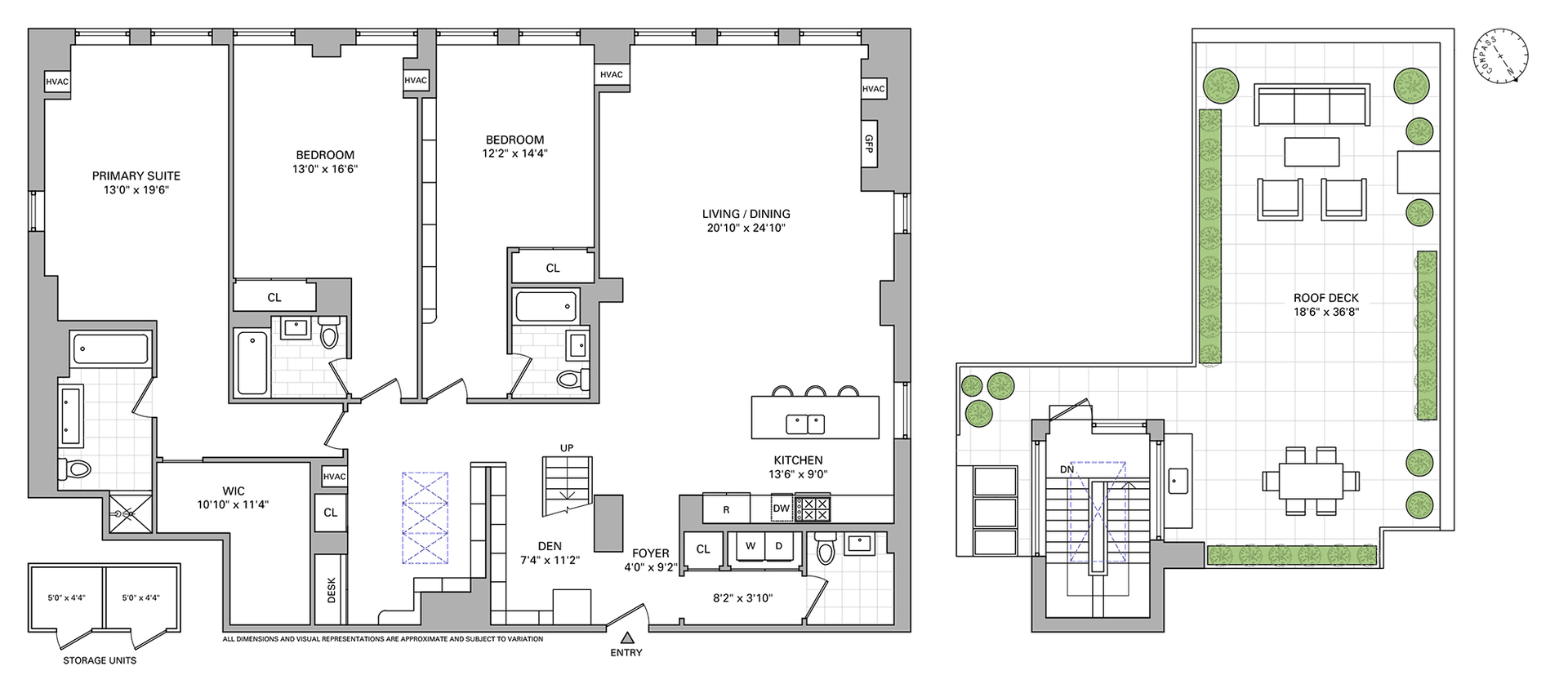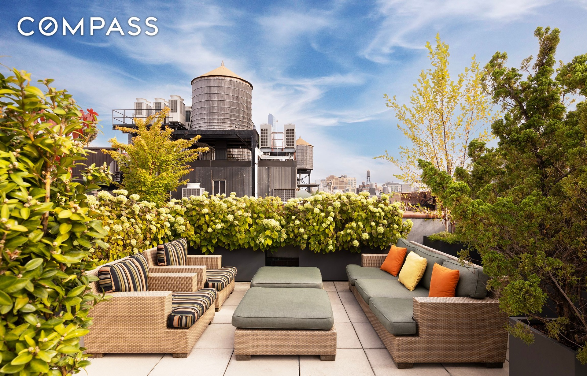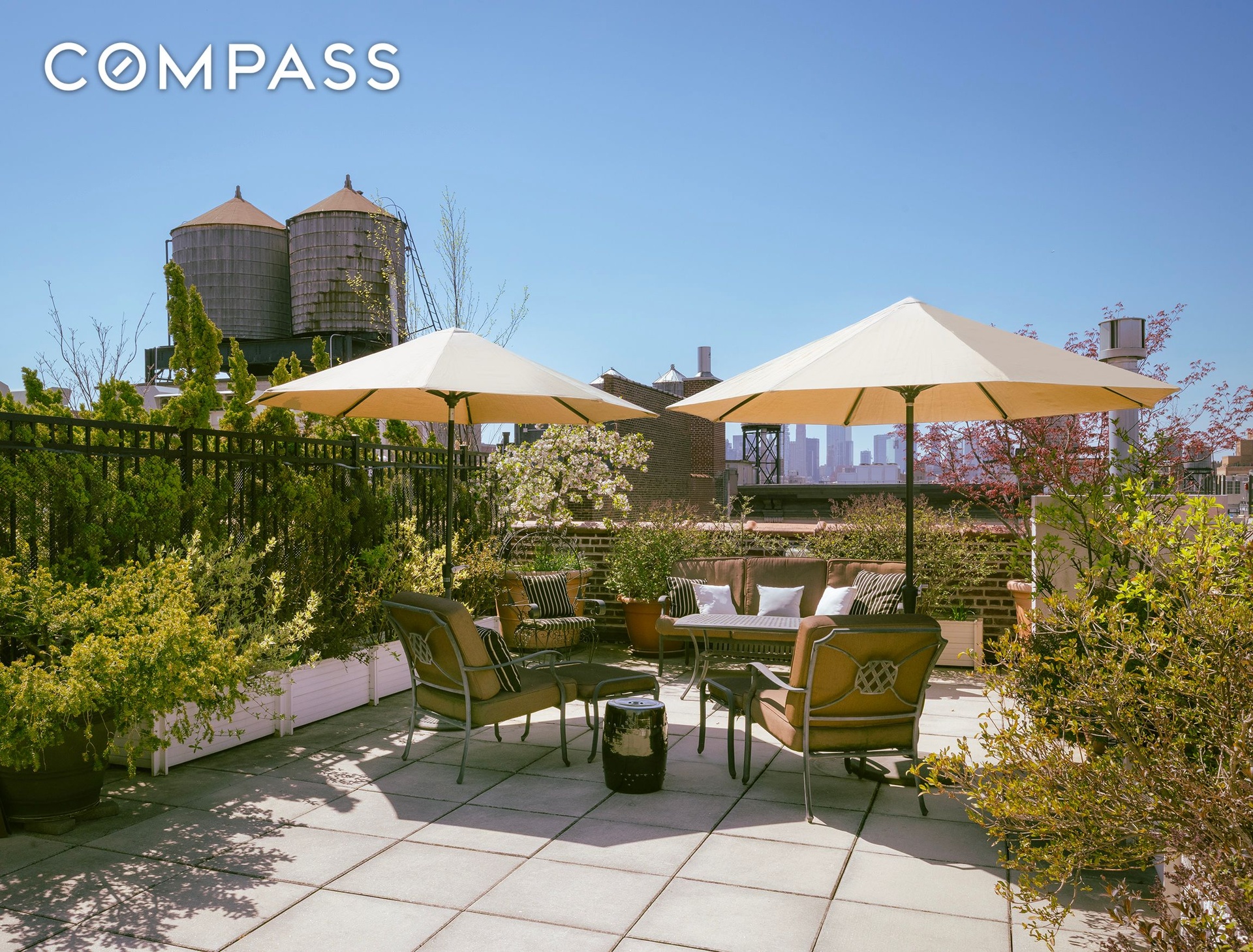 PHC comes with a private 838 square foot rooftop which is accessible from within the apartment by a beautiful and architectural staircase. The outdoor space faces the back of the building allowing for a more private and serene city oasis with wonderful iconic Chelsea views.