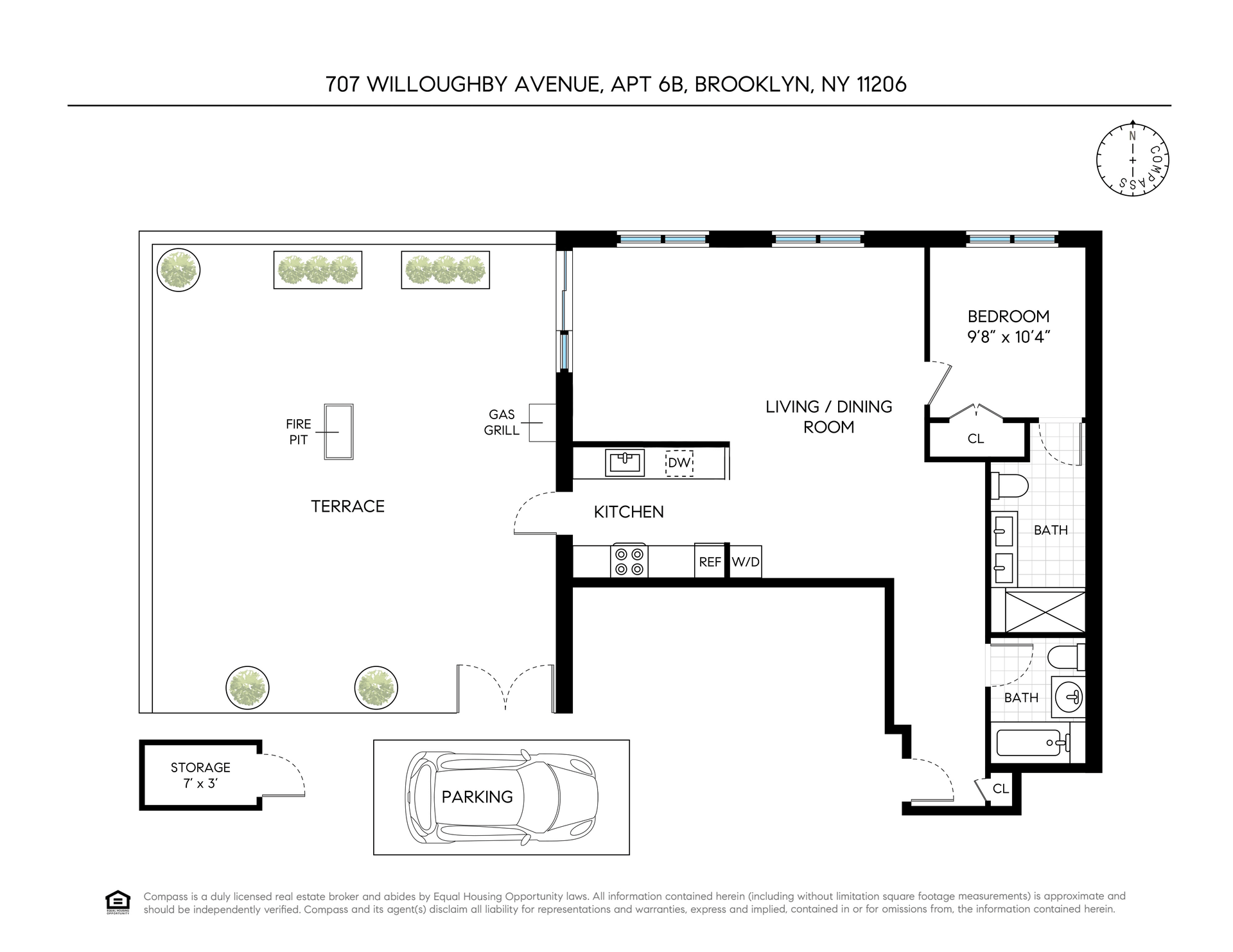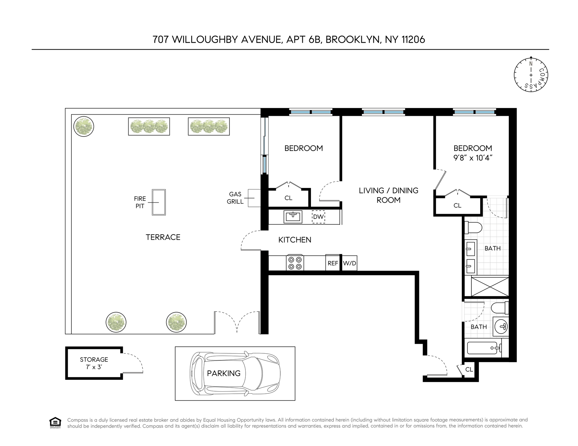 We’re talking 735 square feet of private outdoor space. Planted, private, and completely yours, with a fire pit, a gas grill, room to lounge, room to dine, and room to actually entertain. In New York City? That’s not nothing. That’s everything. Oh, and a covered parking spot and a storage unit come with it, too!