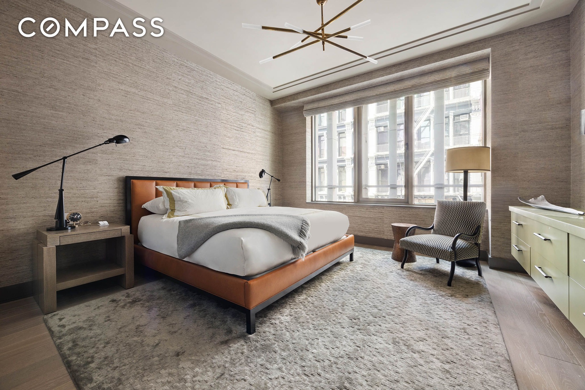 Enjoy the ultimate downtown lifestyle in this artfully-crafted 2 bedroom 2 bathroom gem at the coveted 1 Great Jones Alley. Designed by acclaimed architect BKSK, this 12-story condominium in the NoHo Historic District offers unparalleled style and quality, melding contemporary with historic elements to create a unique residential destination. Set on a private gated drive on iconic Great Jones Street, the building brims with full-service amenities and boasts Zen-like interiors with bespoke high-end finishes.