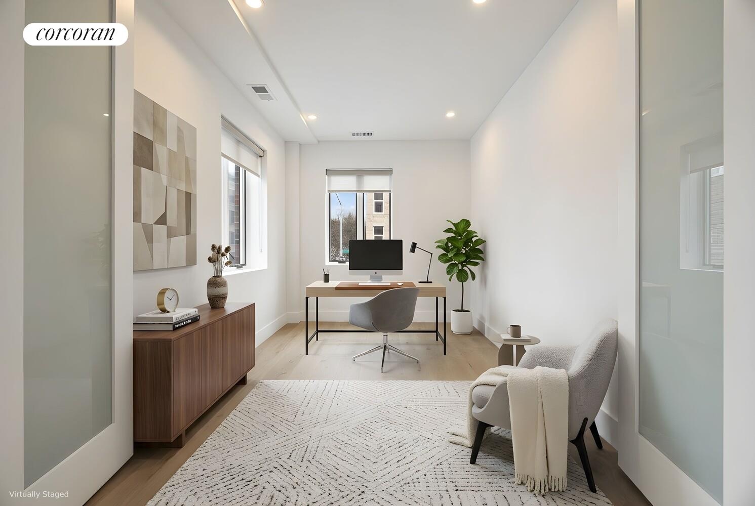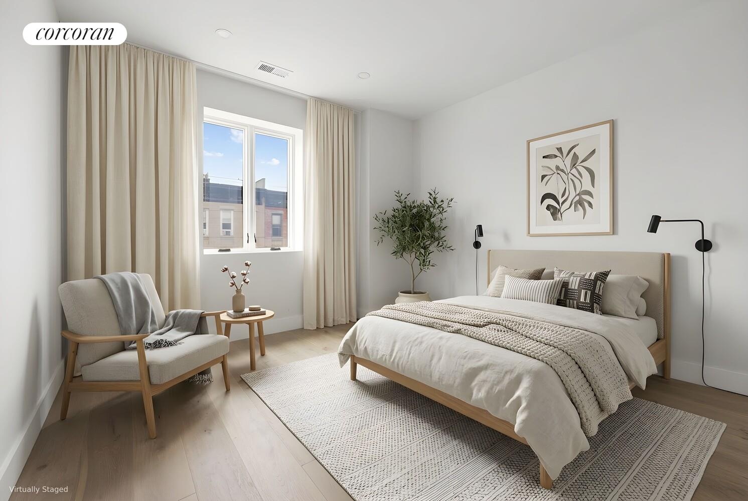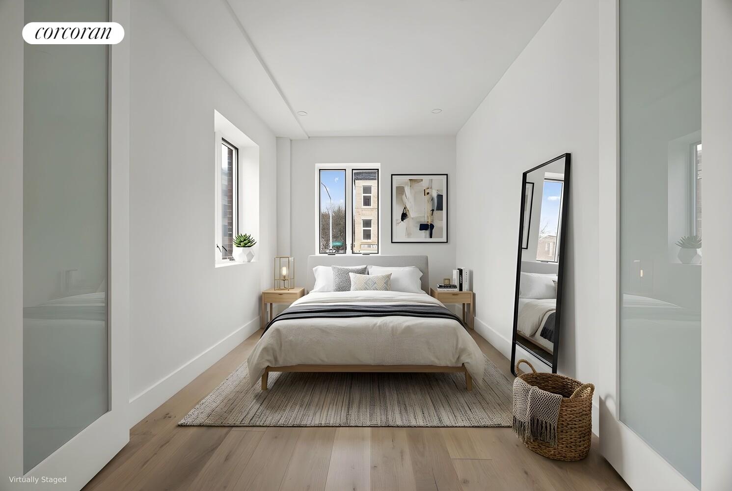Both bedrooms are positioned toward the quieter northwest side of the home, offering a more peaceful setting with soft, even light. Each room is well-proportioned and flexible, easily accommodating a range of uses-from primary bedroom to guest room or home office.