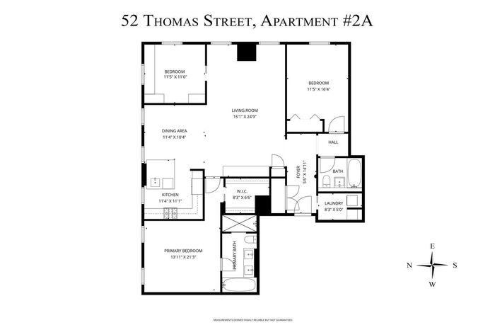 Originally a 2 bedroom, this grand apartment has been transformed to a beautiful 3-bedroom home. Enter the apartment through a gracious foyer into an expansive loft-like living room, which is perfect for entertaining. The whole room is adorned with excellent Eastern light. From the living room, you can enjoy your separate dining room area with custom banquet seating, which faces North onto Thomas Street. Adjacent to the dining area is a renovated open kitchen adorned with cabinets, a pantry, Cosentino Silestone countertops, and stainless-steel appliances.