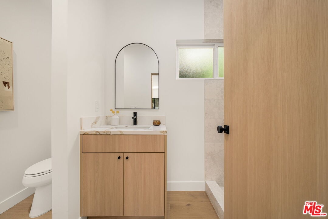 Introducing a rare ultra-luxury modern retreat in the Hollywood Hills, thoughtfully designed with no expense spared. This fully reimagined compound features a 2-bedroom, 2-bath main residence complemented by a separate, fully permitted 1-bedroom, 1-bath ADU offering exceptional privacy and versatility. Blending refined architecture, premium finishes, and seamless functionality, the property is designed for today's most discerning buyer. The main residence showcases meticulous craftsmanship throughout, highlighted by wide-plank Carrara hardwood flooring, hand-plastered detailing, and a dramatic plaster fireplace that anchors the living space. The designer kitchen serves as a true centerpiece, featuring custom cabinetry, an oversized island, honed Taj Mahal stone surfaces, and a full suite of high-end Thermador appliances, perfectly suited for both everyday living and elevated entertaining. Expansive sliding glass doors open on both sides of the space, creating effortless indoor-outdoor flow and an ideal setting for al fresco dining under the stars. Down the hall, spa-inspired bathrooms impress with custom plaster finishes, luxury stone countertops, and elevated hardware selections. Thoughtful details throughout the home include custom closets, surround sound, recessed lighting, and integrated climate features that enhance comfort and sophistication. The spacious primary suite offers a private outdoor retreat and a luxurious ensuite bathroom complete with a double vanity, a large walk-in shower with dual Axor shower heads, and a generously sized walk-in closet with custom lighting. The permitted 1-bedroom, 1-bath ADU features its own address and separate entrance delivers exceptional flexibility with a high-end kitchen, premium appliances, modern finishes that match the main residence, and a custom walk-in closet, making it ideal for rental income, guests, or a private office. Multiple outdoor spaces are designed for low-maintenance living and entertaining, featuring mature drought-tolerant landscaping, desert-inspired design elements, a sleek fire fit w a dedicated pre-plumbed gas line, an epoxy-finished concrete yard, and a large grassy area perfect for relaxation. Driveway with parking for three cars! Enhanced with modern security and smart entry features, this turnkey property offers luxury without compromise. A truly one-of-a-kind opportunity to own a private modern compound in the Hollywood Hills, offering exceptional quality, flexibility, income potential, and elevated Los Angeles living. This rare offering is not to be missed!