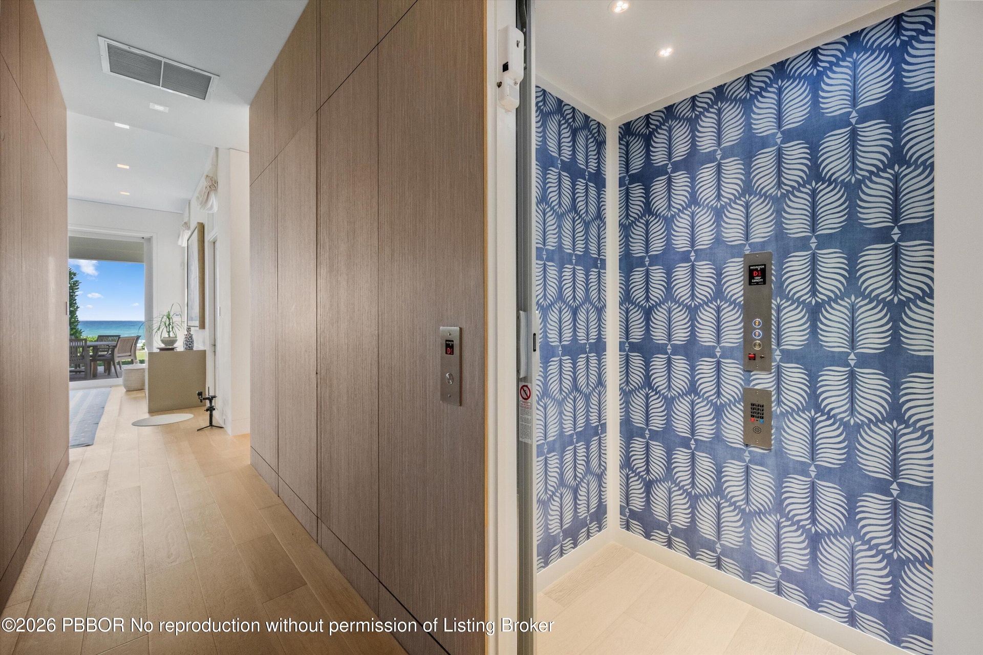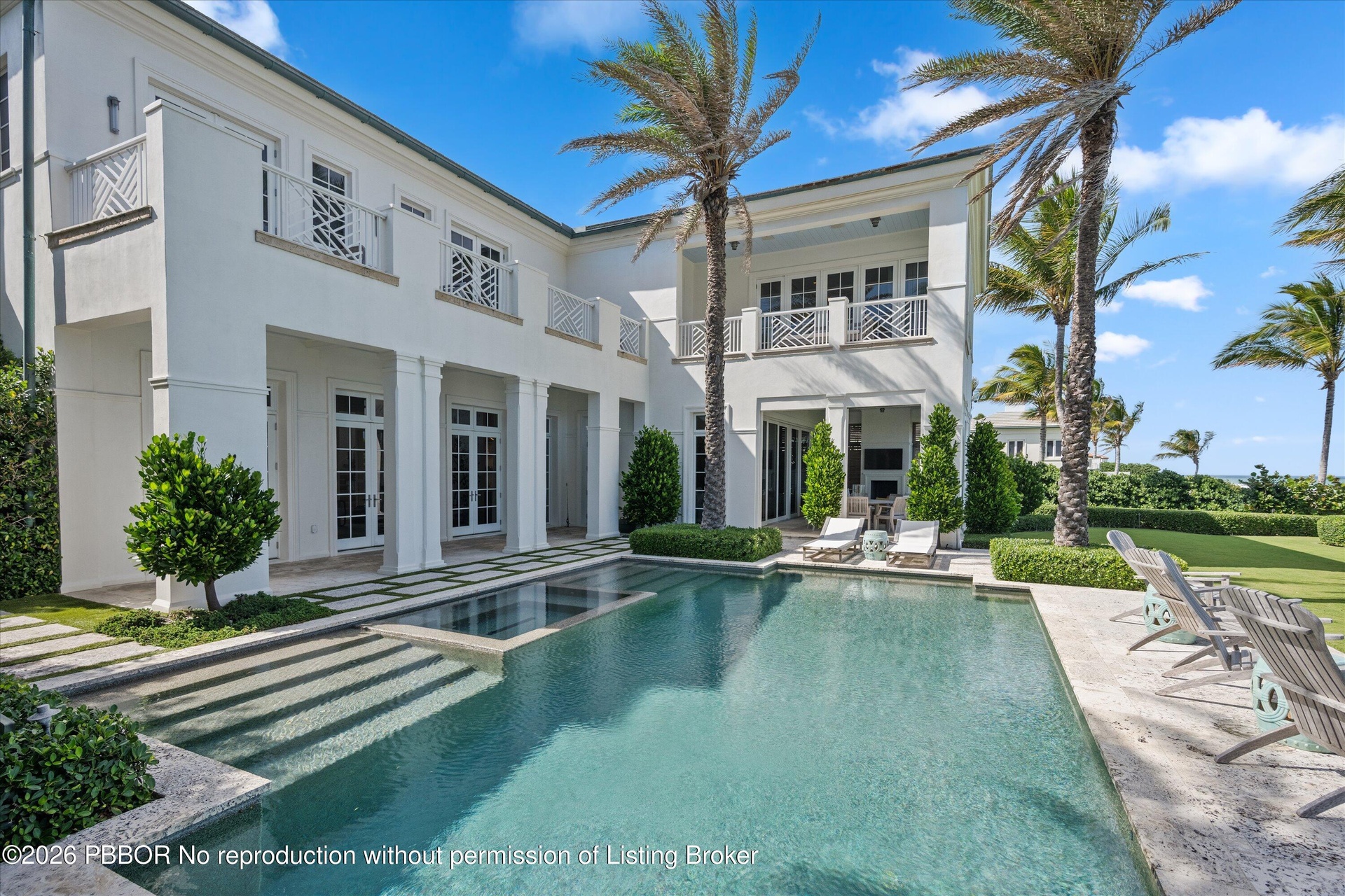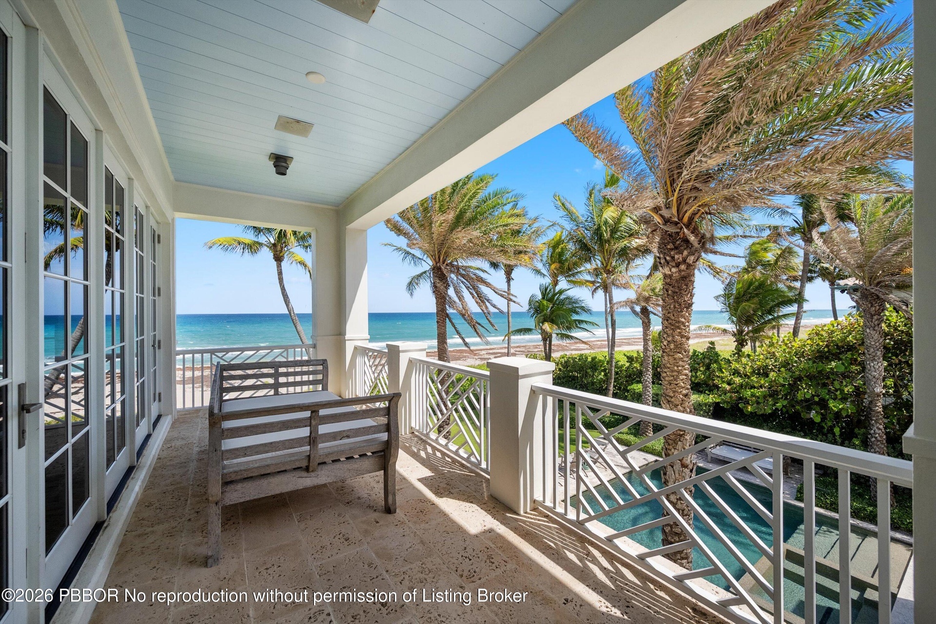 Gated Oceanfront Estate completely rebuilt in 2017 is set high above the dune on one of Gulf Stream's most desirable beaches.