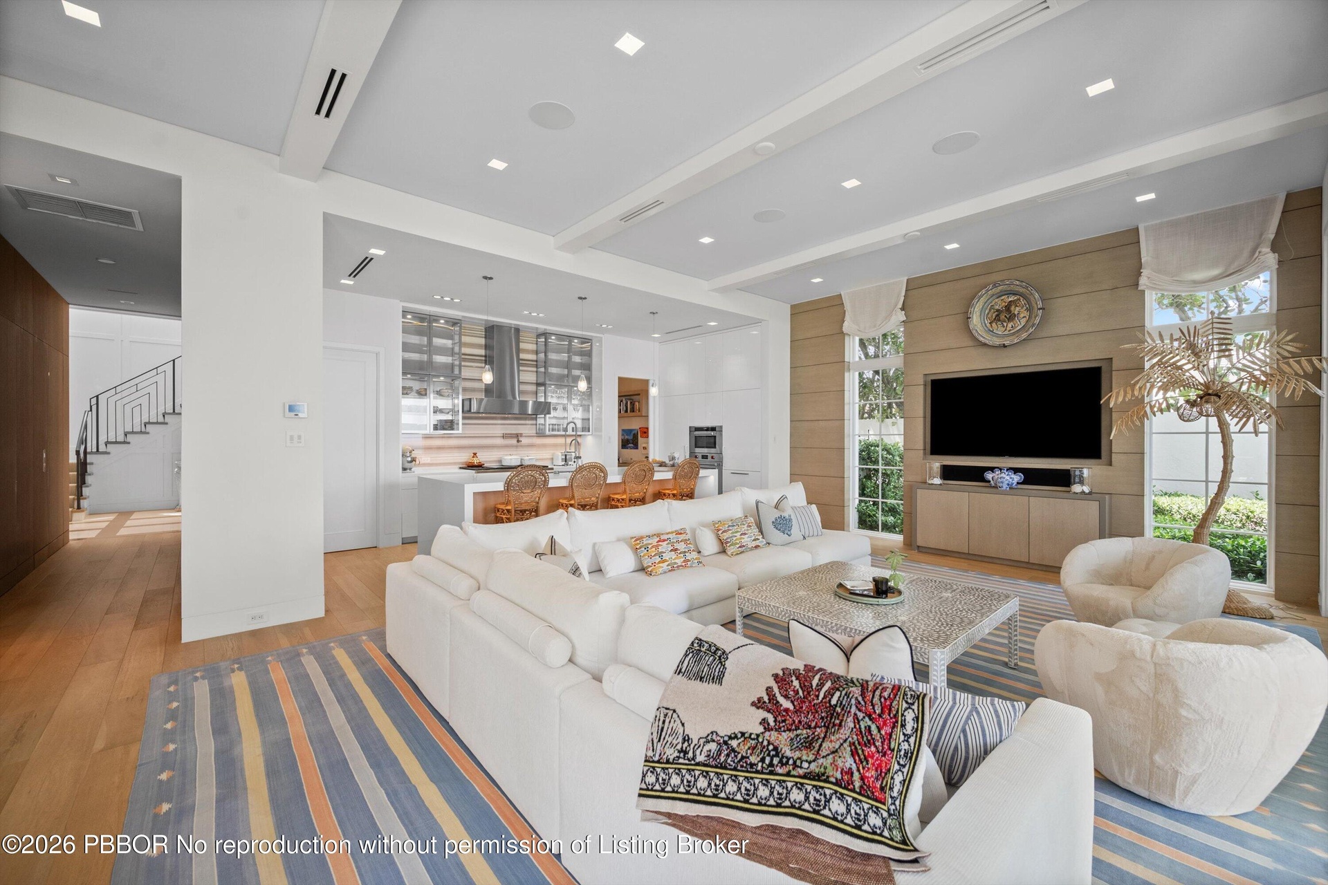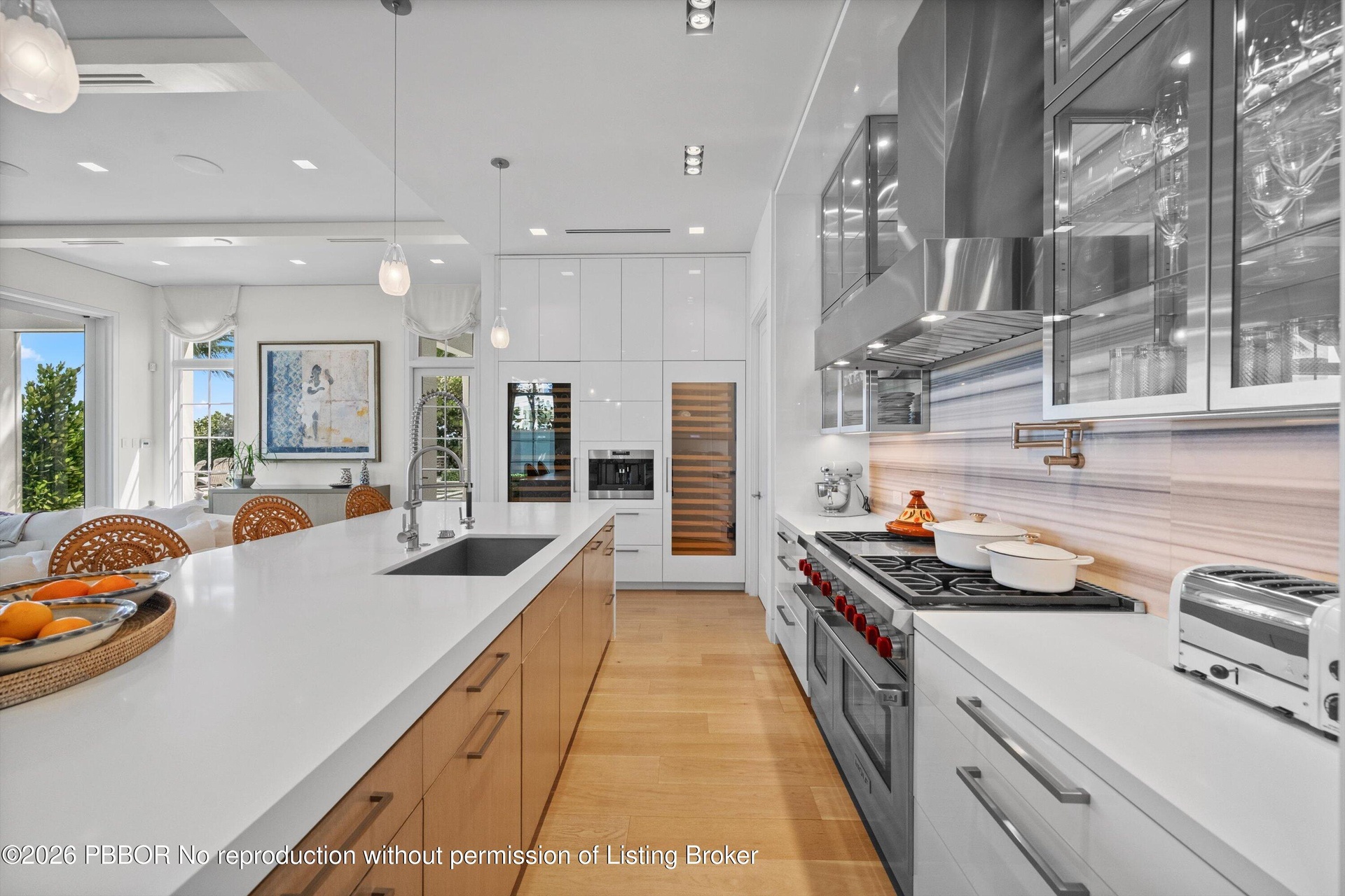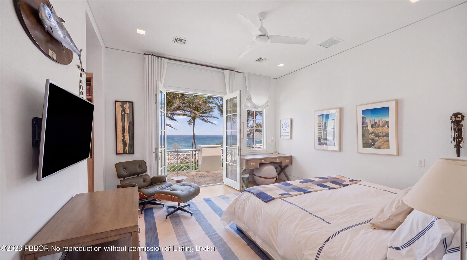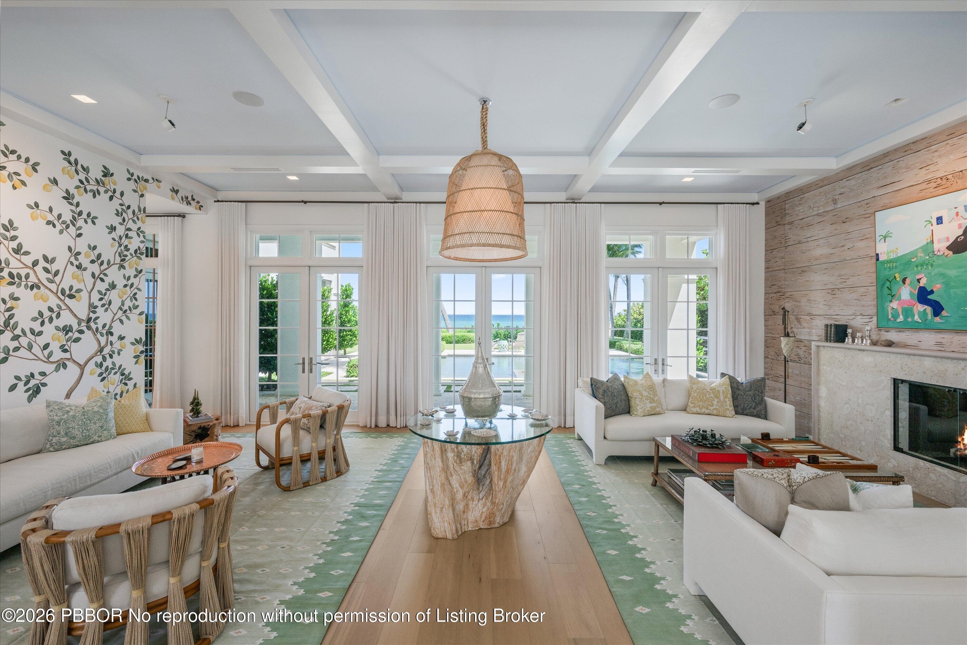 Gated Oceanfront Estate completely rebuilt in 2017 is set high above the dune on one of Gulf Stream's most desirable beaches. Designed by Rustem Kupi Architects, the residence offers extraordinary privacy and sweeping ocean views from nearly every room. The 7,486± total square foot floor plan includes five bedrooms, six full baths, two powder rooms, and a ground floor guest suite. Sun-filled interiors showcase soaring ceilings, European white oak and limestone floors, and seamless indoor/outdoor living. Outdoor amenities include a saltwater pool and spa, lush tropical landscaping, and private beach access.