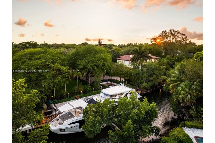 Situated in the exclusive gated community of Cocoplum Phase 1, with 24-hour Coral Gables police protection and resident tennis courts, this Italian villa-inspired waterfront estate by architect Ramon Pacheco offers 8,695 total SF on nearly one Acre lot, with 6 bedrooms, 7 full and 1 half baths. Built on pilings with high elevation, this immaculate single-owner gem showcases ~14-ft ceilings, grand proportions, elevator-ready design, four A/C units, A/C-equipped garage, and a Sony integrated audio system. A striking Mediterranean façade with triple-arched portico, classical columns, and an ornate iron-and-glass entry sets the tone. Lush grounds with 28 mature oak hammocks frame a circular driveway and expansive outdoor living. Enjoy direct ocean access with no bridges to Biscayne Bay, featuring a 100-ft seawall, additional 70-ft dock, and grandfathered 40-ft slip. The keystone marina deck, pool with waterfall spa, cabana, covered terraces, and summer kitchen create a resort-style setting. Interiors feature a dramatic triple-height foyer, marble staircase, refined millwork, and marble and wood floors. The gourmet kitchen offers custom Italian cabinetry, quartz counters, premium appliances, and wine storage. The expansive primary suite offers a private office, vaulted ceilings, and a spa-inspired bath with bespoke finishes and custom walk-in closets—delivering a refined private retreat within this exceptional waterfront residence.